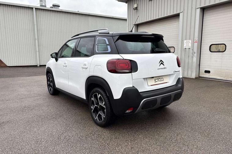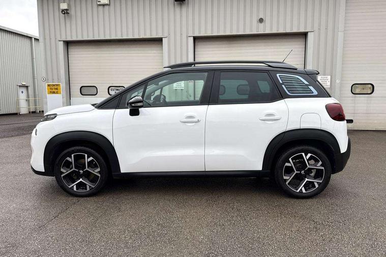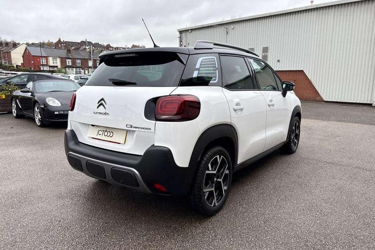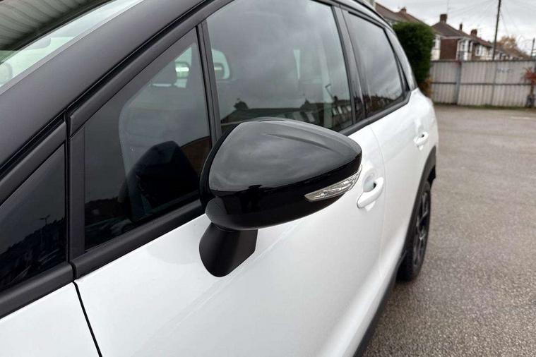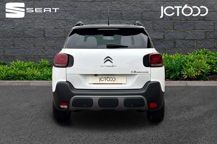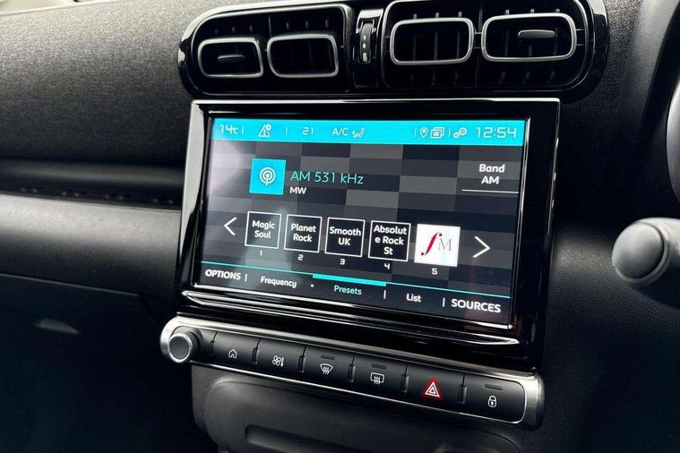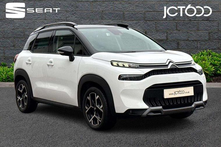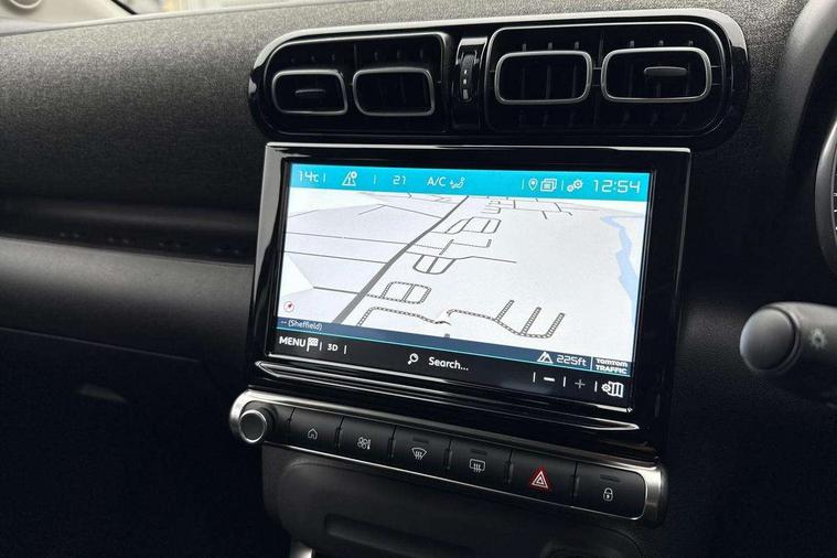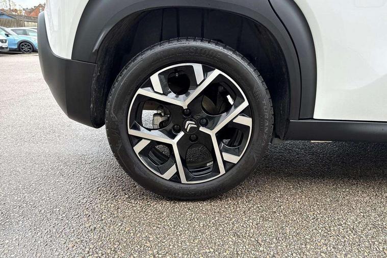 3.5" head up display, 9" Touchscreen display, Citroen connect box emergency and assistance system, Citroen Connect Nav with 3D navigation, Coffee Break Alert, Cruise control with speed limiter, Driver instrument cluster including trip computer and rev counter with white text LCD display and white needles and chrome decor, eCall emergency call system, Engine start button, Lane departure warning system, Mirror screen with Apple CarPlay and Android auto, Outside temperature sensor, Rear parking sensors, Tailgate, Top rear vision reversing camera, Traffic signs and speed limit recognition and recommendation, Variable assistance power steering, Voice recognition for radio, navigation and telephone features, Bluetooth hands free and media streaming with USB socket, Citroen connected DAB radio with 6 speakers, Steering wheel mounted controls for stereo and telephone, 3D effect LED rear lights, Automatic Eco LED headlights, Automatic lights and windscreen wipers, Black roof bars, Body colour painted door handles, Chrome chevrons front grille, Electric front windows + one touch + anti-pinch, Electric rear windows with one touch/anti-pinch, Electrically adjustable door mirrors, Electrically folding door mirrors, Electrochrome rear view mirror, Fog lights integrated into front bumper, Front and rear body coloured bumpers, Heated door mirrors, Integrated roof spoiler, LED daytime running lights, LED third brake light, Rear side wing doors, Rear wiper, Roof aerial, Tinted rear windows and rear quarterpanel glass, Variable front intermittent wipers, 12V socket in front, 12V socket in rear of vehicle, 60/40 split folding rear seats with sliding rear bench, centre armrest and ski flap, Automatic air conditioning, Boot light, Brasilia leather effect and flecked cloth upholstery with metropolitan graphite ambience, advanced comfort seats and wrapped dashboard, Central adjustable armrest on drivers seat, Centre console with closed storage and chrome insert, Driver and front passenger cup holders, Driver and passenger sunvisor with courtesy mirror, Flex load/Pull out boot floor, Front and rear courtesy reading lights, Front and rear door storage, Front head restraints, Front passengers seat flat folding, Glovebox with closable lid, Height adjustable driver's seat, Height and reach adjustable steering wheel, Leather steering wheel with satin chrome inserts and radio controls, Manual handbrake with chrome insert, Passenger compartment headlight adjustment, Rear isofix mounting points (outside seats) with top tether, Row 2 - Three seats with individually adjustable head rests, Satin chrome interior door handles, Single front passenger seat, Gloss black colour pack - C3 Aircross Max, 3 point, height adjustable, pre tensioned front seatbelts, ABS with Electronic brakeforce distribution and Emergency braking assistance, Active safety brake including Forward collision warning, Automatic illumination of hazard warning lights, Curtain airbags, Driver airbag, Drivers/passengers and rear seats unfastened seat belt warning, ESC (Electronic Stability Control), Front lateral airbags, Front passenger airbag, Front passenger airbag deactivation switch, Hill start assist function, Mono-tone horn, Rear door child safety locks, Three 3 point rear seatbelts, Tyre pressure monitor, Automatic door and boot locking when moving off with automatic unlocking in case of impact, Automatic locking of the vehicle (after 30 seconds if door or boot unopened), Immobiliser, Keyless entry and keyless start, Perimetric and volumetric anti theft alarm, Remote central locking + deadlocks, Vehicle locater function (headlights illuminate when button on key pressed), Gloss black centre console, Satin chrome air vent decors,