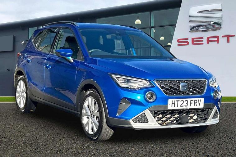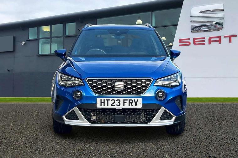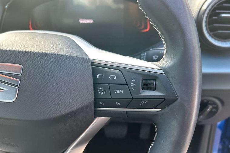 'Lights On' Reminder warning buzzer, 8" Digital cockpit, Digital clock, E-call, Electric speed sensitive power steering, Full Link Smartphone Integration with Mirror Link, Apple Car Play, Google Android Auto with USB Type C cable for Apple and Android compatibility, Lane keeping system, Low fuel warning light, Outside temperature display, Rear parking sensor, RPM counter, Seat connect with safety, service, remote and online, Trip computer, Wireless phone charger, 9.2" colour touchscreen with navigation system, voice control and USB port (type c), Bluetooth interface for hands free and audio streaming, DAB digital radio and AM/FM radio, Steering wheel mounted audio controls, Anti theft roof antenna, Auto dimming interior rear view mirror, Automatic activation of hazard warning lights, Body coloured bumpers, Body coloured door handle inserts, Chrome roof rails and window surrounds, Electric front/rear windows, Electrically adjustable, heated and folding door mirrors, Front fog lights with cornering function and rear fog light, FULL LED automatic headlights with dynamic headlight range control, coming and leaving home, LED daytime running lights, Hidden exhaust pipe, LED rear tail lights and licence plate lights, Protective side mouldings, Rain sensing wipers, Rear side wing doors, Rear spoiler, Rear window wash/wipe, Roof colour door mirrors, Third brake light, Visible VIN plate, Windshield wiper with intermittent control and potentiometer, 2 cupholders, 3 seat bench in 2nd row, 60/40 split folding rear seat, Aircare filter, Black interior roof, Cloth upholstery, Double boot floor, Driver sunvisor with covered mirror + card holder, Dual zone climate control, Flat bottomed leather steering wheel/gear knob/handbrake, Front courtesy light with front reading lights, Front seat back storage pockets, Gear shift indicator, Height adjustable front seats, Height/reach adjustable steering column, Illuminated boot, Instrument lighting with brightness control, Interior ambient lighting, Interior light in footwell, central console and door panel, ISOFIX points in outer rear seats with top tether anchorage points, Leather steering wheel/gear knob/handbrake, Passenger sunvisor with vanity mirror, Single front passenger seat, Storage net on centre console, Two front and three rear height adjustable headrests, Interior chrome pack - Arona, Safety and driving pack (M) - Arona, Storage pack - Arona, 3 point seatbelts on all rear seats, ABS, Active front headrests, Child locks on rear doors, Driver and front passenger airbags with front passenger airbag de activation, front side and curtain airbags, Electronic stability control, Emergency Brake Assist (EBA) and front assist, Front and rear seatbelt reminder, Hill hold control, Multi-Collision braking, Tiredness recognition system, Traction control, Tyre pressure monitoring system, Alarm with back-up horn, Electronic engine immobiliser, KESSY Keyless entry and go, Locking wheel bolts, Remote central locking + deadlocks, Tow away protection, Titan black dashboard, 17" Dynamic alloy wheels,