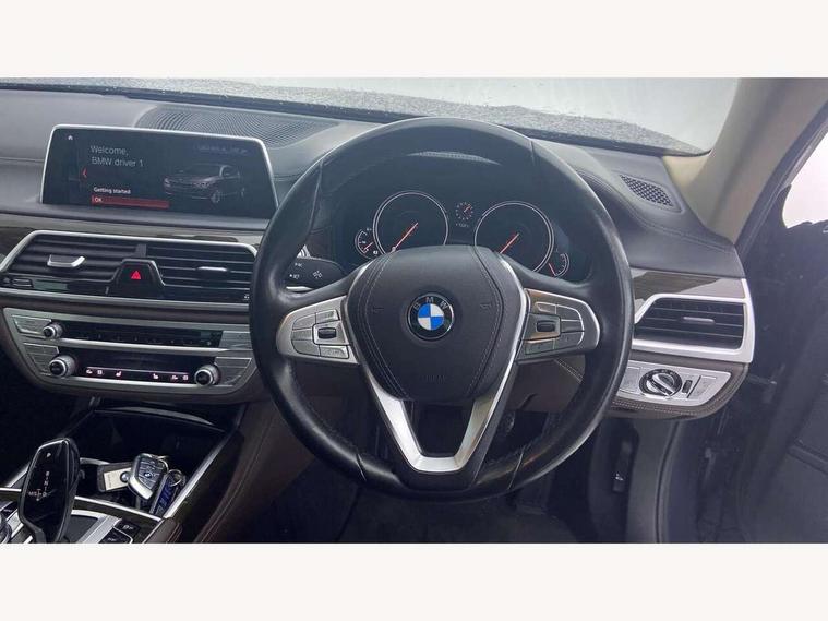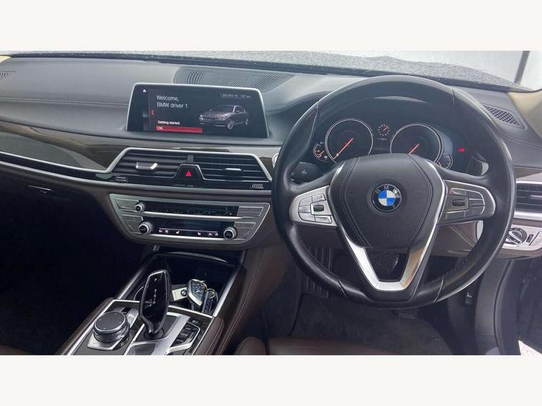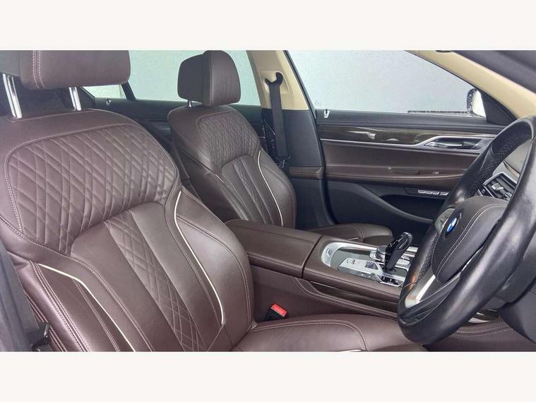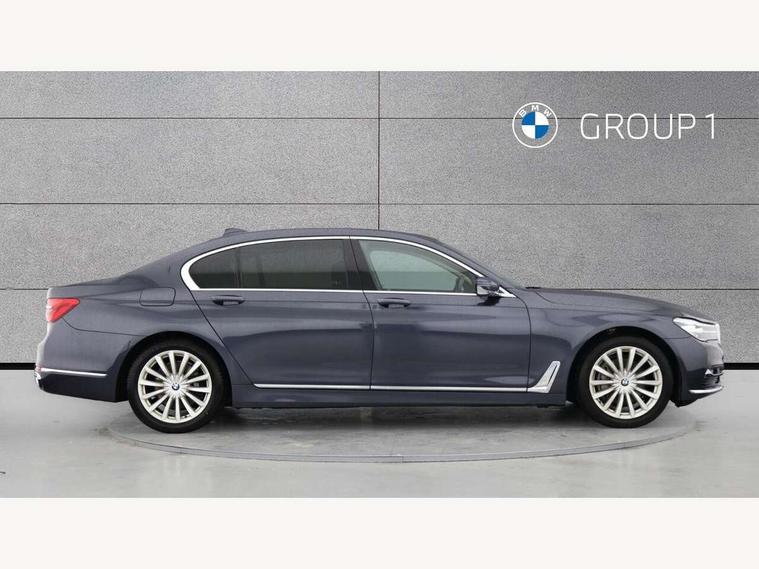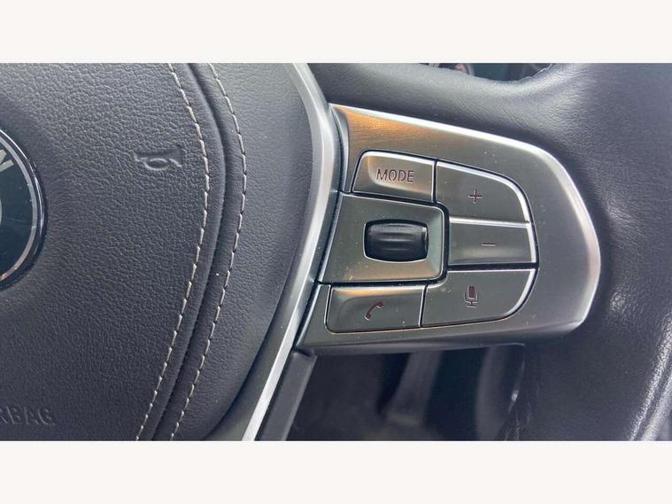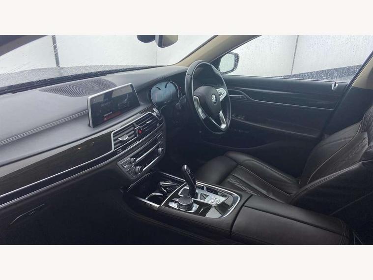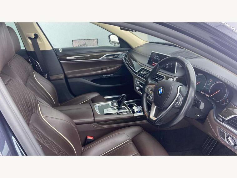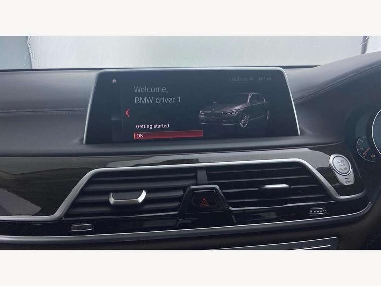 Automatic bootlid operation, BMW display key, BMW information plus, BMW online + Apps interface, BMW remote services, BMW Teleservices, Colour information display, Digital cockpit, Enhanced bluetooth telephone functionality with telematics, USB audio interface + voice control, EPAS, Multi function trip computer, Navigation System Professional Multimedia, Outside temperature gauge, Real time traffic information, Service indicator, Smartphone wireless charging plate, Speed limit display, Variable Damper Control, Wifi hotspot preparation, Self levelling twin axle air suspension, DAB Digital radio, Gesture control for infotainment system, Radio/CD/DVD/MP3 player, Wi-Fi hot spot, Auto dimming rear view mirror, Automatic headlights, Body colour bumpers, Body colour door mirrors, Chrome kidney grille, Electric front and rear windows with fingertip open/close + anti-trap all round, Electric heated door mirrors, Exterior mirrors - electrically folding with anti-dazzle, Follow me home headlights, Heated windscreen washer jets, High beam assistant, LED daytime running lights, LED front fog lights, Outer door handle illumination, Pure Excellence Exterior Design, Rain sensor, Soft close automatic (SCA) for doors, 12V socket in front and rear, 4 zone control automatic air conditioning, Ambient interior lighting, Centre console with armrest, Driver + front passenger electric lumbar support, Footwell courtesy lights front and rear, Front and rear cupholders, Front comfort multi adjustable electric seats with memory for driver/front passenger + seat width adjustment, Front comfort seats, Front reading lights, Heated front seats, Heated rear seats, Isofix child seat attachment, Lockable glovebox, Massage function for front seats, Multifunction steering wheel, Reach and rake adjustable steering column, Rear armrest, Rear comfort seats, Rear headrests, Smokers pack - 7 Series, ABS+EBD+Brake assist, Anti-whiplash front headrests, Automatic Stability Control (ASC), BMW emergency call, Cornering brake control, Crash Sensor - activates hazard/interior lighting + unlocks doors, Driver and passenger airbags, DSC - Dynamic Stability Control, Dynamic brake control, Dynamic safety, Dynamic Traction Control - DTC, Electromechanical parking brake + auto hold function, Front passenger airbag deactivation, Front seatbelt pretensioners with force limiters, Rear airbags, Side airbags, Three 3 point rear seatbelts, Tyre pressure monitor, Warning triangle and first aid kit, Comfort access system with smart opener, Immobiliser, Locking wheel bolts, Remote alarm system, Remote central locking, Chrome air vent surrounds, Individual leather instrument panel, Run flat tyres,