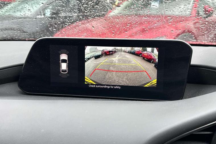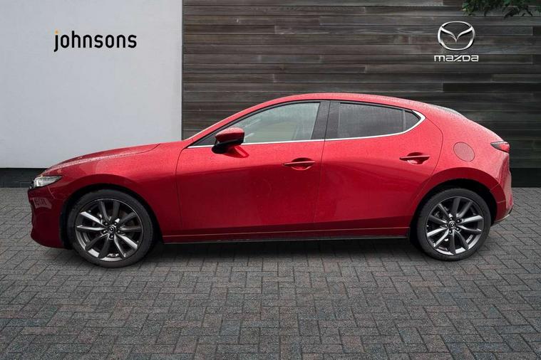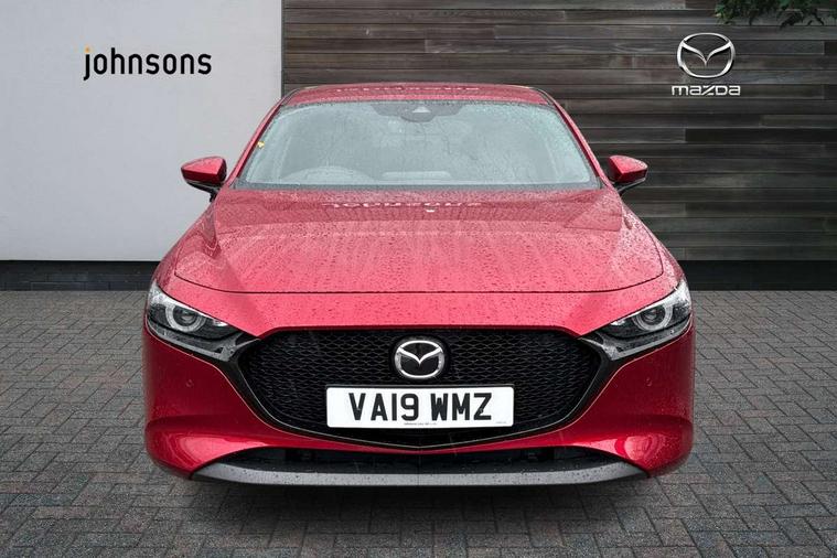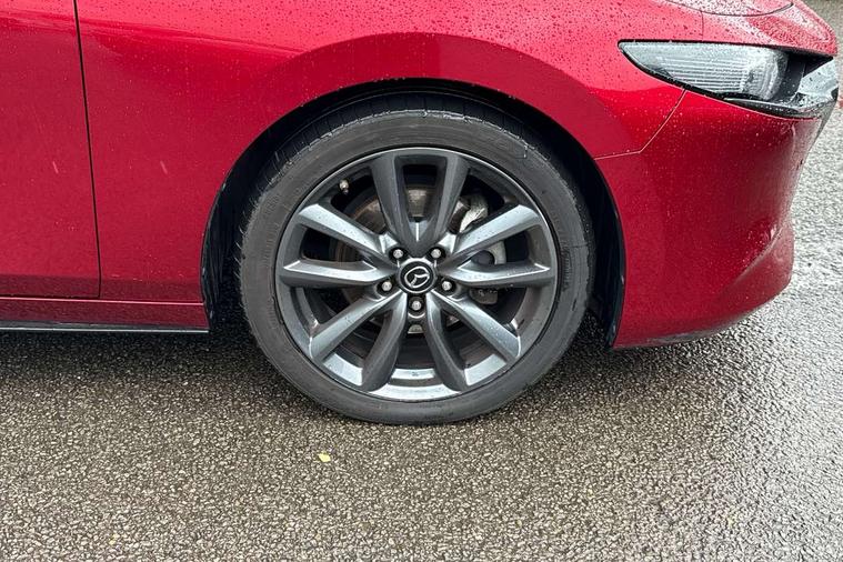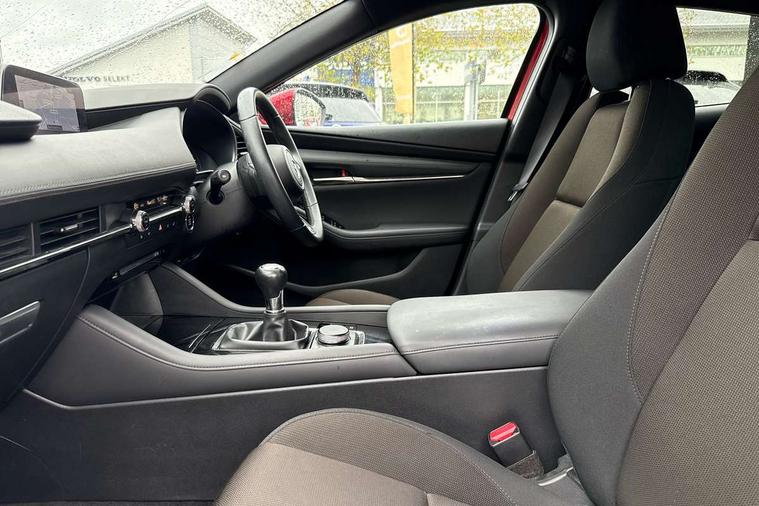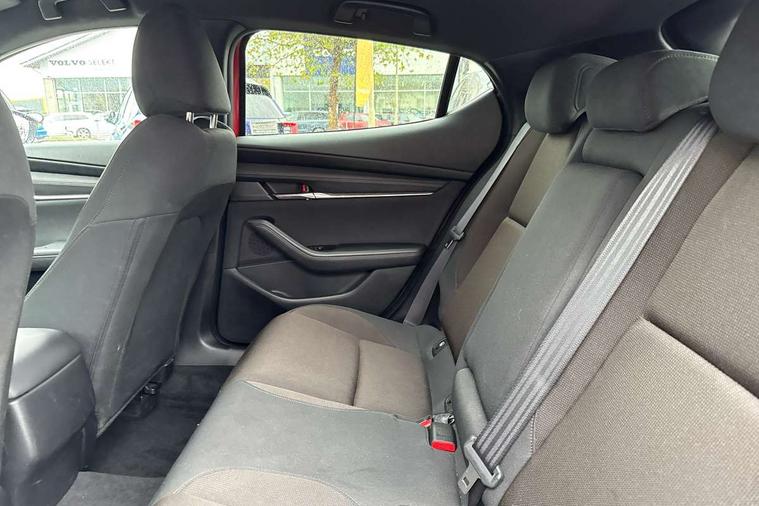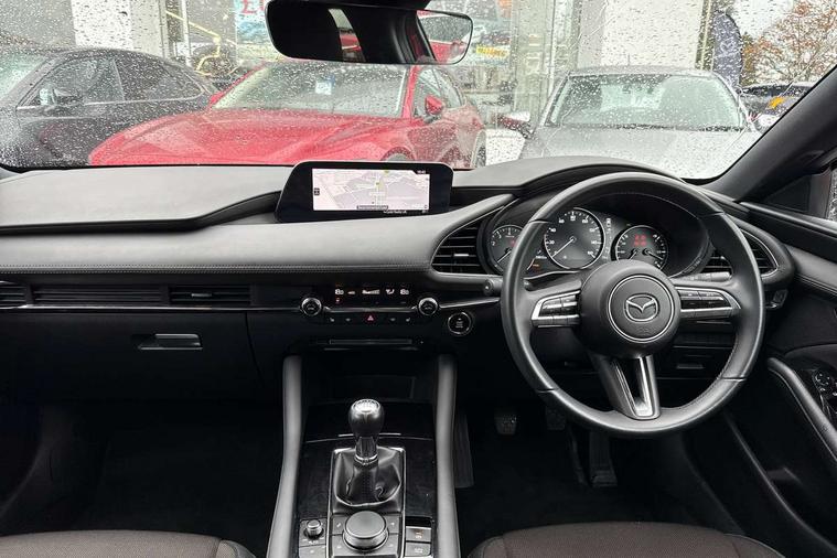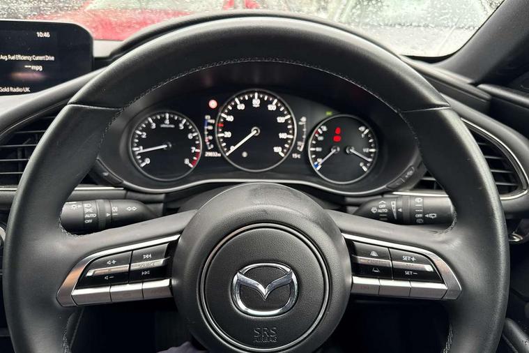 7" colour TFT display, Apple car play/Android Auto, Audio transfer from bluetooth devices, Blind spot monitoring with rear cross traffic alert, Colour active driving display inc Windscreen projected, Traffic Sign Recognition, turn-by- turn navigation and Mazda Radar Cruise Control information, Digital instrument cluster, Driver attention alert system, E-call, Emergency stop signalling system, Engine start/stop button, Front and rear parking sensors, Integrated bluetooth with steering wheel mounted controls, Intelligent speed assist, Lane departure warning with lane change assist, Mazda Navigation System with european mapping, Mazda Radar Cruise Control, Mobile App interface, Multimedia Commander, PAS, Reverse parking aid, Reversing camera, Service indicator, Trip computer, Cylinder Deactivation, i-stop, Auxiliary input socket, Mazda Multimedia System with AM / FM / DAB radio, single CD / MP3 with 8 speakers, Steering wheel mounted audio controls, Adaptive front lighting system, Auto dimming door mirrors, Coming/leaving home lighting function, Dark metallic finish signature wing, Daytime running lights, Dusk sensitive headlamps, Electric front/rear windows with one touch/auto up/down, Electrically adjustable/heated/auto power folding door mirrors with integrated indicators, Frameless auto dimming interior rear view mirror, Front body coloured bumper with black lower bezel, Gloss black grille with gloss black surround, Gloss black rear roof spoiler, High beam assist, LED headlamps with auto levelling, LED indicator lights, LED third brake light, Piano black window garnish, Privacy glass with dark tinting on rear side windows and rear window, Rain sensing front wipers, Rear fog lights, Rear gloss black lower moulding, Signature LED lights, Signature LED rear combination lights with LED rear turn lights, Speed adjustable rear wash wiper with intermittent wipe, 60/40 split folding rear seat, Chrome start button, Chrome-plated glovebox handle, Cloth upholstery, Driver, Front passenger and two rear grab handles with coathooks, Driver/passenger sunvisors + vanity mirrors (drivers side with ticket holder), Drivers seat manual slide recline and height adjustment, Dual climate control air conditioning system, Electrical power outlet, Folding rear centre armrest with 2 cupholders, Front and rear courtesy lights with delay, Front armrest, Front centre console with storage box with tray, lid + 2 cupholders, Front door pockets, Front head restraints, Front passengers seat manual slide, recline and height adjustment, Gear shift indicator, Illuminated glovebox, Isofix child seat mounting points on outer rear seats, Leather wrapped gear shift knob, Leather wrapped steering wheel, LED interior light, Luggage compartment lighting, Reach adjustable steering wheel, Roof mounted sunglasses holder, Steering wheel chrome centre bezel, Three height adjustable rear head restraints, Tilt/height adjustable steering wheel, USB charging point, 3 point ELR front seatbelts with pretensioners, 3 rear 3 point seatbelts with ELR, Anti-lock braking system (ABS), Collision mitigation braking system, Drivers knee airbag, DSC - Dynamic Stability Control, Dual front airbags, EBD - Electronic brakeforce distribution, Electronic parking brake with auto disengage function and auto hold function, ESP, Front and rear curtain airbags, Front passenger airbag cut-off switch, Front side airbags, Front smart city brake support, G-Vectoring control plus, Hill launch assist, Intelligent Traction Control system, Mild Hybrid system with regenerative braking, Seatbelt reminder front and rear, Tyre pressure monitoring system (TPMS), Auto door lock when driving, Remote central locking + deadlocks, Smart Keyless entry and start, Thatcham accredited alarm and immobiliser, 18" Grey metallic alloy wheels, Emergency tyre repair kit,