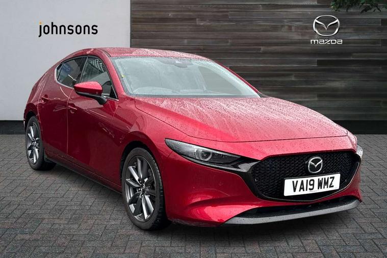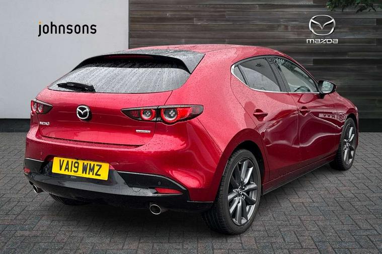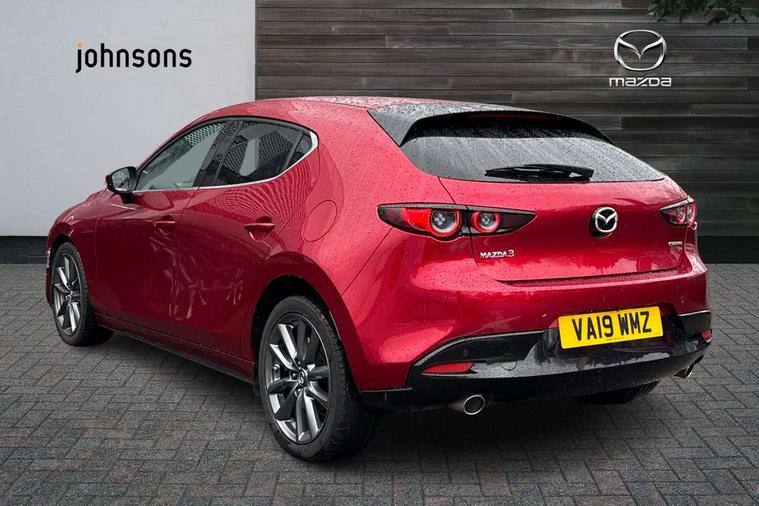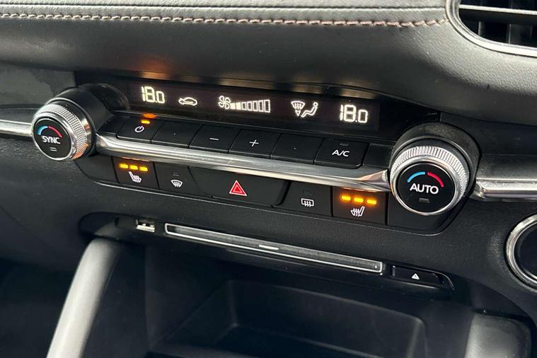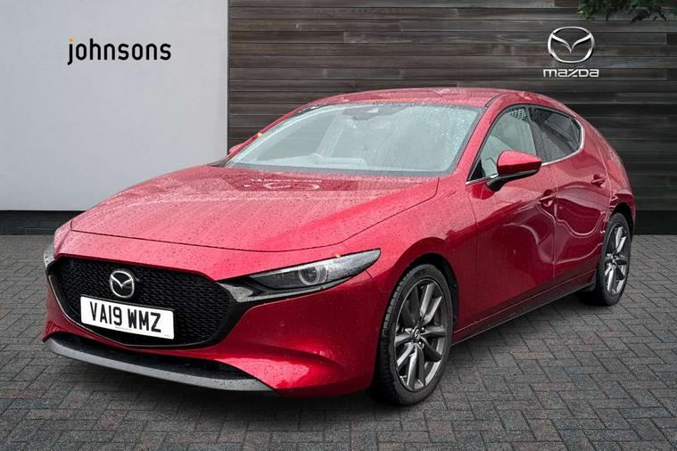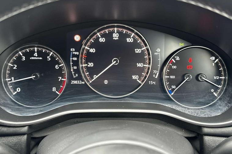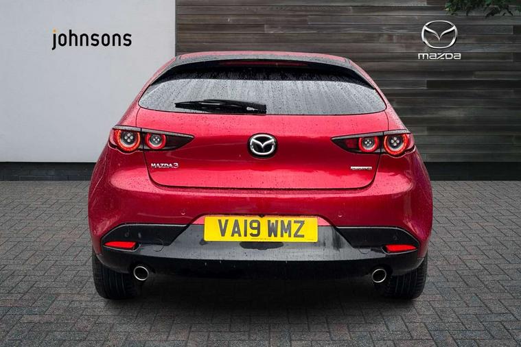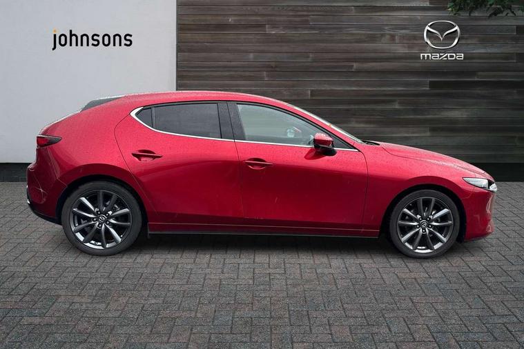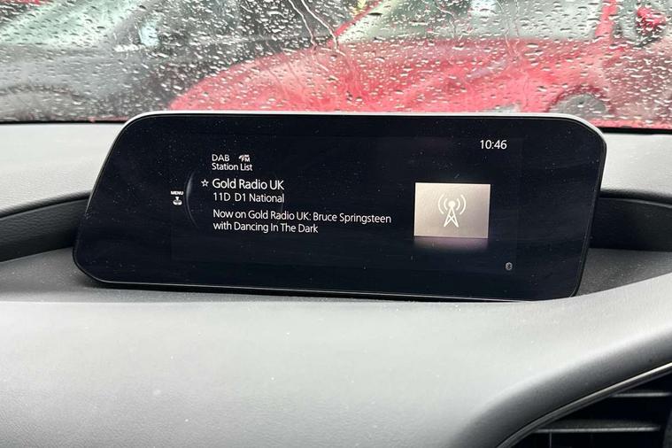 7" colour TFT display, Apple car play/Android Auto, Audio transfer from bluetooth devices, Blind spot monitoring with rear cross traffic alert, Colour active driving display inc Windscreen projected, Traffic Sign Recognition, turn-by- turn navigation and Mazda Radar Cruise Control information, Digital instrument cluster, Driver attention alert system, E-call, Emergency stop signalling system, Engine start/stop button, Front and rear parking sensors, Integrated bluetooth with steering wheel mounted controls, Intelligent speed assist, Lane departure warning with lane change assist, Mazda Navigation System with european mapping, Mazda Radar Cruise Control, Mobile App interface, Multimedia Commander, PAS, Reverse parking aid, Reversing camera, Service indicator, Trip computer, Cylinder Deactivation, i-stop, Auxiliary input socket, Mazda Multimedia System with AM / FM / DAB radio, single CD / MP3 with 8 speakers, Steering wheel mounted audio controls, Adaptive front lighting system, Auto dimming door mirrors, Coming/leaving home lighting function, Dark metallic finish signature wing, Daytime running lights, Dusk sensitive headlamps, Electric front/rear windows with one touch/auto up/down, Electrically adjustable/heated/auto power folding door mirrors with integrated indicators, Frameless auto dimming interior rear view mirror, Front body coloured bumper with black lower bezel, Gloss black grille with gloss black surround, Gloss black rear roof spoiler, High beam assist, LED headlamps with auto levelling, LED indicator lights, LED third brake light, Piano black window garnish, Privacy glass with dark tinting on rear side windows and rear window, Rain sensing front wipers, Rear fog lights, Rear gloss black lower moulding, Signature LED lights, Signature LED rear combination lights with LED rear turn lights, Speed adjustable rear wash wiper with intermittent wipe, 60/40 split folding rear seat, Chrome start button, Chrome-plated glovebox handle, Cloth upholstery, Driver, Front passenger and two rear grab handles with coathooks, Driver/passenger sunvisors + vanity mirrors (drivers side with ticket holder), Drivers seat manual slide recline and height adjustment, Dual climate control air conditioning system, Electrical power outlet, Folding rear centre armrest with 2 cupholders, Front and rear courtesy lights with delay, Front armrest, Front centre console with storage box with tray, lid + 2 cupholders, Front door pockets, Front head restraints, Front passengers seat manual slide, recline and height adjustment, Gear shift indicator, Illuminated glovebox, Isofix child seat mounting points on outer rear seats, Leather wrapped gear shift knob, Leather wrapped steering wheel, LED interior light, Luggage compartment lighting, Reach adjustable steering wheel, Roof mounted sunglasses holder, Steering wheel chrome centre bezel, Three height adjustable rear head restraints, Tilt/height adjustable steering wheel, USB charging point, 3 point ELR front seatbelts with pretensioners, 3 rear 3 point seatbelts with ELR, Anti-lock braking system (ABS), Collision mitigation braking system, Drivers knee airbag, DSC - Dynamic Stability Control, Dual front airbags, EBD - Electronic brakeforce distribution, Electronic parking brake with auto disengage function and auto hold function, ESP, Front and rear curtain airbags, Front passenger airbag cut-off switch, Front side airbags, Front smart city brake support, G-Vectoring control plus, Hill launch assist, Intelligent Traction Control system, Mild Hybrid system with regenerative braking, Seatbelt reminder front and rear, Tyre pressure monitoring system (TPMS), Auto door lock when driving, Remote central locking + deadlocks, Smart Keyless entry and start, Thatcham accredited alarm and immobiliser, 18" Grey metallic alloy wheels, Emergency tyre repair kit,