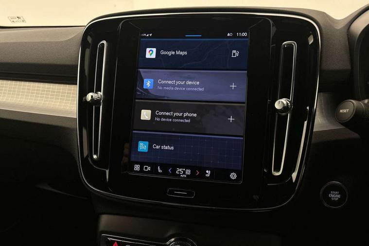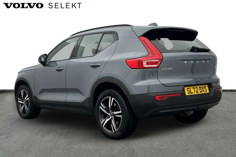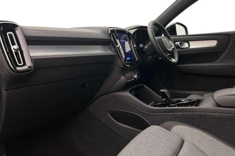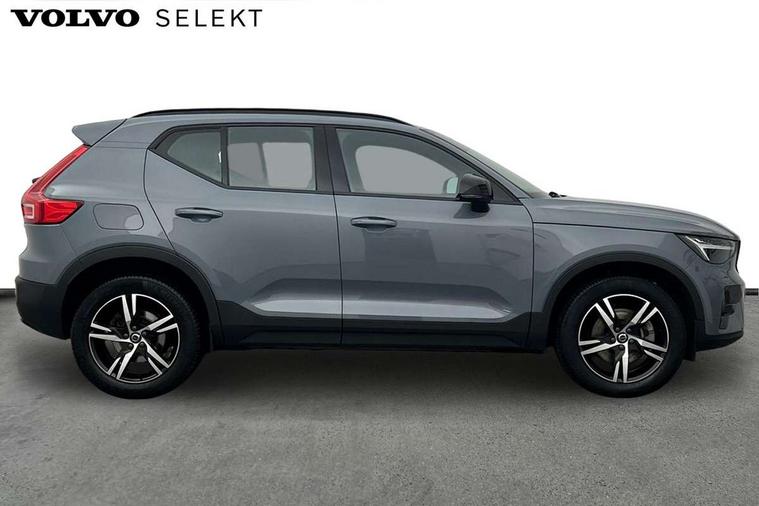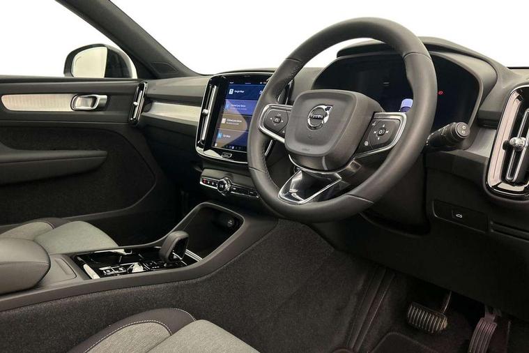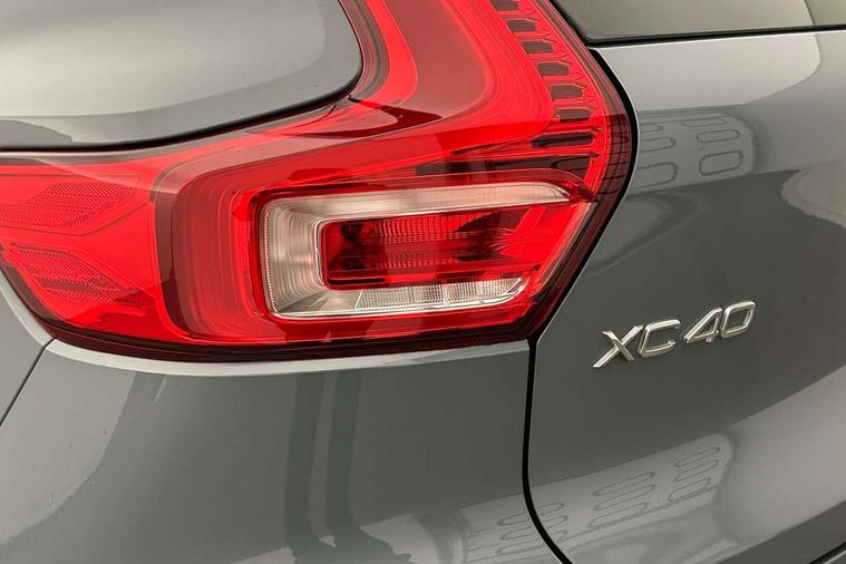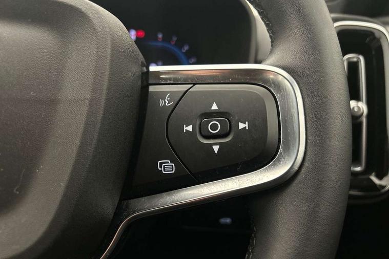 12.3" Progressive Driver Display, 9" centre console portrait touch screen, Adjustable steering wheel force, Bluetooth hands free telephone kit, Cruise control, Driver awareness - blind spot information system with steer assist, cross traffic alert with autobrake, rear collision warning and migitation, E-call, Front park assist, Google automatic services - Nav with google maps, apple carplay/android auto, voice recognition with google assistant, Hands free power tailgate, Lane keep assist with driver alert control, Oncoming Lane Mitigation, Rear park assist, Rear park assist camera, Speed limiter, Speed sensitive steering, Wireless/Inductive Mobile Phone Charging, Dynamic chassis, DAB Digital radio, High performance sound, 8 speakers/250W, front USB and 2 rear type C USB, Steering wheel mounted remote controls, Adaptive brake lights with high level LED brake lights, Auto dimming feature for exterior door mirrors, Auto dimming interior mirror, Automatic headlamp levelling, Automatic LED Headlights + Active high beam incorporating daytime running lights, Front aluminium tread plates, Front and rear electric windows, High gloss black front and rear skid plate, High gloss black mesh front grille with high gloss black surround, High gloss black window trim, Home safe and approach lighting, Integrated roof rails in high gloss black, LED front fog lights, Puddle lights, Rain sensor with automatic windscreen wiper activation, Rear side wing doors, Rear wiper, Roof antenna, Roof spoiler, Visible VIN plate, 12V socket in front tunnel console and luggage compartment, 2-Zone electronic climate control with CleanZone air quality system and pollen filter, 3 seat bench in 2nd row, 3 Spoke tailored steering wheel with chrome trim, 60/40 versatile split folding rear seat, A-pillar parking ticket holder, Ambient front door and instrumental panel lighting, Centre console cupholders and storage, Flexible load floor and grocery bag holder, Floor mats, Front door pocket and front cupholder illumination, Front footwell illumination, Front headrests, Front reading light and theatre lighting, Front seat cushion extensions, Front tunnel pocket, Glovebox bag hook, Heated front seats, Height adjustable passenger seat, Height/reach adjustable steering column, High gloss centre tunnel deco, Illuminated glovebox, Illuminated luggage compartment, Illuminated tailgate, Illuminated vanity mirrors, Integrated waste bin, Isofix attachments on outer rear seats, Load protection net, Multi directional lumbar support, Power driver seat with memory + exterior mirrors memory, Rear armrest / integral cup holders / storage tray, Rear headrests, Rear reading and courtesy lights, Single front passenger seat, Underfloor cargo storage, Climate pack without heated front seats - XC40, 3x3 point rear seatbelts, City safety with steering support with Pedestrian + cyclist + front collision warning with full auto brake and rear auto brake, Drivers knee airbag, Dual stage driver/passenger airbags, Electronic parking brake with auto hold, First aid kit, Front and outer rear seatbelt reminder and pretensioners, Front seats SIPS airbags, Hill descent control, Hill start assist, Inflatable curtain, Passenger airbag cut-off device, Power child locks on rear doors, Road sign information display, Run off Road Mitigation, Run off Road Protection, SIPS (Side Impact Protection System), Slippery road and hazard light alert, Stability and Traction Control with Spin control, Engine Drag Control and Corner Traction Control, Tyre pressure monitoring system, Vehicle deceleration control with Anti-lock Brake System, Electronic Brake Distribution and Emergency Brake Assist, Warning triangle, WHIPS whiplash protection system - front, Anti-theft alarm including immobiliser/volume sensor + level sensor, Key integrated remote control central locking + fuel flap with deadlocking system and auto open/close power windows, Keyless drive includes keyless entry and keyless start, Locking wheel nuts,