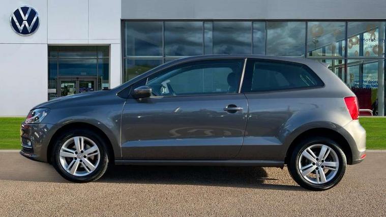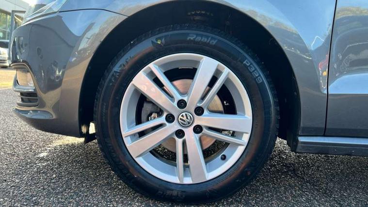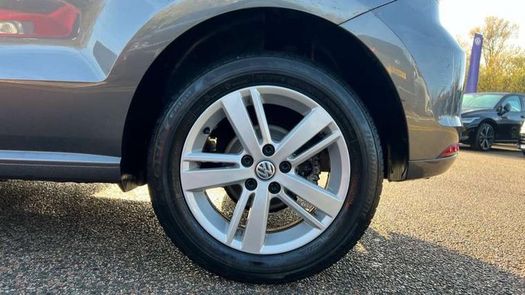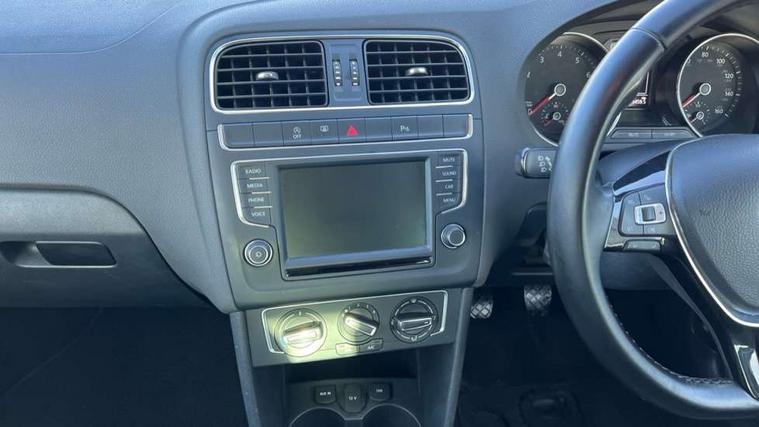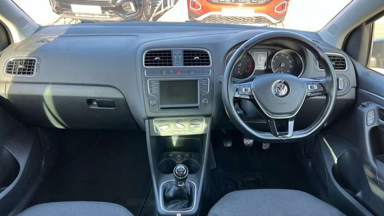 App-Connect, Bluetooth Telephone preparation, Driver alert system, Multi function display, Multifunction computer, PAS - speed related, Service interval indicator, Ultrasonic front and rear optical and audible parking sensors, Warning buzzer and light for front seatbelts unfastened, 6 speakers, Composition media system with radio, glovebox mounted CD, colour touch screen, SD card, aux-in, USB, multimedia interface, DAB Digital radio, Black grille with chrome surround, Body colour bumpers, Body colour door handles, Body colour door mirrors, Body coloured side sills, Chrome trimmed front air intake surrounds, Electric folding door mirrors, Electric front windows, Electric operated/heated door mirrors, Front fog lights with static cornering function, Front wash/wipe with interval delay, Heat insulated tinted glass 65% light absorbing from B pillar back, Heated rear window with auto timer, Rear windscreen washer and wiper with interval delay, 12V power socket in centre console, 2 bag hooks in luggage compartment, 2 cupholders, 3 rear head restraints, 3 spoke steering wheel, 4 grab handles, 60/40 split folding rear seat, Centre console storage, Chrome interior door handles, Driver and passenger sunvisors, Driver seat height adjust, Dust/pollen filter, Easy entry slide seats (access to rear seats), Front door pockets, Front passenger seat height adjust, Front seat backrest storage nets, Front/rear reading lights, Glovebox, Height/reach adjustable steering column, Illuminated vanity mirror, Interior light with delay, Isofix Preparation 2 Rear child seats, Luggage compartment cover, removable, Luggage compartment lighting, Matt chrome gear lever gaiter surround, Multifunction leather steering wheel with leather gear knob/handbrake grip, Storage compartment in front doors, Sunglasses holder, Variable boot floor, Light and sight pack - Polo, 3 point height adj front seatbelts + pretensioners, 3x3 point rear seatbelts, ABS, Automatic post collision braking, Driver/front passenger airbag, Driver/Passenger whiplash optimised head restraints, ESC - Electronic Stability Control + traction control, ESP with EDL + ASR, Hill hold control, Hydraulic Brake Assist (HBA), Tyre pressure monitoring system, Alarm with remote central locking and interior protection, Electronic engine immobiliser, Air vents in Matt chrome, Matt chrome interior trim, 15" steel spare wheel,