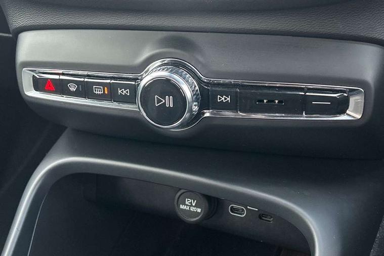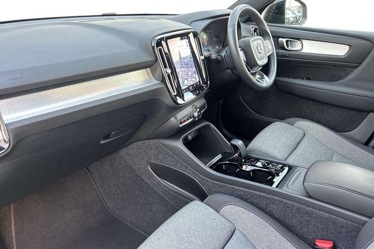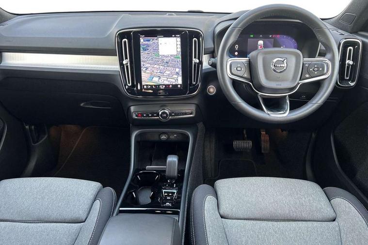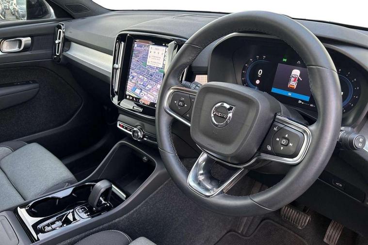 12.3" Progressive Driver Display, 360 degree surround view parking camera with side proximity sensors, 9" centre console portrait touch screen, Adjustable steering wheel force, Bluetooth hands free telephone kit, Cruise control, E-call, Front park assist, Google automatic services - Nav with google maps, apple carplay/android auto, voice recognition with google assistant, Hands free power tailgate, Lane keep assist with driver alert control, Oncoming Lane Mitigation, Rear park assist, Speed limiter, Speed sensitive steering, Wireless/Inductive Mobile Phone Charging, Dynamic chassis, DAB Digital radio, High performance sound, 8 speakers/250W, front USB and 2 rear type C USB, Steering wheel mounted remote controls, Adaptive brake lights with high level LED brake lights, Auto dimming feature for exterior door mirrors, Auto dimming interior mirror, Automatic headlamp levelling, Automatic LED Headlights + Active high beam incorporating daytime running lights, Front aluminium tread plates, Front and rear electric windows, High gloss black front and rear skid plate, High gloss black mesh front grille with high gloss black surround, High gloss black window trim, Home safe and approach lighting, Integrated roof rails in high gloss black, LED front fog lights, Puddle lights, Rain sensor with automatic windscreen wiper activation, Rear side wing doors, Rear wiper, Roof antenna, Roof spoiler, Visible VIN plate, 12V socket in front tunnel console and luggage compartment, 2-Zone electronic climate control with CleanZone air quality system and pollen filter, 3 seat bench in 2nd row, 3 Spoke tailored steering wheel with chrome trim, 60/40 versatile split folding rear seat, A-pillar parking ticket holder, Centre console cupholders and storage, Flexible load floor and grocery bag holder, Floor mats, Front door pocket, front cupholder, ambient front door, rear reading, rear courtesy, instrument panel and tailgate lighting, Front footwell illumination, Front headrests, Front reading light and theatre lighting, Front seat cushion extensions, Front tunnel pocket, Glovebox bag hook, Heated front seats, Height adjustable passenger seat, Height/reach adjustable steering column, High gloss centre tunnel deco, Illuminated glovebox, Illuminated luggage compartment, Illuminated vanity mirrors, Integrated waste bin, Isofix attachments on outer rear seats, Load protection net, Multi directional lumbar support, Power driver seat with memory + exterior mirrors memory, Rear armrest / integral cup holders / storage tray, Rear headrests, Single front passenger seat, Underfloor cargo storage, Climate pack without heated front seats - XC40, 3x3 point rear seatbelts, City safety with steering support with Pedestrian + cyclist + front collision warning with full auto brake and rear auto brake, Drivers knee airbag, Dual stage driver/passenger airbags, Electronic parking brake with auto hold, First aid kit, Front and outer rear seatbelt reminder and pretensioners, Front seats SIPS airbags, Hill descent control, Hill start assist, Inflatable curtain, Passenger airbag cut-off device, Power child locks on rear doors, Road sign information display, Run off Road Mitigation, Run off Road Protection, SIPS (Side Impact Protection System), Slippery road and hazard light alert, Stability and Traction Control with Spin control, Engine Drag Control and Corner Traction Control, Tyre pressure monitoring system, Vehicle deceleration control with Anti-lock Brake System, Electronic Brake Distribution and Emergency Brake Assist, Warning triangle, WHIPS whiplash protection system - front, Anti-theft alarm including immobiliser/volume sensor + level sensor, Key integrated remote control central locking + fuel flap with deadlocking system and auto open/close power windows, Keyless drive includes keyless entry and keyless start, Locking wheel nuts,