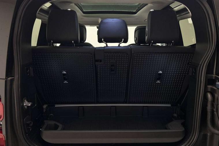 11.4" touchscreen, 360 degree parking aid, 3D Surround Camera with 360 View, 180 Rear View, Front Traffic Detection, Forward Vehicle Guidance, Tow Hitch Assist and clear sight Ground View, Adaptive cruise control, Android Auto, Apple CarPlay, Assisted tailgate with soft close, Blind spot assist, Bluetooth system, Brake pad wear indicator, Clear exit monitor, Connected navigation pro, Driver condition monitor, Electric power assisted steering (EPAS), Interactive driver display, Lane keep assist, Push button start, Rear collision monitor, Rear traffic monitor, Traffic sign recognition with adaptive speed limiter, Trip computer, Wade Sensing, 8 speed automatic transmission, All wheel drive system, Twin speed transfer box, DAB Radio (Digital Audio Broadcasting), Pivi pro connected, Auto dimming interior rear view mirror, Automatic headlight levelling, Automatic headlights, Centre high mounted stop light, Electric heated/power fold door mirrors with approach lights and auto dimming driver side, Electric windows with one touch open/close and anti-trap, Follow me home lighting, Front fog lights, Heated rear window with timer, Heated windscreen, LED tail lights, Panoramic rear side glass, Puddle lights, Rain sensing windscreen wipers, Rear fog lights, Rear wiper, Side hinged tailgate, Standard treadplates, Trailer stability assist, 12V power socket in loadspace, 14 way heated and cooled electric front seats with driver memory and 4 way manual headrests, 3 seat bench in 2nd row, Alpine lights, Configurable cabin lighting, Durable rubber cabin flooring, Durable rubber loadspace flooring, Electric reach + rake adjustable steering column, Extended leather upgrade, Footwell lights, Heated steering wheel, Loadspace cover, Loadspace Hook, Manual Tip & Slide front passenger seat, Multifunction steering wheel, Overhead stowage for sunglasses, Premium cabin lighting, Rear headrests, Rear ISOFIX, Rear reading lights, Removable Loadspace storage tray, Row 2 seats with forward folding seat base, Single front passenger seat, Standard seat configuration, Storage glovebox, Sunvisors with illuminated vanity mirrors, Online pack with data plan - Defender, 5 x 3 point seatbelts, ABS, Brake hold function, Cornering brake control (CBC), Customer configurable autolock, DSC - Dynamic Stability Control, EBD - Electronic brakeforce distribution, Electric parking brake (EPB), Emergency brake assist, Emergency braking, ESP + traction control, Front airbags with passenger seat occupant detector, HDC - Hill descent control, Hill launch assist, Low traction launch, Remote for (e-Call, Optimised assistance call, InControl app, Climate, beep and flash and door), RSC - Roll stability control, Seat belt reminder, TPMS (Tyre pressure monitoring system), Alarm, Immobiliser, Intrusion sensor, Keyless entry, Locking wheel nuts,