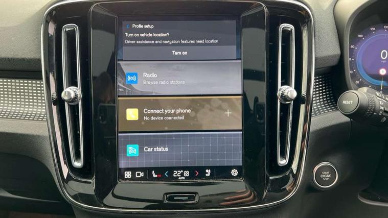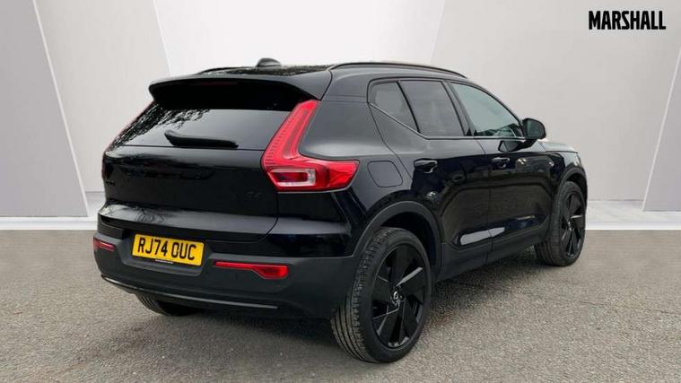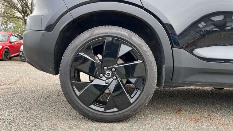 12.3" Progressive Driver Display, 360 degree surround view parking camera with side proximity sensors, 9" centre console portrait touch screen, Adjustable steering wheel force, Apple carplay (wired), Bluetooth handsfree system, Driver alert control, Driver assistance (pilot assist and adaptive cruise control), Driver awareness - Blind spot information system with steer assist, cross traffic alert with autobrake and rear collision warning and mitigation, E-call, Google automotive services - Enabled entertainment apps, navigation with google maps, voice recognition with google assistant, Hands free power tailgate, Intelligent speed assistance, Lane keeping aid, Oncoming Lane Mitigation, Speed sensitive steering, Volvo cars services with app - Driving journal, emergency and breakdown call, engine remote start, remote door locking/unlocking and vehicle dashboard, Wireless/Inductive Mobile Phone Charging, Automatic transmission with start/stop and manual change functions, Dynamic chassis, DAB Digital radio, Premium Sound by Harman Kardon, Dolby Pro Logic II Surround Sound, Dirac Unison, 12 speakers/600W and subwoofer, Steering wheel mounted remote controls, Active bending pixel LED headlights with adaptive shadow technology, Active high beam incorporating daytime running lights, Adaptive brake lights with high level LED brake lights, Auto dimming feature for exterior door mirrors, Auto dimming interior mirror, Automatic headlamp levelling, Colour coordinated auto folding and heated power door mirrors, Dark tinted windows - rear side windows and rear screen, Front aluminium tread plates, Front and rear electric windows, Headlight cleaning system, High gloss black front and rear skid plate, High gloss black front bumper deco, High gloss black front grille strikethrough and ironmark, High gloss black rear model, engine and volvo logo badges, High gloss black window trim, Home safe and approach lighting, Integrated roof rails in high gloss black, LED front fog lights with cornering function, Power glass tilt and slide panoramic sunroof with sun curtain, Puddle lights, Rain sensor with automatic windscreen wiper activation, Rear side wing doors, Rear wiper, Roof antenna, Roof spoiler, Special metallic paint, Visible VIN plate, 12V socket in front tunnel console and luggage compartment, 2-Zone electronic climate control with CleanZone air quality system and pollen filter, 3 seat bench in 2nd row, 3 Spoke tailored steering wheel with chrome trim, 60/40 versatile split folding rear seat, Centre console cupholders and storage, Charcoal headlining, Connect textile/microtech upholstery, Flexible load floor and grocery bag holder, Floor mats, Front cabin courtesy lights, Front door pocket, front cupholder, ambient front door, rear reading, rear courtesy, instrument panel and tailgate lighting, Front footwell illumination, Front headrests, Front reading lights, Front seat cushion extensions, Front side step illumination (under door), Glovebox bag hook, Heated front seats, Height/reach adjustable steering column, High gloss centre tunnel deco, Illuminated glovebox, Illuminated luggage compartment, Illuminated vanity mirrors + ticket holder, Integrated waste bin, Isofix attachments on outer rear seats, Load cover, Load protection net, Multi directional lumbar support for driver and passenger seat, Power driver seat with memory + exterior mirrors memory, Power folding rear headrests, Power passenger seat, Rear armrest with cupholders, Single front passenger seat, Underfloor cargo storage, Climate pack without heated front seats - XC40, 3x3 point rear seatbelts, City safety with steering support with Pedestrian + cyclist + front collision warning with full auto brake and rear auto brake, Driver and passenger airbags, Drivers knee airbag, Electronic parking brake with auto hold, First aid kit, Front and outer rear seatbelt reminder and pretensioners, Front seats SIPS airbags, Hill descent control, Hill start assist, Inflatable curtain, Passenger airbag cut-off device, Power child locks on rear doors, Road sign information display, Run off Road Protection, SIPS (Side Impact Protection System), Slippery road and hazard light alert, Stability and Traction Control with Spin control, Engine Drag Control and Corner Traction Control, Tyre pressure monitoring system, Vehicle deceleration control with Anti-lock Brake System, Electronic Brake Distribution and Emergency Brake Assist, Warning triangle, WHIPS whiplash protection system - front, 2 x Key integrated remote control central locking including with deadlocking system and auto open/close windows and sunroof, Anti-theft alarm including immobiliser/volume sensor + level sensor, Keyless drive includes keyless entry and keyless start, Locking wheel nuts, 20" 5 spoke high gloss black alloy wheels,