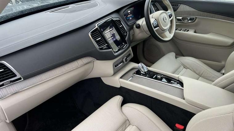 12.3" Progressive Driver Display, 360 degree surround view parking camera with side proximity sensors, 9" centre console portrait touch screen, Adjustable steering wheel force, Apple carplay (wired), Bluetooth handsfree system, Driver alert control with lane keeping aid, Driver assistance (pilot assist and adaptive cruise control), Driver awareness - Blind spot information system with steer assist, cross traffic alert with autobrake and rear collision warning and mitigation, Emergency call service, Front and rear park assist, Google Automotive Services - Navigation with Voice recoginition and google assistant, Handsfree power tailgate opening and closing, Intelligent speed assistance, Oncoming Lane Mitigation, Power operated tailgate, Service interval indicator, Speed sensitive steering, Trip computer, Volvo on call, Wireless/Inductive Mobile Phone Charging, 8 speed automatic transmission with start/stop + manual change functions, Touring chassis, DAB Radio (Digital Audio Broadcasting), Premium Sound by Harman Kardon, dirac unison, dolby pro logic II surround sound, 13 speakers/600W output and fresh air subwoofer, Steering wheel remote infotainment controls, Active bending headlights with adaptive shadow technology, Adaptive brake lights with high level LED brake lights, Auto dimming interior + exterior mirrors, Auto folding and heated power door mirrors, Automatic headlight levelling system, Automatic LED Headlights + Active high beam incorporating daytime running lights, Body colour bumpers, Dark tinted windows - rear side windows and rear screen, Front and rear power windows, Headlight cleaning system, Heated front windscreen, High gloss black door mirrors and window surround, High gloss black front and rear bumper deco, High gloss black mesh front grille with surround, Home safe and approach lighting, Integrated roof rails in high gloss black, Laminated side and rear windows, LED front fog lights with cornering light function, Power glass tilt and slide panoramic sunroof with sun curtain, Puddle lights, Rain sensor with automatic windscreen wiper activation, Rear side step illumination, Rear side wing doors, Rear wash/wipe with intermittent wipe setting, Roof antenna, Roof spoiler, Visible VIN plate, 12V socket front tunnel console, rear passenger compartment, 2nd Row centre armrest with and cupholders, 3 Spoke tailored steering wheel with chrome trim, 4 zone electronic climate control with Clean zone air quality system + pollen filter, A-pillar parking ticket holder, Air conditioning for 3rd row of seats, Air purifier PM2.5, Ambient door and instrument panel lighting, B Pillar ventilation, Bright metal luggage scuff plate, Centre console cupholders and storage, Floor mats, Front and rear courtesy lights, Front and rear door pocket illumination, Front footwell and side step illumination, Front headrests, Front reading lights, Front seat cushion extensions, Front seat power side support, Front tunnel storage illumination, Heated front seats, Heated rear seats, Heated steering wheel, Height/reach adjustable steering column, Illuminated front and rear tread plates, Illuminated luggage compartment, Illuminated tailgate, Illuminated vanity mirrors + ticket holder, Illumination lockable glovebox compartment, Inner door release handle illumination, Integrated sun curtains in rear doors, Isofix outer rear child seat preparation in 2nd row, Load cover, Load protection net, Lockable glovebox compartment, Luggage compartment divider with grocery bag holder, Nappa soft leather perforated /ventilated upholstery, Outboard armrest with cupholder and storage for third row passengers, Power driver seat with multi directional lumbar support and memory for seat and exterior mirrors, Power folding 2nd row headrests, Power passenger seat with multi directional lumbar support and memory, Rear footwell illumination, Rear headrests, Rear reading lights, Single front passenger seat, Three 2nd row individual folding passenger seats with fore/aft adjustment, Two 3rd row individual folding passenger seats, Underfloor luggage compartment storage, 7 three point seatbelts, City safety with steering support includes pedestrian, cyclist detection, front collision warning with full auto brake and rear auto brake, Driver and passenger airbags, Drivers knee airbag, First aid kit, Front seats SIPS airbags, Hill descent control - off drive mode, Hill start assist, IC (Inflatable Curtains) - Full Length, Passenger airbag cut-off switch, Power child locks on rear doors, Power parking brake with auto hold function, Road sign information display, Run off Road Mitigation, Run off Road Protection, Seatbelt reminder and pretensioners for all seats, SIPS (Side Impact Protection System), Slippery road and hazard light alert, Stability and Traction Control with Spin control, Engine Drag Control and Corner Traction Control, Tyre pressure monitoring system, Vehicle deceleration control with Anti-lock Brake System, Electronic Brake Distribution and Emergency Brake Assist, Warning triangle, WHIPS whiplash protection system - front, 2x Key integrated remote control central locking + deadlocking system and auto open/close windows, Anti-theft alarm including immobiliser/volume sensor + level sensor, Care key with user defined top speed, Keyless drive includes keyless entry and keyless start, Locking wheel nuts, Tailored Instrument Panel and Door Tops with Contrast Stitching, 21" 5 double spoke diamond cut black alloy wheels, Tempa spare wheel and jack,