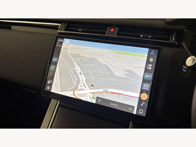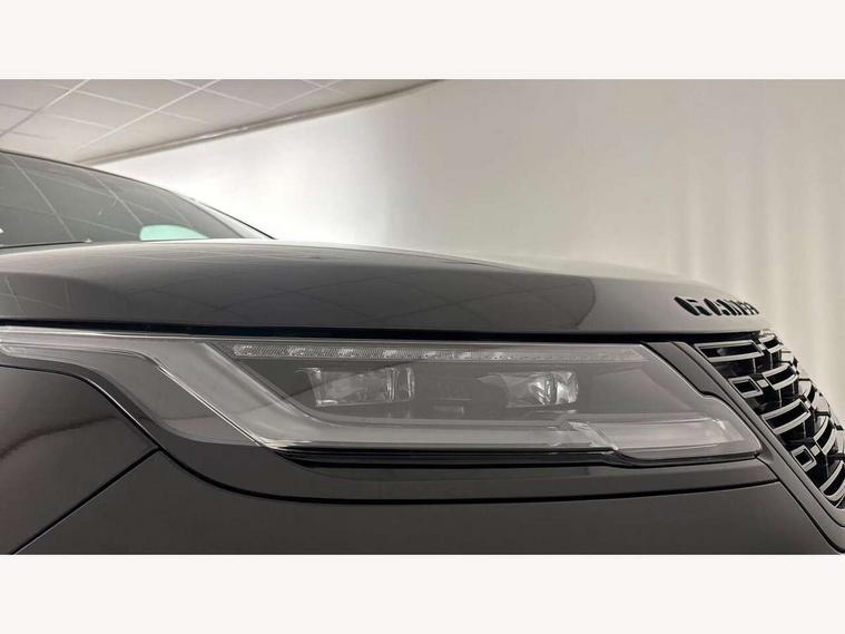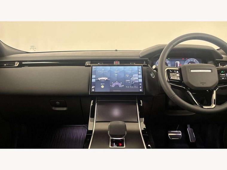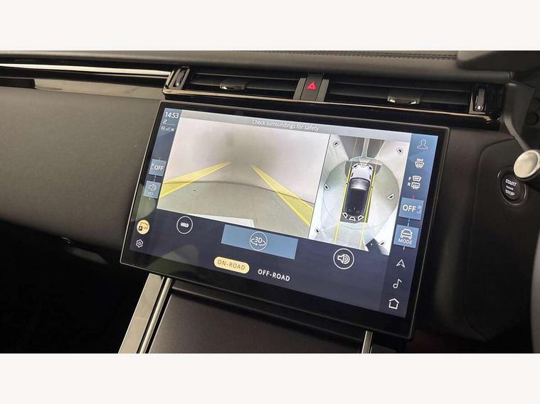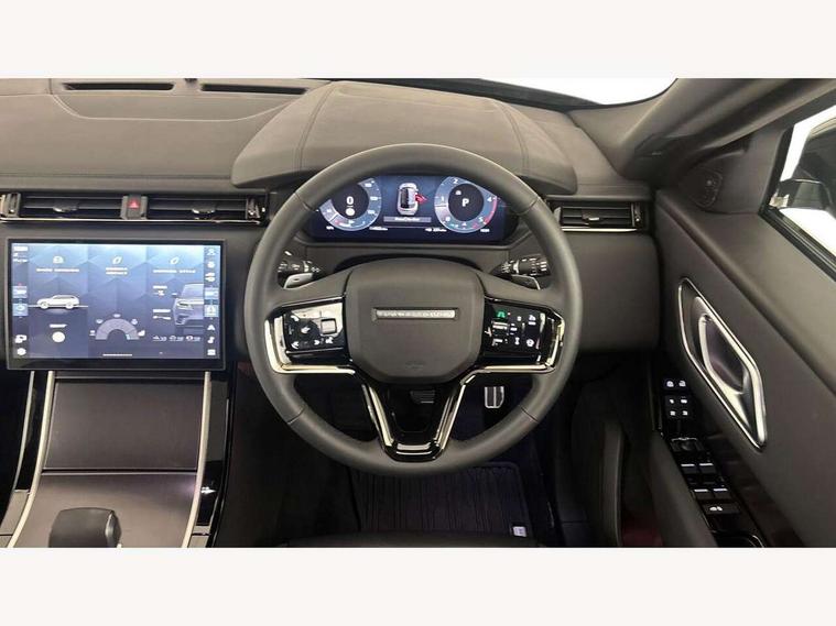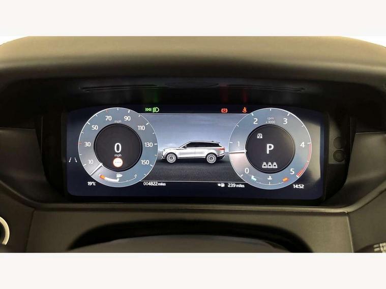 3D surround camera includes forward traffic detection and vehicle guidance, Android Auto, Apple CarPlay, Blind spot assist, Bluetooth connectivity, Brake pad wear indicator warning light, Driver condition monitor, eCall emergency call system, Front and rear parking aid, InControl remote, Land Rover InControl apps, Lane keep assist, Pivi pro with connected navigation, Rear traffic monitor, Service indicator, Speed proportional electronic power assisted steering (EPAS), Traffic sign recognition with adaptive speed limiter, Trip computer, Voice control system, Wade Sensing, Wireless device charging, 8 speed automatic transmission, All terrain progress control, Coil suspension system, Open differential with torque vectoring by braking, Single speed transfer box, DAB radio, Steering wheel mounted controls, 3rd brake light, Acoustic laminated windscreen, Auto dimming interior rear view mirror, Auto high beam assist, Automatic headlamp levelling, Automatic headlights, Body coloured bumpers, Boot protection plate, Electric windows with one touch open/close and anti trap, Flush deployable exterior door handles, Follow me home headlights, Heated rear window with timer, Heated washer jets, Heated windscreen, LED headlights with signature DRL, Metal front tread plates, Metal load space scuff plates, Power fold, auto-dimming, heated door mirrors with memory and approach lights, Rain sensor windscreen wipers, Rear animated directional indicators, Rear fog lights, Rear side wing doors, Rear wash/wipe, Tailgate/boot lid spoiler, Trailer stability assist, Velar badge, 14 way electrically adjustable front seats with driver's memory function, 3 seat bench in 2nd row, Ambient lighting, Bright metal pedals, Carpet mats, Driver/passenger sunvisors with illuminated vanity mirrors, Ebony morzine headlining, Electrically adjustable steering column, Heated steering wheel, Isofix system on outer rear seats, Loadspace cover, Overhead lighting console, Overhead stowage for sunglasses, Passive front headrests, Rear air vents, Rear centre headrest, Single front passenger seat, Twin front cupholders, Twin sliding front centre armrest, Online pack with data plan - Velar, Power socket pack 2 - Velar, 355mm Front and 325mm Rear brakes, 3x3 point rear seatbelts, Anti-lock braking system (ABS), Cornering brake control, Curtain airbags, Customer configurable autolock, Door side intrusion beams, Driver airbag, DSC - Dynamic Stability Control, Electronic brake force distribution, Electronic parking brake, Electronic traction control, Emergency braking, Front and rear seatbelt reminder, Hill descent control, Hill launch assist, Low traction launch, Passenger airbag, Power operated child locks, Rear airbags, Roll stability control, Side airbags, Tyre pressure monitoring system (TPMS), Global lock and unlock switch on driver door, Immobiliser, Intrusion sensor, Keyless entry, Lock only switch on front passenger door, Locking wheel nuts, Perimetric alarm, Remote central locking, All season tyres,