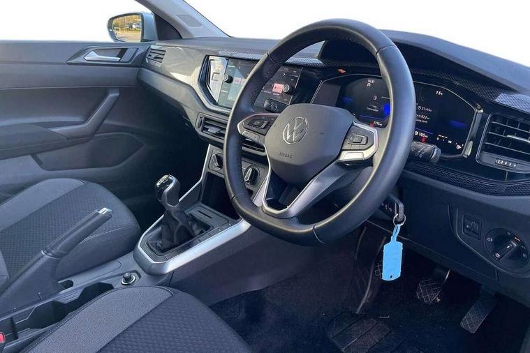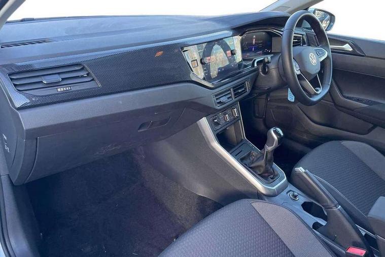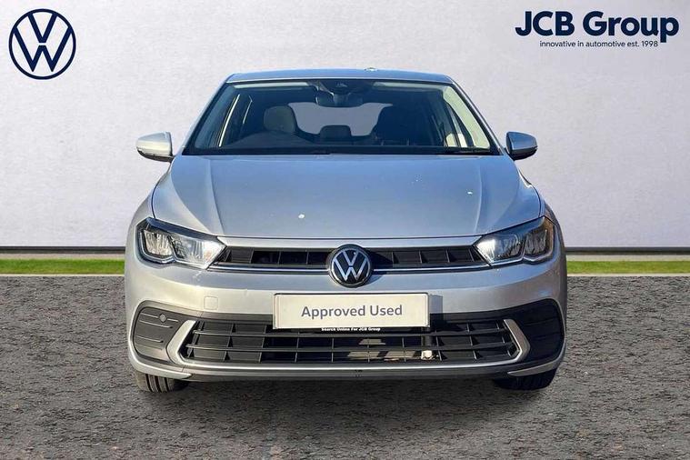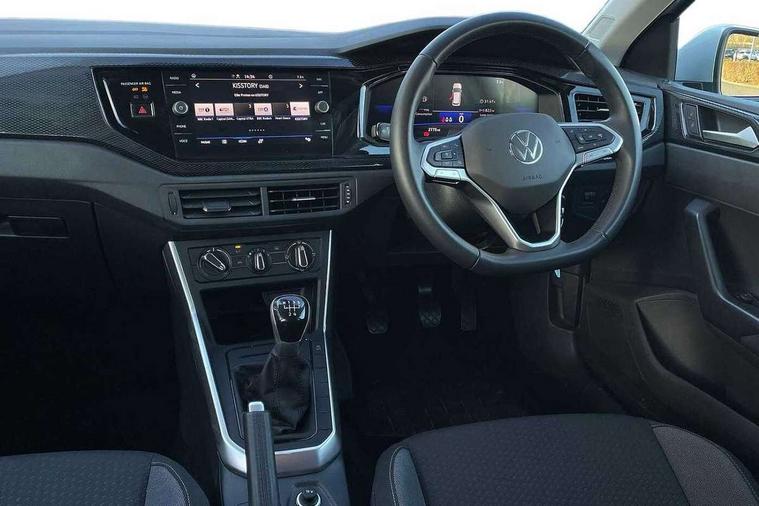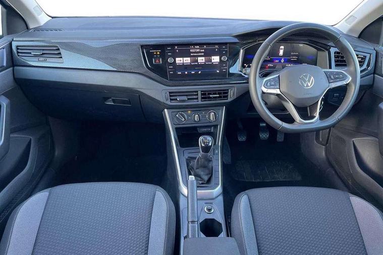 Adaptive cruise control without follow-to-stop and speed limiter, Advanced driver attention and drowsiness monitor, Bluetooth mobile phone interface, Dynamic road sign display, Emergency call service, Multifunction front facing camera for distance control, Park distance control, Power assisted speed sensitive steering, Preparation for navigation system with media and internet package, Preparation for We connect and We connect plus, Rear view camera, Speedo and rev counter, electronic odometer, trip, service interval display and exterior temperature gauge, Standard rear axle, Travel Assist - Lane keeping system and traffic jam assist, Travel assist including emergency assist, Trip computer, Warning signal and warning light for front and rear seatbelts not fastened, Washer fluid level indicator, Wireless app connect, Front wheel drive, Rear shock absorpion, Start-stop system with battery regeneration (recuperation - energy recovery during braking), DAB Digital radio, Diversity antenna for FM reception, Front and rear 6 speakers, Automatic dimming interior rear view mirror, Automatic headlight control with LED separate daytime running lights with coming/leaving home function, Body colour bumpers with chrome inserts, Body colour door handles, Body colour door mirrors, Electric front windows, Engine badge deletion, Headlight range adjustment, Heat insulating and laminated safety glass windshield, LED Headlights, LED rear combination lamps, Power folding adjustable/heated exterior mirrors and front passenger exterior mirror lowering function, Rain sensor, Rear electric windows, Rear fog light, Rear side wing doors, Rear tinted glass from B-pillar backwards approx 65% tinted, Rear windscreen washer and wiper with interval delay, Third brake light, 12V power socket in centre console, 2 front and 2 rear reading lights with switch off delay and dimmer, 2 USB-C ports in the front, 2 USB-C charging sockets on the center console in the rear, 3 rear head restraints, 60/40 split folding rear seat and rear seat bench not split, Ceramique roof lining, Chrome plated radiator grille inserts, air vent surrounds and light switch surrounds, Door and side trim panel, Driver and front passenger seat height adjustment, Driver/passenger sunvisors with illuminated vanity mirrors, Front centre armrest, Front seat backrest storage pockets, Front standard seats, Handbrake lever handle in leather, Hartley/Thomas cloth upholstery, Headliner in recycled material, Isofix child seat preparation easy-fit (for two outer rear seats, and front passenger seat) compatible with I-size, Leather trimmed gear knob, Luggage compartment cover, Luggage compartment lighting, Removable luggage compartment floor, Single front passenger seat, Standard climatic zones, Standard pedal cluster, Three spoke leather wrapped multifunction steering wheel, Light and vision pack - Polo, 3 point height adj front seatbelts + pretensioners, 3 point seat belt for centre rear seat, 3 point seatbelts, outer rear with ECE lable, ABS, Driver and front passenger airbag with front passenger airbag deactivation, Drivers and front passengers safety optimised head restraints, ESC (Electronic stability control) + EDL (Electronic Differntial lock) and ASR (Traction control), Extended and predictive pedestrian/ cyclist protection, Front assist with autonomous emergency braking (for Adaptive Cruise Control ACC up to 130 mph), Front curtain and side airbags with center airbag, Front disc brakes, Hill hold control, Manual child lock in rear doors, Rear drum brakes, Single tone horn, Tyre pressure loss indicator, Alarm with interior protection, Anti-theft alarm system with interior monitoring, backup horn, and towing protection, Anti-theft wheel bolts, Electronic engine immobiliser, Lava stone black gloss/matt decorative inserts in dash and front door panels, 16" Torsby alloy wheels, Low rolling resistance tyres,