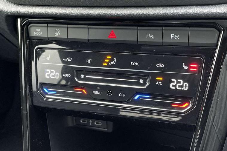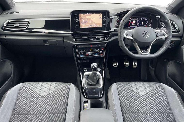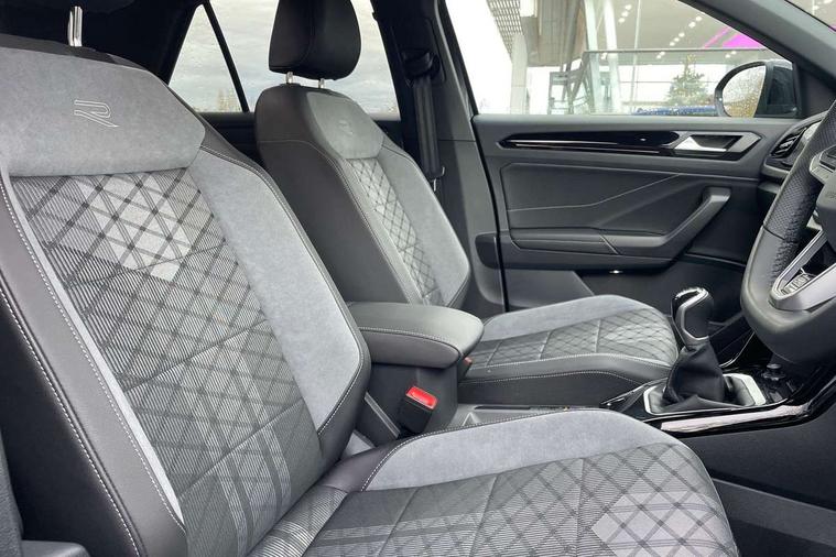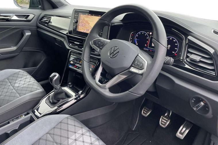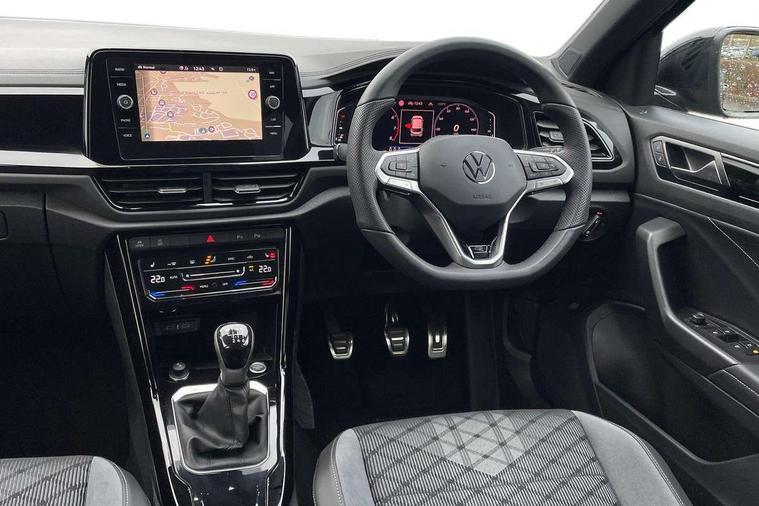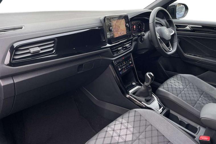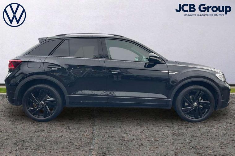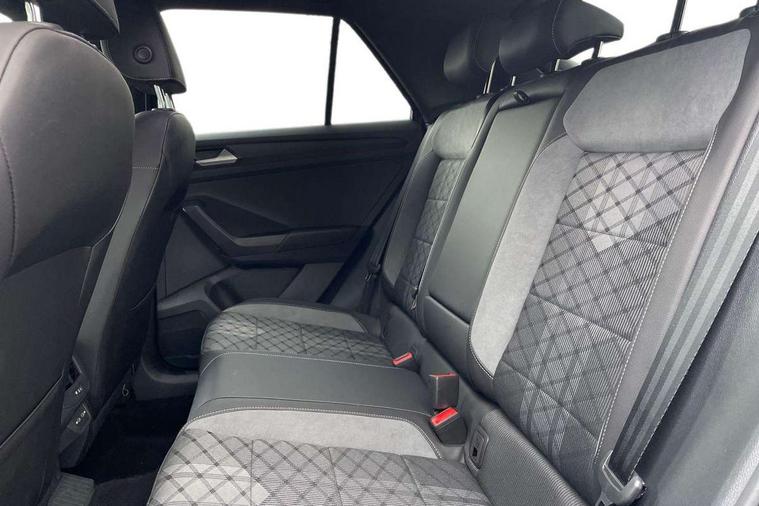 10.25" Digital cockpit pro, Advanced driver attention and drowsiness monitor, Emergency call service, Lane keeping system Lane Assist, Mobile phone interface, Modified key software - reduce switch off time for key status change to Long no motion, Online services, Park assist including front and rear parking sensors, Power assisted speed sensitive steering, Service interval indicator, Tailgate/trunk lid release from outside, Think blue trainer driver tips and journey analysis, Warning sound and light for front seatbelts unfastened, Wireless app connect, Battery regeneration during braking, Rear shock absorption chassis with increased ride height, Start/stop function with battery regeneration, DAB Digital radio, Diversity antenna for FM reception, Front and rear 6 speakers, Music playback - MP3, WMA and AAC files, Premium USB cable in choice of either Apple or Android smartphone compatibility, SD card slot, Simultaneous pairing of 2 compatible mobile devices, Title and cover art display, We Connect and We Connect Plus functionality, Auto dimming interior rear view mirror, Automatic hazard lights activation under emergency braking, Automatic headlight control with LED separate daytime running lights with coming/leaving home function, Dynamic cornering light, Electrically adjustable and heated door mirrors, Extended roof spoiler, Exterior mirrors aspherical on driver side, convex on front passenger side, External USB type C socket and charging sockets, Front windscreen wiper with intermittent wipe and 4 position delay, Heated rear window, Illuminated front grille, IQ LED matrix headlights, LED 3rd brake light, LED rear number plate lights, LED rear tail lights with dynamic turn signal, Light mode for poor weather, rain, fog or snow, Power windows with comfort operation and circuit breaker, R-Line design body coloured bumpers, Rain sensor, Rear exhaust tailpipe, Rear fog light on one side and reversing lights on both sides, Rear side wing doors, Rear wash/wipe with intermittent wipe setting, Remote electrically foldable door mirrors, puddle lights and reverse activated passenger's door mirror, 12V power socket in centre console, 3 rear head restraints, 3 seat bench in 2nd row, 4 load lashing points in luggage compartment, Air care climatronic air conditoning system with active combination filter and 2-zone temperature control, Artvelours cloth upholstery, Black roof lining, Chrome plated radiator grille inserts, air vent surrounds and light switch surrounds, Door and side trim panel with leatherette insert, Drawer under drivers seat, Driver seat height adjust, Driver's seat lumbar support, Front + rear carpet mats, Front centre armrest, Front comfort sports seats, Front cupholders x 2, Front footwell illumination, Front reading light, Front scuff plates with R Line logo, Front seat back storage pockets, Glove compartment door with light, Instrument lighting, white adjustable panel illumination, Interior ambient lighting and surround lighting, Interior light delay, Isofix child seat preparation, Leather gearshift handle, Load-through provision with cup holder when folded down ('Unsplit rear seat bench, split folding backrest, with centre armrest), Luggage compartment lighting, Non-folding front passenger seat backrest, Passenger seat height adjuster, Passenger seat lumbar support, Single front passenger seat, Stainless steel pedals, Storage compartment in left and right luggage area, Storage compartment in rear doors, Storage compartments in driver and front passenger doors, Sunvisors with illuminated vanity mirrors, Variable boot floor, height adjustable and removable, Winter pack without heated windscreen washer jets - T-Roc, 3 point height adj front seatbelts + pretensioners, 3 point seatbelts in outer rear with ECE label, ABS, Child locks on rear doors, City emergency braking and pedestrian monitoring, Driver and front passenger airbag with front passenger airbag deactivation, Driver and front passenger safety-optimised head restraints, Drivers seatbelt reminder, Electronic parking brake, Electronic Stability Control (ESC) inc EDL (Electronic Differential Lock) and ASR (Traction Control), Front and rear passengers curtain airbag system including front side airbags, Front disc brakes, Hill start assist, Predictive pedestrian protection, Rear disc brakes, Two tone horn, Tyre pressure loss indicator, Volkswagen roadside assistance, Tool kit, Trims for alloy wheels, Tyre mobility kit including compressor and sealing foam,