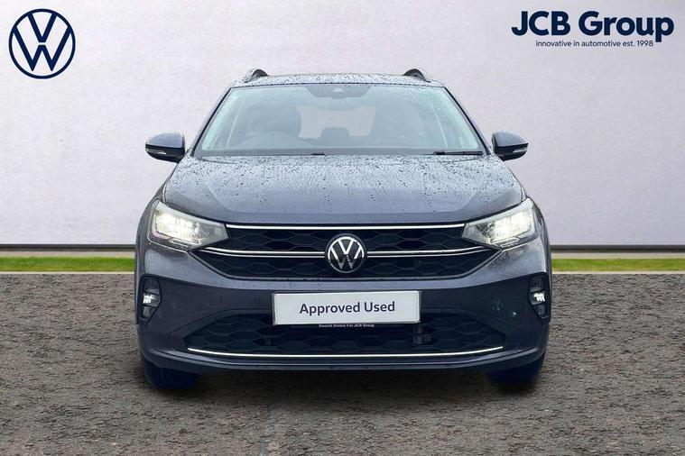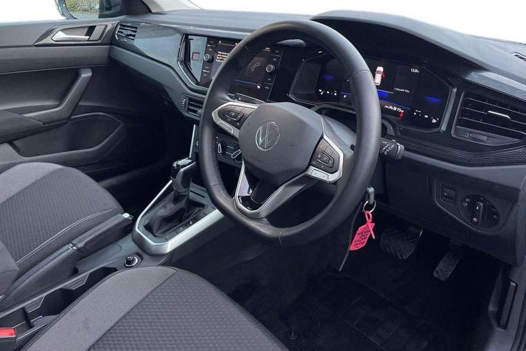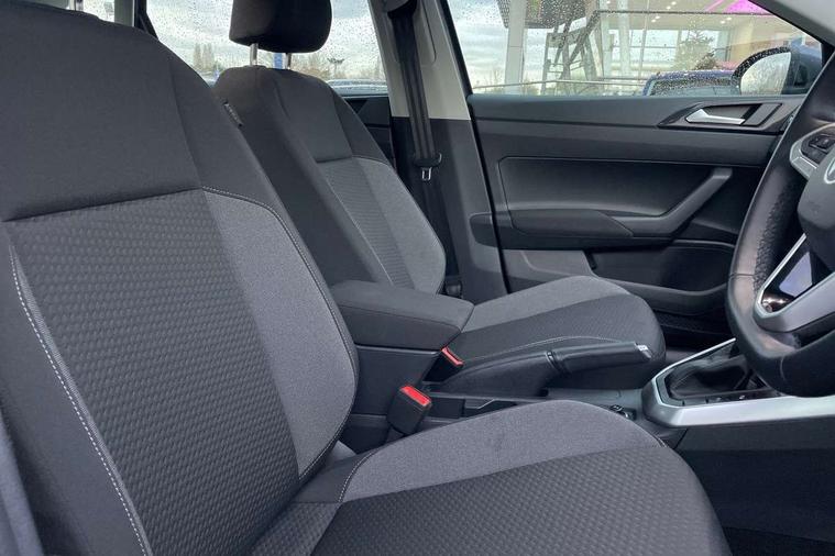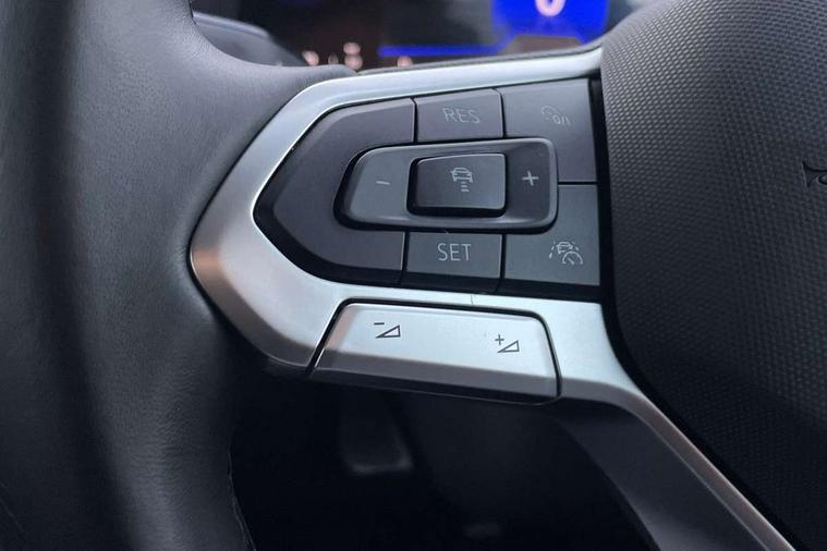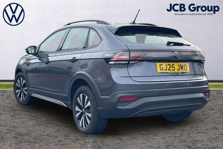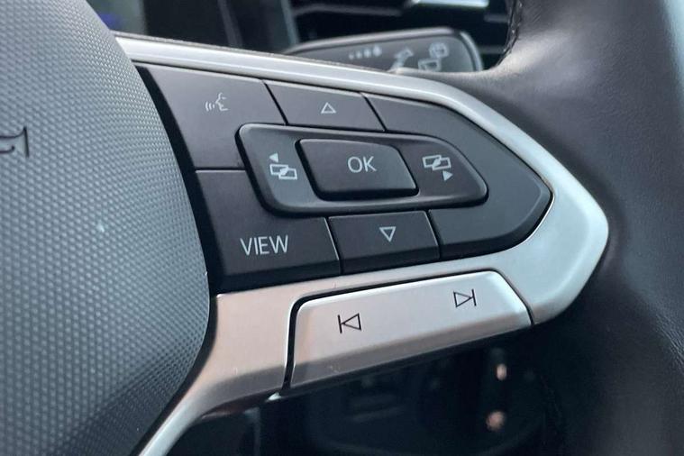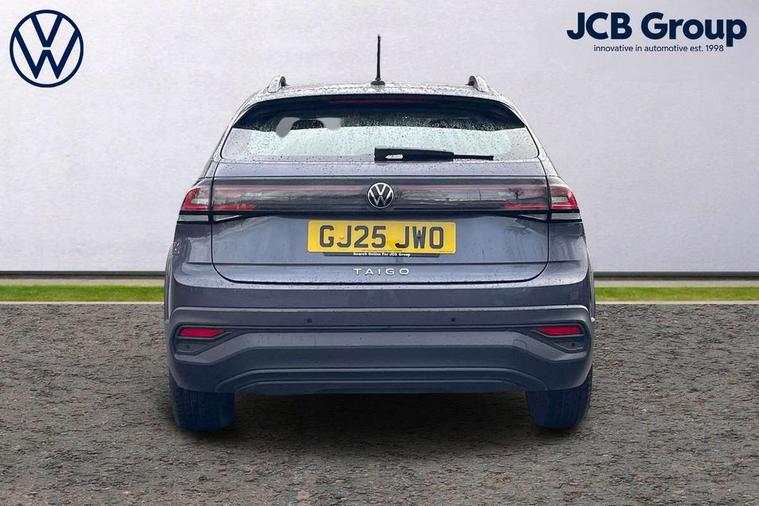 Adaptive cruise control, Advanced driver attention and drowsiness monitor, Dynamic road sign display, e-Call (emergency call), Power Steering, Travel assist including emergency assist, Washer fluid level indicator, Wireless Charging including Bluetooth, Start-stop system with battery regeneration (recuperation - energy recovery during braking), WeConnect plus, Ambient lighting with logo projection, Aspherical driver's exterior mirror, Auto headlights, Body coloured bumpers, Body coloured exterior mirror housings and door handles, Electric windows, External USB type C socket and charging sockets, Heat insulating glass windscreen, LED rear combination lamp, LED third brake light, Left convex exterior mirror, Power folding adjustable/heated exterior mirrors and front passenger exterior mirror lowering function, Rear fog light on one side, reversing light on both sides, Rear side wing doors, Rear wash/wipe with intermittent wipe setting, 'Slash/ Austin' Cloth upholstery, 12V socket in centre console, 2 front reading lights, 3 rear head restraints, 3 seat bench in 2nd row, Black carpets, Child seat anchor for child seat system i-Size, 2x top tether and child seat anchor in front on front passenger side, Door and side trim panels in titan black, Driver and front passenger seat height adjustment, Front centre armrest, Height and reach adjustable steering wheel, Leather trimmed gear knob, Leather wrapped multifunction steering wheel with paddle shift, Luggage compartment floor, Luggage compartment light, Lumbar support for driver's and front passengers seat, Seat covers in titanium black, Single front passenger seat, Split folding backrest with centre armrest and unsplit rear seat bench, Storage compartment under front seats, Sun visors with illuminated vanity mirrors, Chrome Package - Taigo, Drivers assistance pack - Taigo, Light and Sight pack including High beam assist - Taigo, 2 x 3-point seatbelts/outer rear seats with ECE label, 3-point seat belts in front with pretensioner and height adjustment, 3-point seatbelt for centre rear seat, Adaptive driver and front passenger airbags with passenger airbag deactivation function, Driver and front passenger safety-optimised head restraints, Electronic stability control, Extended and predictive pedestrian/ cyclist protection, Front and rear disc brakes, Front curtain and side airbags with center airbag, Hill start assist, Manual rear child locks, Single tone horn, Tyre pressure loss indicator, Anti-theft alarm system with interior monitoring, backup horn, and towing protection, Lava stone black gloss/matt decorative inserts in dash and front door panels, Low rolling resistance tyres,