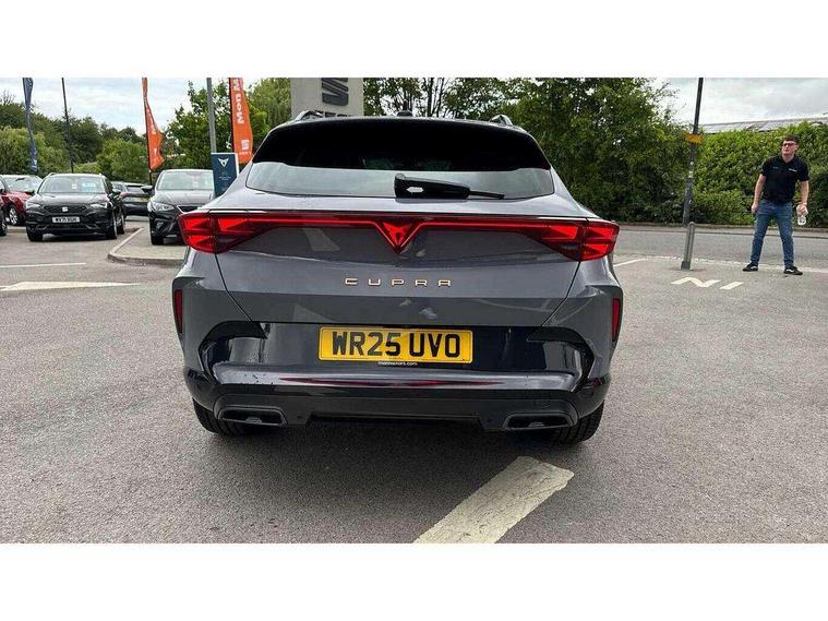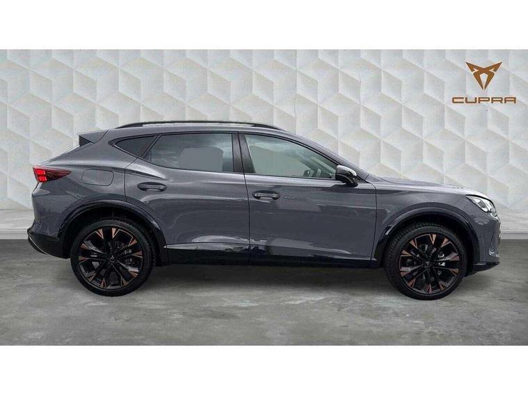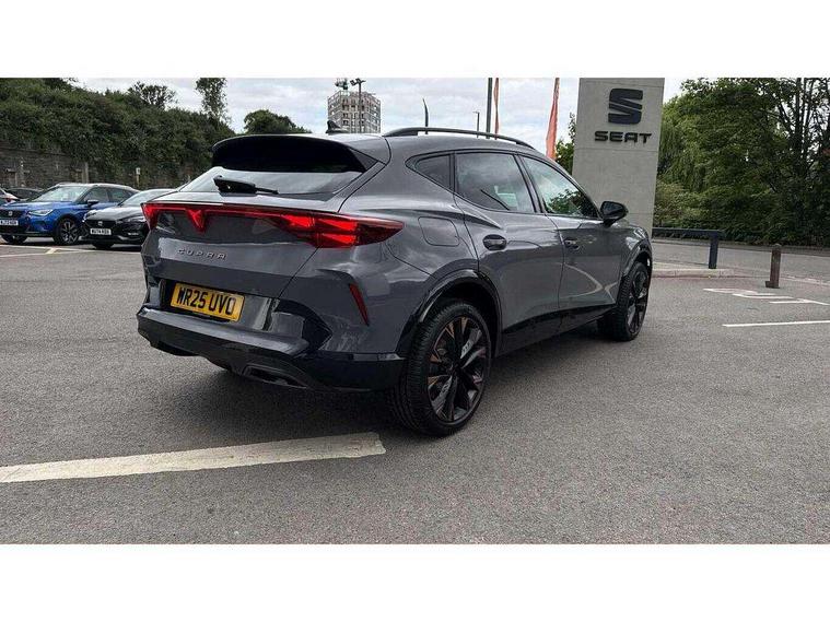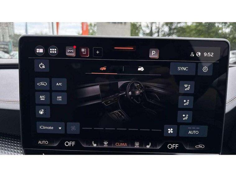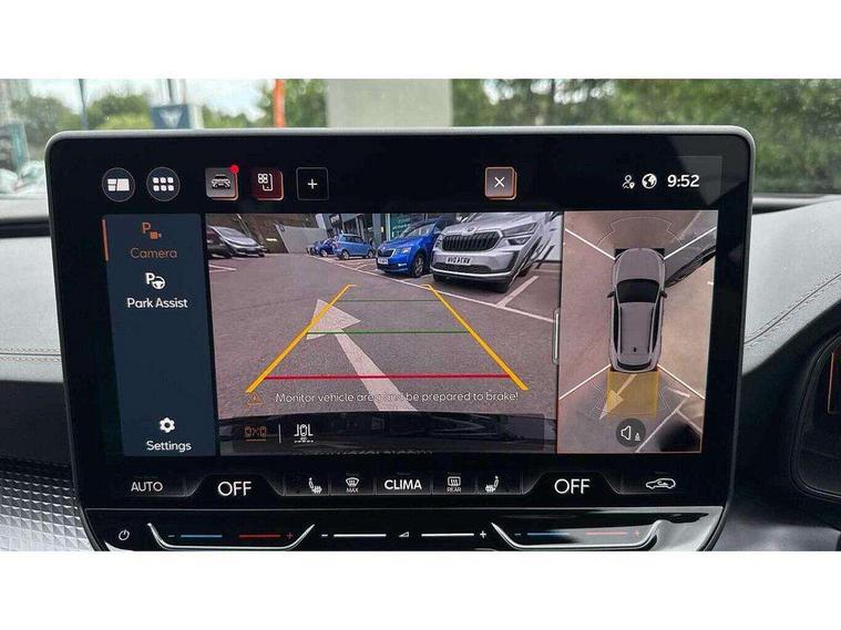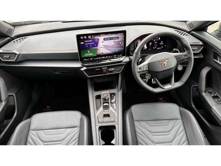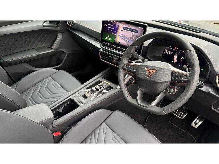 10.25" digital cockpit and configurable dashboard, Adaptive cruise control with follow-to-stop and speed limiter, Advanced driver alert system, Advanced lane assist with semi-automatic vehicle control in a medical emergency and traffic jam assist, Driving profile selection, Dynamic road sign display, Emergency steering support with turn assist, Forward collision warning with automatic braking, Full link phone integration, Intelligent park assist, Progressive steering, RPM, trip computer, outside temp gauge, instrument light brightness, low fuel warning light, lights on reminder, gearshift indicator, Service interval indicator, Side and exit assist, Start/stop system with regenerative braking, Top view camera, Virtual pedal and electric tailgate, Voice control system, Wired Android Auto, Wireless apple carplay, Wireless phone charger, CUPRA sport suspension, Electronic locking differential and dynamic traction support, 2 front and 2 rear USB type C sockets, Media system with navigation, 12.9" touchscreen display, voice control, DAB, steering wheel mounted controls, Auto dimming rear view mirror, Body colour door handles, Body coloured bumpers, Dark grey wing mirror, Daytime running light with automatic headlight control and coming home feature, Door panel ambient lighting, Dynamic headlight range control, Electric front/rear windows, Electrically adjustable heated and folding door mirrors with memory function, Gloss black roof rails and window surrounds, High beam assist, LED 3rd brake light, LED front fog lamps with cornering function, LED Headlights, LED Taillights with dynamic indicator, Rain sensing wipers, Rear diffuser with black simulated exhaust pipes, Rear fog lights, Rear side wing doors, Rear wash/wipe, Tinted rear windows, Welcome lights (within exterior mirror housing), 12V socket, 2 front and 2 rear reading lights, 3 seat bench in 2nd row, 60/40 split rear bench seat with armrest and mechanical seat release, Black headlining, Black interior roof lining, Cupra sports pedals, Dust/pollen filter, Electrically adjustable front seats with lumbar support and memory function, Front and rear head restraints, Front centre armrest, Heated front seats, Heated supersports multifunction leather steering wheel with satellite buttons and gear shift paddles, Height/reach adjust steering wheel, Illuminated aluminium doorsteps, Illuminated interior front door sills, Illuminated sunvisor with mirror, Isofix, Leather dashboard, door insert and side trim panel, LED smart wraparound lighting, PVC/Leather upholstery, Satellite steering wheel, Single front passenger seat, Storage pockets on rear of front seats, Three zone climate control with control panel in rear, Variable luggage/load compartment floor, 3 point seatbelts on all rear seats, ABS, Brake control system - ESC and brake booster, Child proof door locks, Driver and front passenger airbags with front passenger airbag de-activation, Electronic parking brake, Front and rear disc brakes, Front side curtain airbags, Hill hold control, Pre-crash front and rear seat belt tensioner, window closure and hazard lights, Public e-call, Seat belt reminder for front and rear seats, Tyre pressure monitoring system, Anti theft alarm system, KESSY Advanced - Keyless start, keyless entry with SAFELOCK, Locking wheel bolts, Copper and aluminium interior detailing,