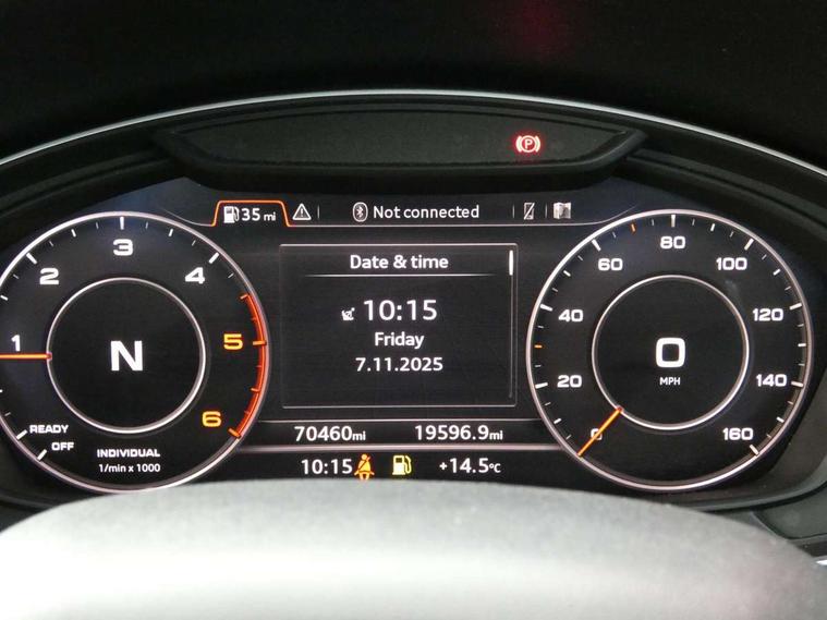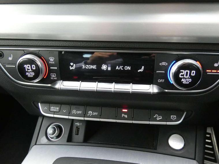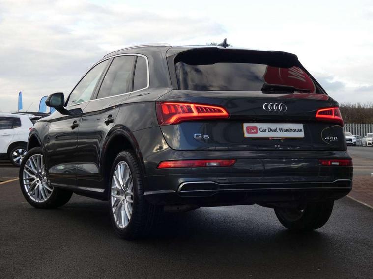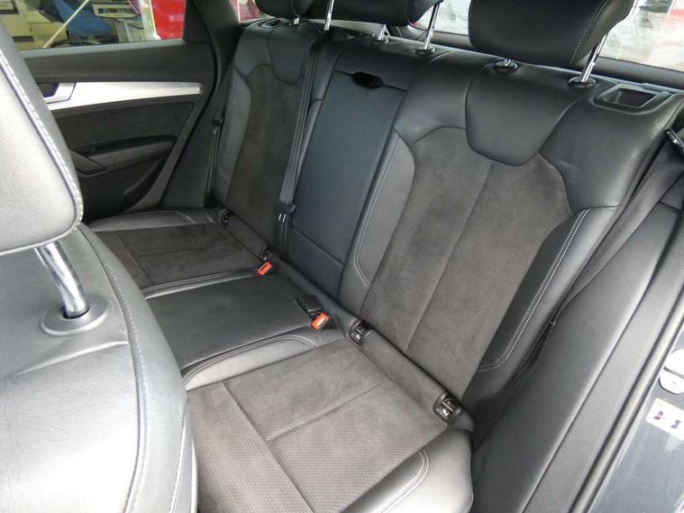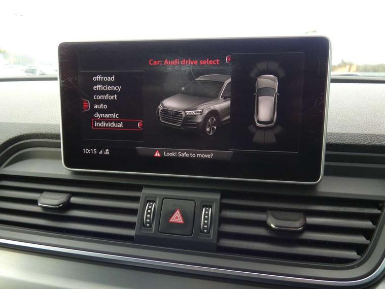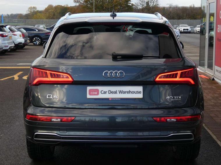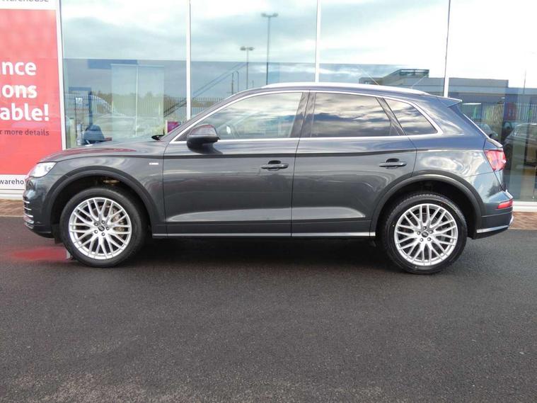 7" Colour driver information system, Audi drive select, Audi parking system plus with front and rear sensors, Audi smartphone interface, Electro - mechanical power assisted steering, MMI Navigation, Mobile telephone preparation - bluetooth interface, Power tailgate, Service interval indicator, Voice control system, Diesel particulate filter, 2x SD card slot, CD player, DAB Digital radio, MMI radio plus with 7" colour MMI screen and MMI controller, Acoustic windscreen, Air inlets in matt titanium black with blades in matt aluminium silver, Aluminium roof rails, Auto dimming rear view mirror, Automatic headlight levelling, Body colour bumpers, Body colour door mirrors, Body colour rear diffuser with matt aluminium silver surrounds, Body colour S Line side skirts, Body colour underbody protection, Chrome exhaust tailpipe, Front and rear electric windows, High beam assistant, Light and rain sensor for auto activation of lights and windscreen wipers, Loading sill protector in stainless steel, Privacy glass with front acoustic glazing, Rear wiper, S Line badges on the front wings, S Line front and rear bumpers/side air inlets and diffuser, S Line rear spoiler, Twilight grey matt radiator grille with matt aluminium horizontal chrome struts, 2 x USB charging port with aux input socket, 3 rear headrests, 3 zone climate control, 4 way electric lumbar support for driver and front passenger, 40:20:40 split folding rear seat with rear centre armrest, Black cloth headlining, Contrast stitching on seats, steering wheel and gear lever gaiter, Front centre armrest, Front sport seats with S embossed logo, Front/rear floor mats, Height adjustable front head restraints, Illuminated door sill trims with S logo, ISOFIX child seat mounting and top tether, Luggage compartment carpet, Perforated leather gearknob, Removable luggage compartment floor, Stainless steel pedals, Sunvisors with vanity mirrors, Tool kit, Trunk roller cover, High gloss pack - Q5, Non Smokers pack, 3 point seatbelts on all seats, 6 airbags - Driver, front passenger, curtain and side airbags, Electromechanical parking brake, Electronic stabilisation control including ABS, ASR and EDL, Front passenger airbag deactivation, Hill descent control, Hill hold assist, Multi collision brake assist, Pop-up bonnet for pedestrian protection, Pre sense city, Seat belt force limiter, Seatbelt monitoring, Tyre pressure warning, Warning triangle and first aid kit, Anti theft alarm, Anti-theft wheel bolts, Keyless Go access/ignition system, Remote central locking,