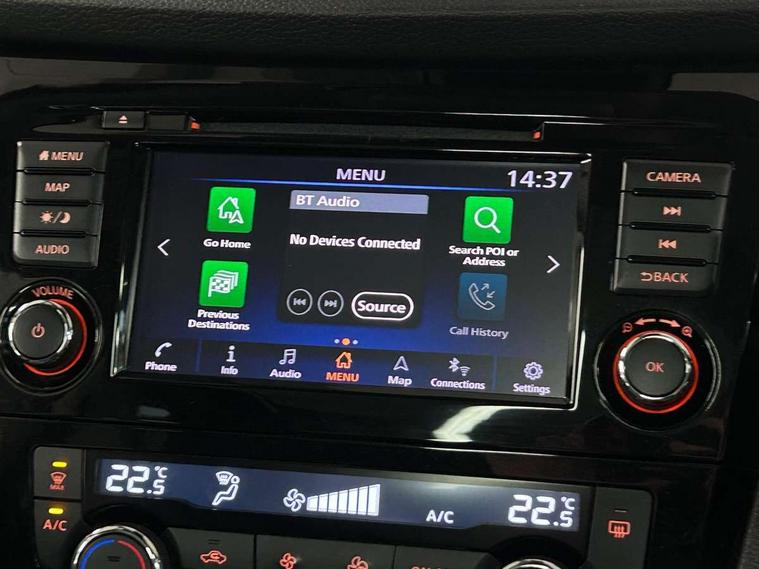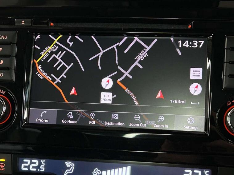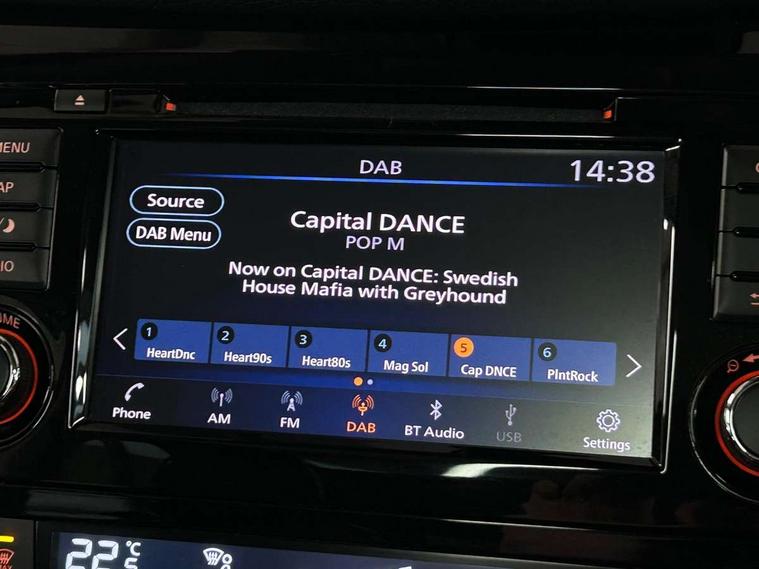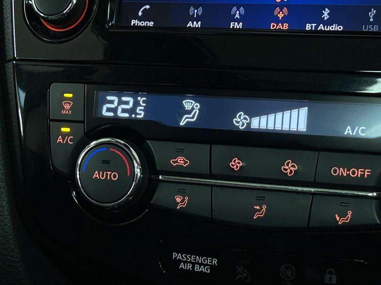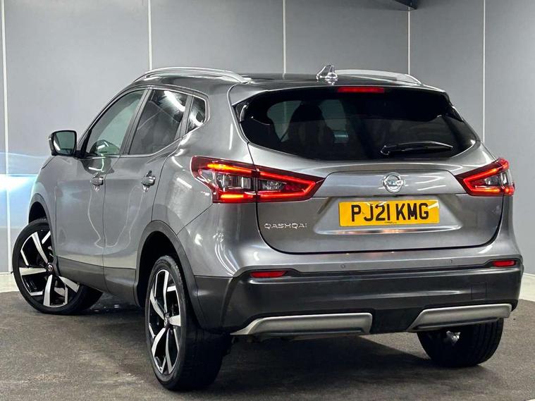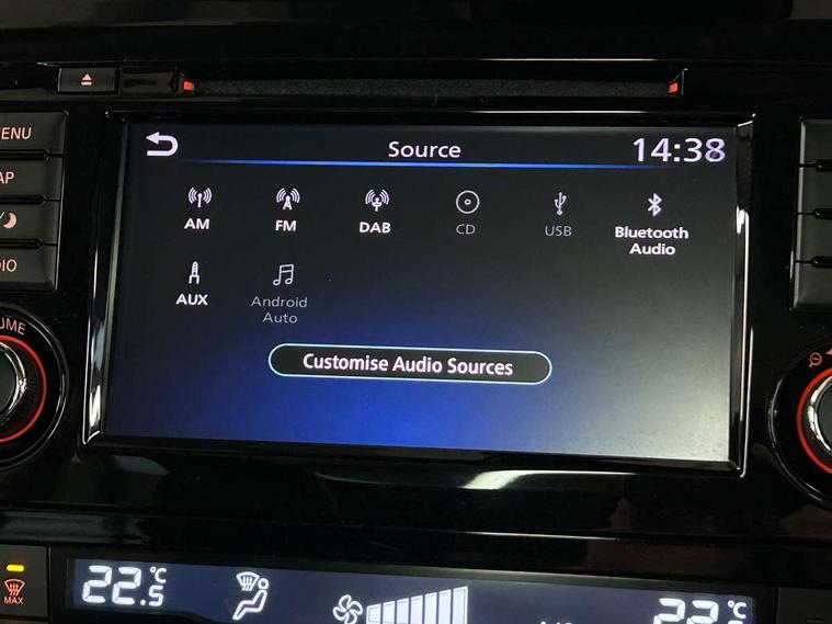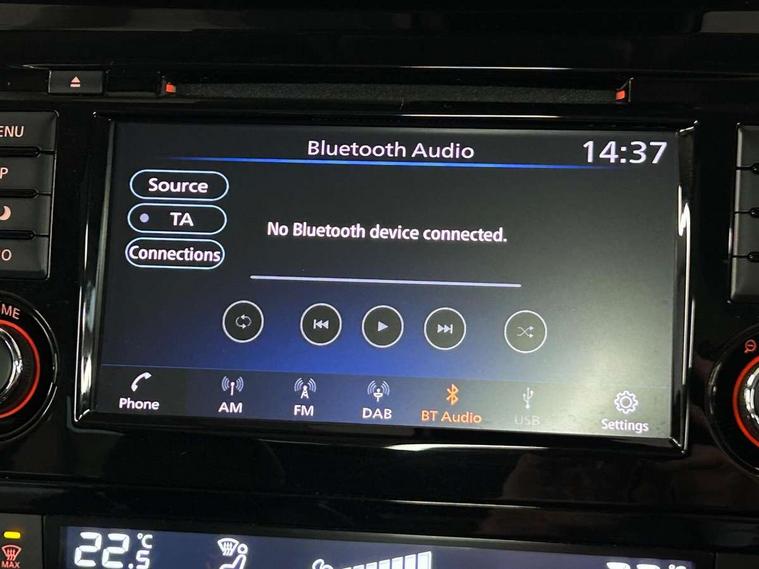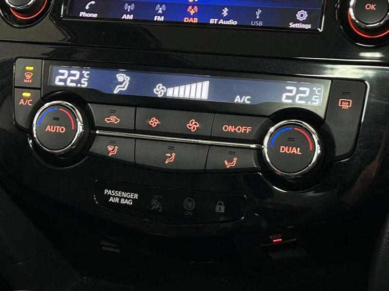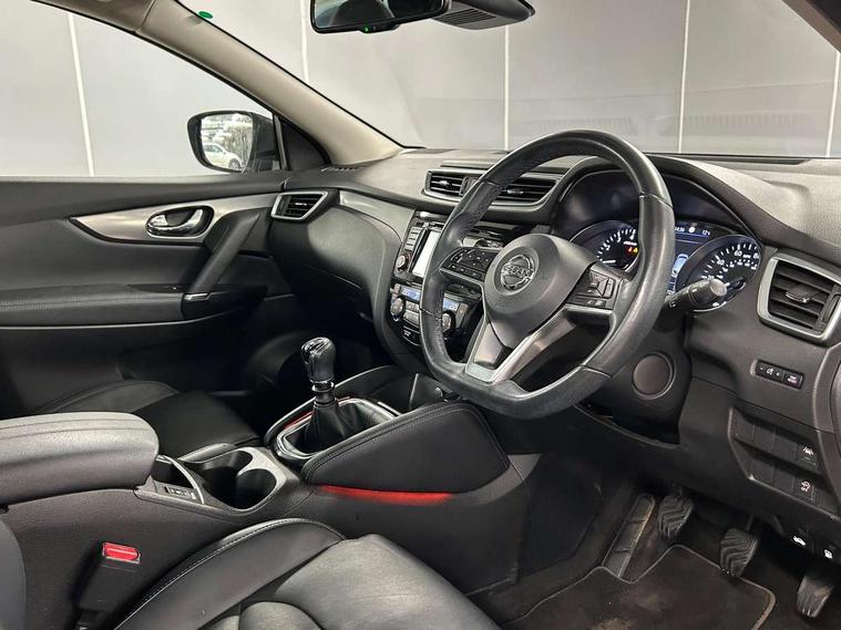 360 degree Intelligent around view monitor, Advanced drive assist display 5'' TFT coloured screen, Apple car play/Android Auto, Bluetooth connectivity, Cruise control + speed limiter, Electric speed sensitive power steering, Front parking sensors, Idle stop/start system, Intelligent park assist, Lane departure warning system, Nissan connect evo 7" touchscreen navigation and entertainment system, Normal or sport selectable steering, Outside temperature sensor, Premium Tomtom connected services, Push button starter, Rear parking sensors, Service interval indicator, Smartphone integration, Traffic sign recognition, Trip computer, Voice control system, Nissan chassis control (intelligent ride control, intelligent trace control), 6 speakers, AM/FM radio, CD audio system, Aux-in socket, DAB Digital radio, Steering wheel mounted audio controls, USB port, Anti dazzle rear view mirror, Auto wipers, Body colour bumpers, Body coloured door handles, Body coloured door mirrors, Chrome window surround, Daytime running lights dip function when turn signal applied, Electric adjustable heated door mirrors with memory, Electric folding door mirrors, Electric front and rear windows with one touch illuminated window controls, Front fog lights, High beam assist, Intelligent auto headlights, LED indicators in door mirrors, Matt silver roof rails, Privacy glass, Rear roof spoiler, Rear wiper with reverse link, Shark fin antenna, Silver rear styling plate, Underbody vortex generators, 2 X front 12v power sockets, 3 height adjustable rear headrests, 60/40 split folding rear seat, Ambient interior lighting, Ambient lighting around centre console, Boot lighting, Centre console storage box/armrest, Chrome interior door handles, Dual zone climate control, Electric 4-way lumbar support for drivers seat, Electrically adjustable driver seat with memory, Electrically adjustable passenger seat, Front and rear door pockets with bottle holders, Front and rear seat belt pre-tensioners with load limiters, Height adjustable front headrests, Individual rear seat reading lights, ISOFIX restraints on outer rear seats x2, Leather D shaped steering wheel, Leather gear lever, Leather knee pad, Luggage board system, Luxury floor mats, Manual height adjustable passenger seat, Manual lumbar support on passenger seat, Monoform front sport seats with plastic backboard, Nappa leather upholstery with 3D quilted, Parcel shelf stow function under luggage board, Pollen filter, Rear armrest with 2 cupholders, Synthetic leather wrapped door handle with contrasting stitching, Tilt/telescopic adjustable steering wheel, Glass roof pack - Qashqai, Heat package - Qashqai, LED pack - Qashqai, 6 airbags - Driver, front passenger, curtain and side airbags, ABS, ESP, EBD and brake assist, Auto hold function, Child locks on rear doors, Electronic parking brake, Front and rear seat belt warning, Height adjustable front seatbelts, Hill start assist, Intelligent emergency braking with pedestrian recognition, Passenger airbag deactivation system, Three 3 point rear seatbelts, Tyre pressure monitoring system, Anti-theft immobiliser, Intelligent Key, Remote central locking, Thatcham Cat.1 alarm, Carbon graphite dash trim, 19" Alloy wheels,