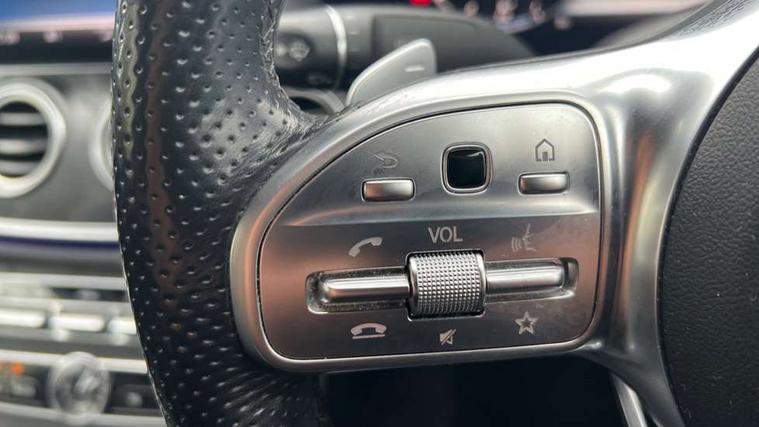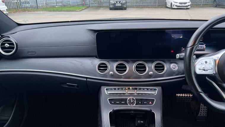 Active parking assist and 360 camera, Analogue clock, Attention assist, Blind spot assist, Boot release from drivers seat, Brake wear warning light, COMAND online HDD navigation with media interface with 12.3 inch colour display, WLAN/Wi-Fi hotspot, Car-to-X Communication, Direct steer speed sensitive steering, DYNAMIC SELECT with a choice of driving modes (ECO, Comfort, Sport, Sport+ and Individual), Mercedes connect me, Multi function trip computer, Outside temperature display, Remote boot release, Service indicator (ASSYST), Status display for rear seat belts in instrument cluster, Stop/start system, Touchpad with control wheel, Traffic sign assist, Wireless charging, 25 litre AdBlue tank, 66 litre fuel tank, Agility control sports suspension with selective damping system and lowered by 15mm, Diesel particulate filter, Incorrect fuelling protection, 2 USB ports in centre console, 2 USB ports in the rear, Burmester surround sound system with 13 speakers, DAB Digital radio, Adaptive brake lights, Aerial integrated in rear window, AMG bodystyling front and rear aprons and side skirts in polished aluminium, Body colour door handles, Chrome trim on the front bumper and high gloss black trim on the rear bumper, Electric panoramic glass sunroof, Electric windows with one touch opening/closing and obstruction sensors, Electrically adjustable and heated door mirrors, Front apron in high gloss black, Front LED fog lights with cornering function, High gloss black door mirrors, LED High Performance headlamps including integral LED daytime running lamps, LED rear lights, MULTIBEAM Intelligent Light System with Adaptive Highbeam Assist, Pre-installation for roof rail systems, Privacy glass (rear side windows and rear screen), Radiator grille with integral star and 2 louvres in high gloss black, Rain sensor windscreen wipers, Rear wiper, Top surround of side windows in polished aluminium, Visible twin exhaust tailpipe in bumper, Waistline trim strip in high gloss black, 3 spoke flat bottom AMG steering wheel with trimmed in black nappa leather, 40:20:40 split folding rear bench seat, Artico man-made leather/Microfibre Dinamica upholstery, Auto dual-zone climate control system, Auto Mercedes-Benz child seat recognition sensor, Black roof lining, Chrome door pins, Courtesy lights in rear grab handles with reading light functionality, Electric height/reach adjustable steering column, Floor mats with AMG lettering, Four way partially front electric seat adjustment, Front and rear door pockets, Front centre armrest with storage compartment, Front door sills with illuminated Mercedes lettering, Glasses compartment in overhead control panel, Head restraints for driver and front passenger (four-way adjustability)and in rear (two-way), Heated front seats, Interior lighting - 64 colour Ambient lighting, Interior rear light/integral reading lights, ISOFIX child seat attachment points two outer rear seats, Lockable/illuminated air conditioned glovebox, Sports pedals in brushed stainless steel with black rubber studs, Steering column electrically adjustable for height and reach, Steering wheel multifunction with gearshift paddles, Steering wheel touch control buttons for audio and onboard settings, Storage compartment with 12V socket in centre console, Sunvisors with illuminated vanity mirrors, Keyless Go comfort pack - E Class, Memory pack - E Class, Mirror pack - E Class, Parking package including 360 degree camera - E Class, Seat comfort pack - E Class, Stowage pack - E Class, 3x3 point rear seatbelts, Active bonnet, Active brake assist, Adaptive brake system with HOLD function and brake drying in the wet, Anti-lock braking system (ABS), Black seat belts, Childproof locks manually operated for rear doors and electrically operated for rear power windows, Driver and passenger side/thorax airbags, Driver/front passenger airbag, Drivers knee airbag, Electronic parking brake, Electronic Stability Programme, Hill hold assist, Hill start assist, Perforated front brake discs with "Mercedes-Benz" lettering, Pre-Safe anticipatory safety system, Seat occupancy sensor, Seatbelt warning, Tyre pressure monitoring system, Warning triangle and first aid kit, Window airbags, Alarm system/interior protection/immobiliser, Central locking with interior switch, automatic locking and crash sensor with emergency opening function, Chrome surround electric key, Black open pore ash wood dashboard and door trim + Centre console in black open pored ash wood, Contrast stitching, 20" AMG multi spoke light alloy wheels painted in high gloss black sheen finish - RVR, Run flat tyres,