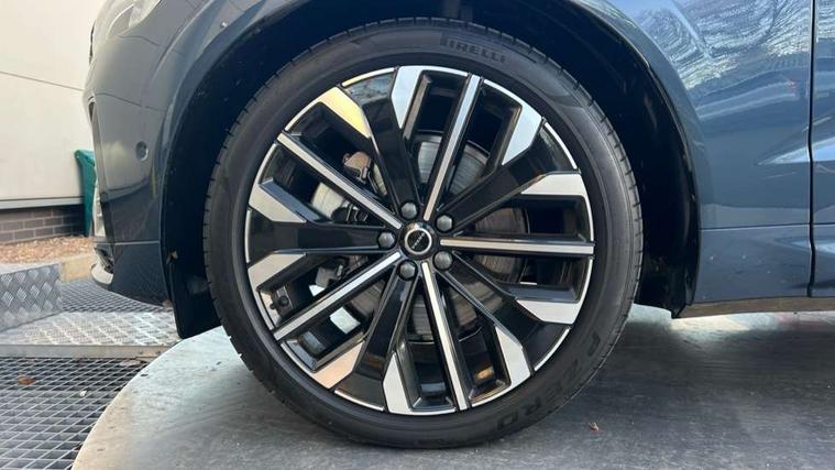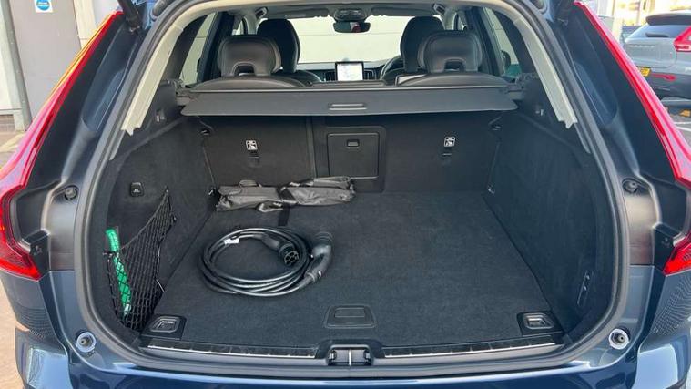11.2" centre console touch screen, 12.3" Progressive Driver Display, 360 degree surround view parking camera with side proximity sensors, Adaptive cruise control, Adjustable steering wheel force, Android auto (Wired), Apple carplay (wired), Bluetooth handsfree system, Drive mode settings, Driver alert control with lane keeping aid, Emergency services call system, Front and rear park assist, Google Automotive Services, Intelligent speed assistance, Oncoming Lane Mitigation, PAS, Power operated tailgate with handsfree opening and closing, Service interval indicator, Speed limiter, Speed sensitive steering, Trip computer, Volvo cars services with app, Volvo on call with App, Wireless/Inductive Mobile Phone Charging, 2 phase on board charger 6.4kW (home charging limited to 3.7kW), 6m 3 phase 16amp Type 2 / mode 3 charge cable, 8 speed automatic transmission with start/stop + manual change functions, Active four-C chassis + four corner adaptive damper with electronic rear air suspension, Electric rear axle drive, Recharging port located in nearside front wing, DAB Digital radio, Low speed exterior sound speaker, Premium Sound by Bowers and Wilkins, dirac live, dolby pro logic II surround sound, 14 speakers/1100W output and subwoofer, Steering wheel remote infotainment controls, Active bending headlights with adaptive shadow technology, Adaptive brake lights with high level LED brake lights, Auto dimming interior + exterior mirrors, Automatic headlight levelling system, Automatic LED Headlights + Active high beam incorporating daytime running lights, Dark tinted windows for rear side windows and cargo area, Electric adjustable/heated/auto power folding door mirrors, Electric front+rear windows, Front aluminium tread plates, Headlight cleaning system, High gloss black door mirrors and window surround, High gloss black front and rear bumper decoratives, High gloss black mesh front grille with high gloss black surround, Home safe and approach lighting, Integrated roof rails in high gloss black, Power glass tilt and slide panoramic sunroof with sun curtain, Puddle lights, Rain sensor with automatic windscreen wiper activation, Rear side wing doors, Rear wiper, Roof antenna, Roof spoiler, Tinted windscreen, Visible VIN plate, 12V socket in front tunnel console and luggage compartment, 2 zone electronic climate control with Clean zone air quality system and pollen filter, 3 seat bench in 2nd row, A-pillar parking ticket holder, Air purifier particulate matter (PM) 2.5 filter, B Pillar ventilation, Bright metal luggage scuff plate, Centre console cupholders and storage, Charcoal floor mats, Front and rear courtesy lights, Front and rear door pocket illumination, Front cupholder illumination, Front footwell illumination, Front reading lights, Front seat cushion extensions, Glovebox compartment with illumination, Head restraints for all seats, Heated front seats, Heated steering wheel, Height/reach adjustable steering column, Illuminated luggage compartment, Illuminated vanity mirrors + ticket holder, Inner door release handle illumination, ISOFIX attachment on outer rear seats, Load cover, Load protection net, Multi directional lumbar support, Power driver seat with memory + exterior mirrors memory, Power folding rear headrests, Power passenger seat with memory, Rear armrest with cupholder, Rear footwell and front and rear side step illumination, Rear reading lights, Rear seat concealed storage, Single front passenger seat, Tailgate illumination and ambient door lighting, Underfloor stowage compartment, Versatile split folding rear seat - 60/40, Driver assist pack without Adaptive cruise control - XC60, 5 three point seatbelts, City safety with steering support with Pedestrian + cyclist + front collision warning with full auto brake and rear auto brake, Drivers knee airbag, Dual stage driver/passenger airbags, Electronic parking brake with auto hold, First aid kit, Front seats SIPS airbags, Hill descent control - Off-road drive mode, Hill start assist, IC (Inflatable Curtains) - Full Length, Passenger airbag cut-off device, Power child locks on rear doors, Run off Road Mitigation, Run off Road Protection, Seatbelt reminder and pretensioners, SIPS (Side Impact Protection System), Slippery road and hazard light alert, Stability and Traction Control with Spin control, Engine Drag Control and Corner Traction Control, Tyre pressure monitoring system, Vehicle deceleration control with Anti-lock Brake System, Electronic Brake Distribution and Emergency Brake Assist, Warning triangle, WHIPS whiplash protection system - front, Anti-theft alarm including immobiliser/volume sensor + level sensor, Key integrated remote control central locking + fuel flap with deadlocking system and auto open/close power windows, Keyless Drive (includes Keyless Entry and Keyless Start), Locking wheel nuts, Private locking for tailgate, Tailored instrument panel with contrast stitching, Summer tyres, Tyre sealant kit + 12v compressor,