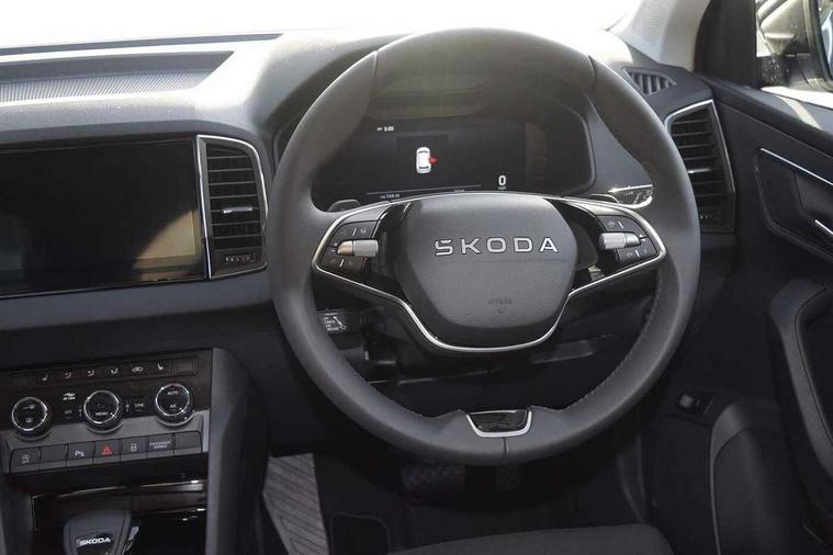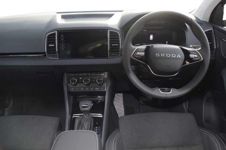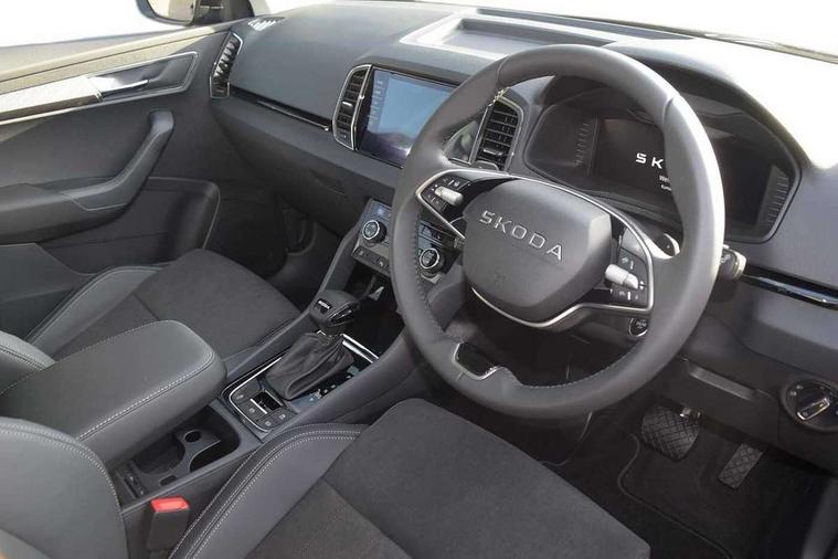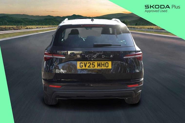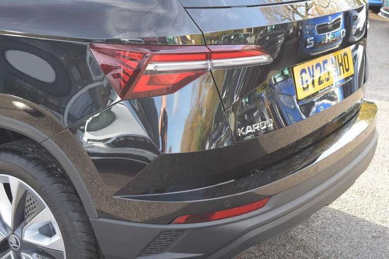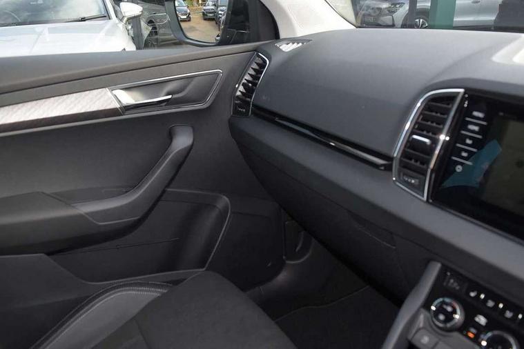 Advanced driver attention and drowsiness monitor, Drive Mode Selection including ECO function, Electro-mechanical PAS, Emergency services call system, Outside temperature gauge, Sensor for driver assistance systems, Service interval indicator, SmartLink wireless for Apple and wired for Android, Start/stop system with regenerative braking, Traffic sign recognition, USB C Port x 2 in front centre console, Virtual Cockpit - 10.25" digital display, Virtual pedal with electrically operated boot door, Wireless smartphone charging, DAB radio with Bluetooth, USB connection, Acoustic glass, Aero front windscreen wipers with intermittent function, Auto dimming rear view mirror with light and rain sensors, Black electric window control buttons, Body colour door mirrors and handles, Electric front and rear windows with child proof lock, Extended rear roof spoiler, Heated rear windscreen, LED daytime running lights, LED rear lights with high functionality welcome effect and dynamic indicators, Light assistant (coming/leaving home/tunnel light), Plastic scuff plates in door apertures, Privacy glass, Rear side wing doors, Rear window wiper with washer system and intermittent control, Safety reflectors on front doors, Third brake light, Unique dark chrome design logo on alloy wheels, 1.5 litre bottle holders in driver and front passenger door panels, 12V socket in boot, 12v socket in front centre armrest with storage compartment and rear air vents, 2 spoke leather heated multifunction steering wheel with DSG paddles, 2 x Tablet holder, 3 rear height adjustable headrests, 3 seat bench in 2nd row, 4 foldable roof handles with rear coat hooks, Black floor carpet, Cargo elements in boot, Chrome inner door handles, Decorative door sills with KAROQ badging, Foldable hooks in the boot, Front head restraints, Height adjustable front three point seats belts with tensioners, Height/reach adjust steering wheel, Ice scraper, Illuminated glovebox, Illuminated luggage compartment, Interior noise suppression, Isofix child seat preparation for front passenger seat, Isofix child seat preparation outer rear, Manual lumbar support for front seats, Pearl grey interior ceiling, Pen holder, Pollen filter, Rear boot cover, Rear package tray, Rear reading lights, Rubbish bin door, Safety vest holder, Single front passenger seat, Skoda lettering on steering wheel, Storage box in upper central dashboard closed, Sunvisors with illuminated vanity mirrors, Textile floor mats, Ticket holder, Columbus pack - Karoq, Design Pack - Karoq, Non Smokers pack, Parking pack - Karoq, Automatic door unlocking in case of crash, Automatic fuel cut off in case of crash, Driver airbag, Electronic parking brake with auto hold function, Emergency rear braking signal, ESC (incl. ABS+MSR+ASR+EDS+HBA+DSR+RBS+MKB), Front side airbags, Head airbags, Hill hold control, Knee airbags, Passenger airbag with switch-off function, Pedestrian monitor, Power operated child safety locks, Seatbelt reminder signalisation and pretensioner for all seats, Three point seatbelts rear, Two tone horn, Tyre pressure monitor, Alarm with interior monitoring, back up horn and tilt sensor with safe function, Electronic engine immobiliser, Keyless entry and start/stop, Remote central locking with 2 remote folding keys, Black centre console, Chrome framed air vents, Satin black dashboard, Anti-theft wheel bolts protection, Breakdown and tool kit,