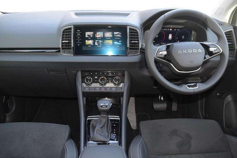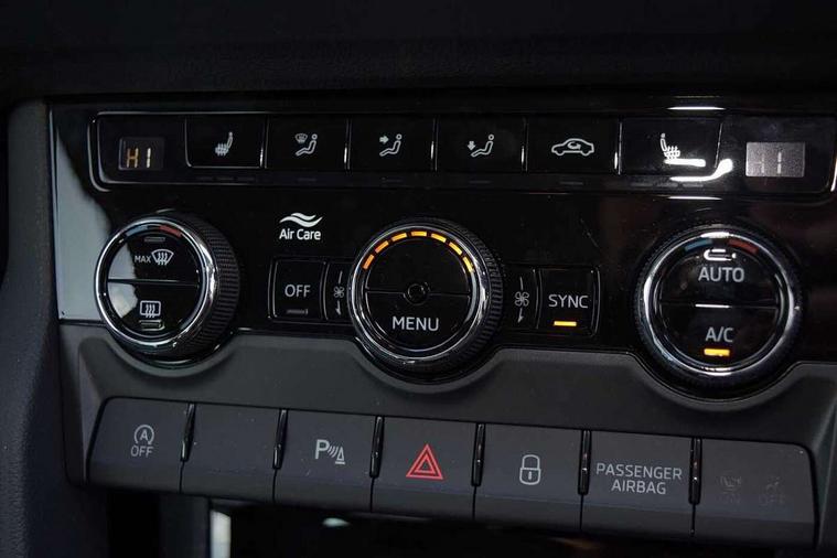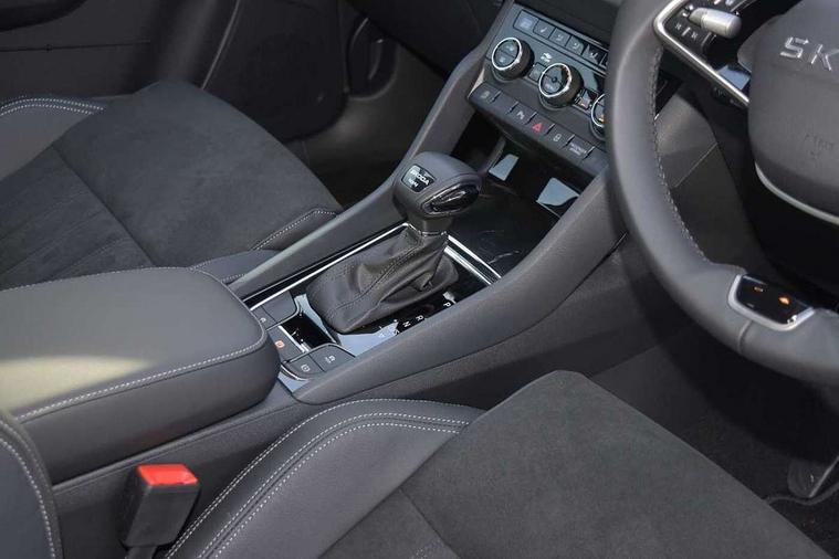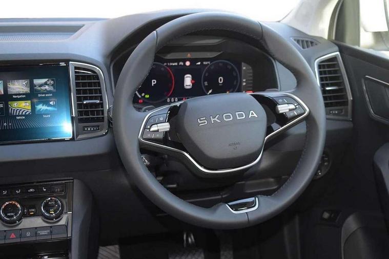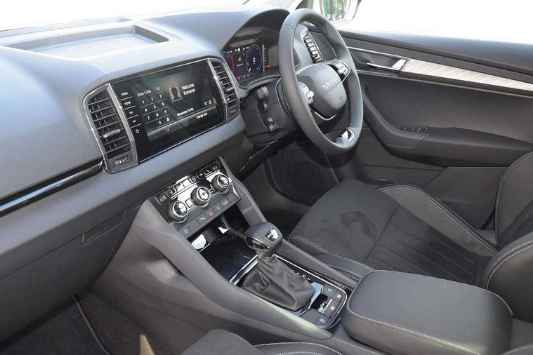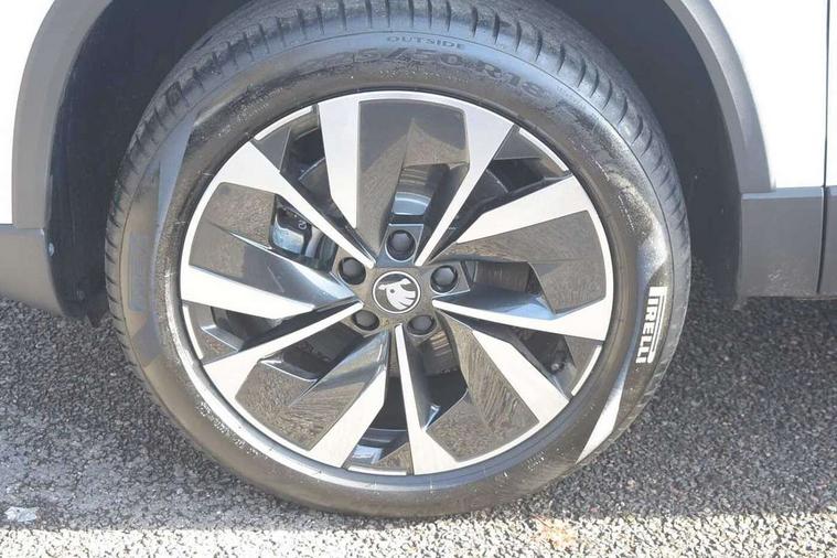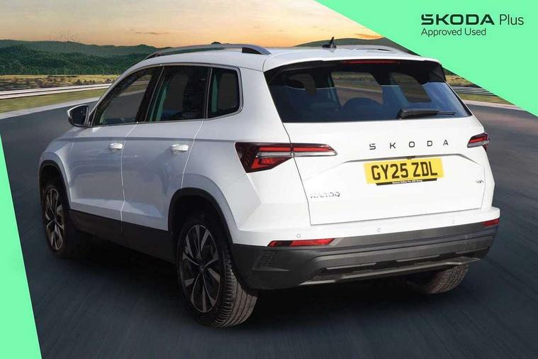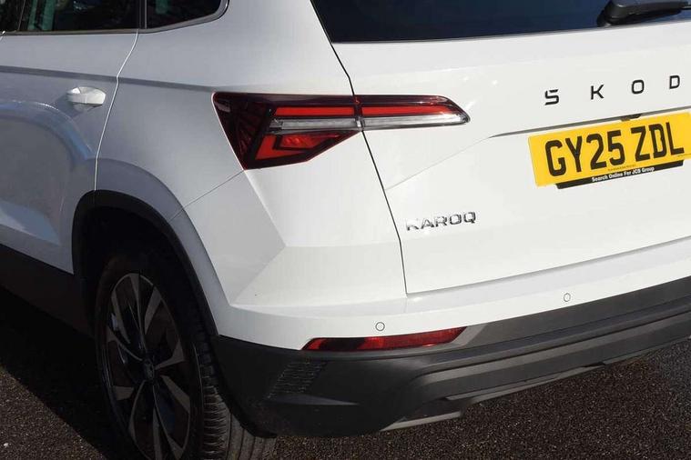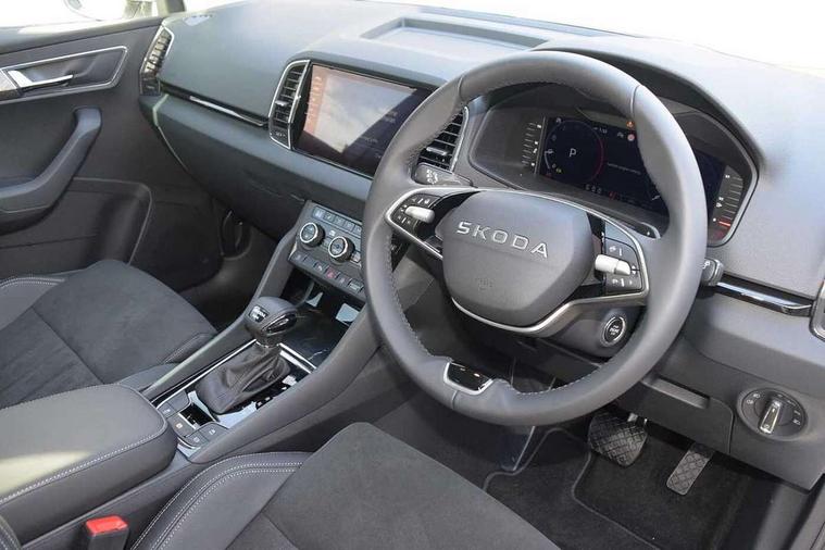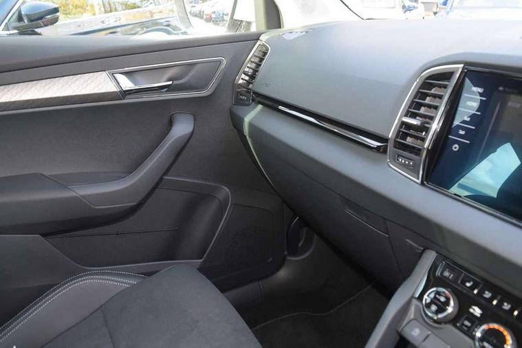 Advanced driver attention and drowsiness monitor, Drive Mode Selection including ECO function, Electro-mechanical PAS, Emergency services call system, Outside temperature gauge, Sensor for driver assistance systems, Service interval indicator, SmartLink wireless for Apple and wired for Android, Start/stop system with regenerative braking, Traffic sign recognition, USB C Port x 2 in front centre console, Virtual Cockpit - 10.25" digital display, Virtual pedal with electrically operated boot door, Wireless smartphone charging, DAB radio with Bluetooth, USB connection, Acoustic glass, Aero front windscreen wipers with intermittent function, Auto dimming rear view mirror with light and rain sensors, Black electric window control buttons, Body colour door mirrors and handles, Electric front and rear windows with child proof lock, Extended rear roof spoiler, Heated rear windscreen, LED daytime running lights, LED rear lights with high functionality welcome effect and dynamic indicators, Light assistant (coming/leaving home/tunnel light), Plastic scuff plates in door apertures, Privacy glass, Rear side wing doors, Rear window wiper with washer system and intermittent control, Safety reflectors on front doors, Third brake light, Unique dark chrome design logo on alloy wheels, 1.5 litre bottle holders in driver and front passenger door panels, 12V socket in boot, 12v socket in front centre armrest with storage compartment and rear air vents, 2 spoke leather heated multifunction steering wheel with DSG paddles, 2 x Tablet holder, 3 rear height adjustable headrests, 3 seat bench in 2nd row, 4 foldable roof handles with rear coat hooks, Black floor carpet, Cargo elements in boot, Chrome inner door handles, Foldable hooks in the boot, Front head restraints, Height adjustable front three point seats belts with tensioners, Height/reach adjust steering wheel, Ice scraper, Illuminated glovebox, Illuminated luggage compartment, Interior noise suppression, Isofix child seat preparation for front passenger seat, Isofix child seat preparation outer rear, Manual lumbar support for front seats, Pearl grey interior ceiling, Pen holder, Pollen filter, Rear boot cover, Rear package tray, Rear reading lights, Rubbish bin door, Safety vest holder, Single front passenger seat, Skoda lettering on steering wheel, Storage box in upper central dashboard closed, Sunvisors with illuminated vanity mirrors, Textile floor mats, Ticket holder, Columbus pack - Karoq, Design Pack - Karoq, Non Smokers pack, Parking pack - Karoq, Automatic door unlocking in case of crash, Automatic fuel cut off in case of crash, Driver airbag, Electronic parking brake with auto hold function, Emergency rear braking signal, ESC (incl. ABS+MSR+ASR+EDS+HBA+DSR+RBS+MKB), Front side airbags, Head airbags, Hill hold control, Knee airbags, Passenger airbag with switch-off function, Pedestrian monitor, Seatbelt reminder signalisation and pretensioner for all seats, Three point seatbelts rear, Two tone horn, Tyre pressure monitor, Alarm with interior monitoring, back up horn and tilt sensor with safe function, Electronic engine immobiliser, Keyless entry and start/stop, Remote central locking with 2 remote folding keys, Black centre console, Chrome framed air vents, Satin black dashboard, Anti-theft wheel bolts protection, Breakdown and tool kit,