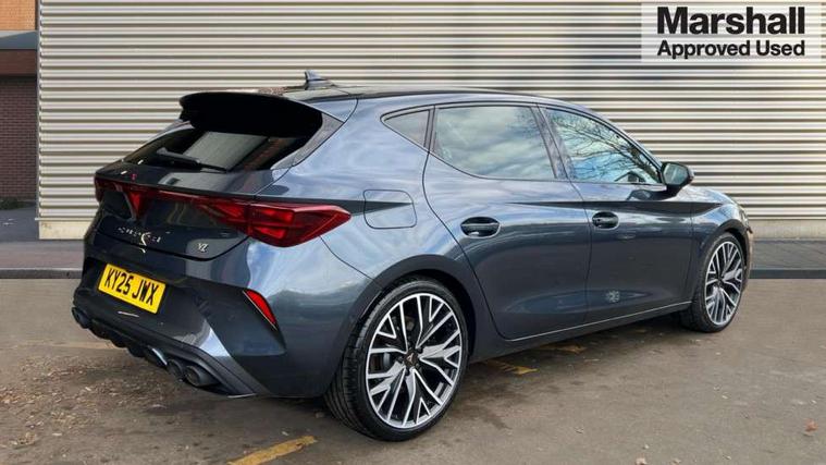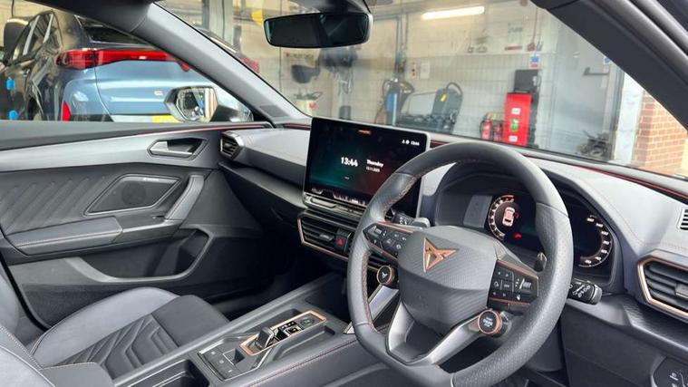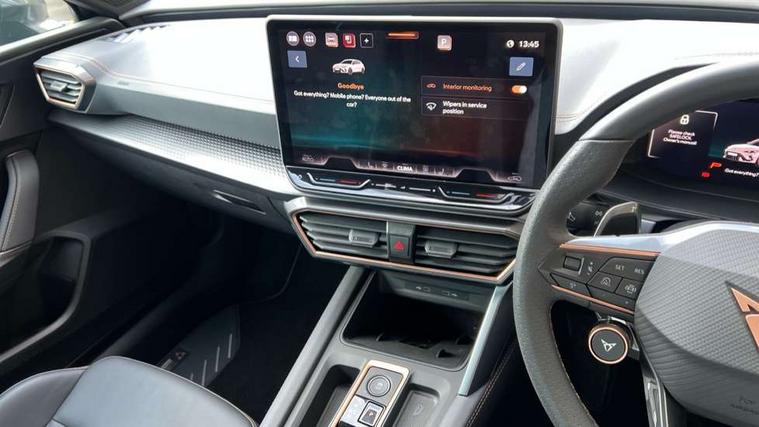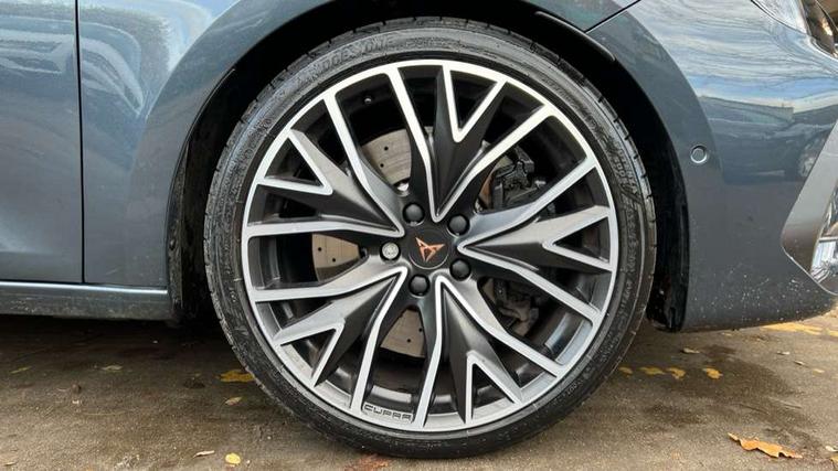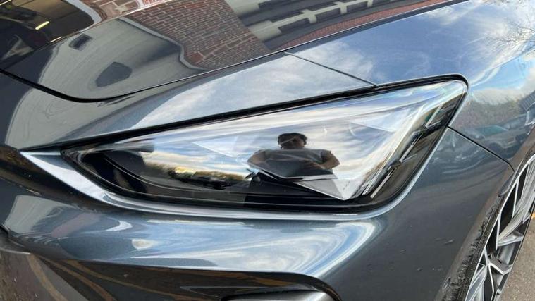 Adaptive cruise control with follow-to-stop and speed limiter, CUPRA drive profile selection with (Comfort/Sport/Individual), throttle response and gearshift mode, Digital cockpit, Dynamic road sign display, E-call, Four x USB Type C ports (2 in front and 2 in rear), Front and rear parking sensors, Front assist with forward collision warning braking reaction to vehicles, pedestrians and cyclists, Full link smartphone integration with Mirror Link, wireless Apple CarPlay and wired Google Android Auto, Intelligent park assist, Lane change assist with emergency assist, Lockable tailgate, Rear view camera, RPM, trip computer, outside temp gauge, instrument light brightness, low fuel warning light, lights on reminder, gearshift indicator, Service interval indicator, Side and exit assist, Start/stop system with regenerative braking, Wireless phone charger, Auxiliary input socket, Auto dimming rear view mirror, Body colour door handles, Body coloured bumpers, Cupra sports bumpers, Dark tinted rear windows, Electric front/rear windows, Electrically adjustable, heated and folding door mirrors, High beam assist, LED front fog lamps with cornering function, LED rear fog lamp, Matrix LED Headlights with variable light distribution, Matrix Beam and Dynamic headlight range control, Rain sensing wipers, Rear side wing doors, Rear wash/wipe, Separate daytime running light with automatic headlight control and coming home feature, Third brake light, Welcome light with logo projector in door mirrors, 12v power supply in centre console, 3 seat bench in 2nd row, 5 headrests, 60/40 split rear bench seat with armrest, Ambient lighting (glovebox, footwell, ambient lighting multicoloured), Black headlining, Cupra sports pedals, CUPRA Supersports, heated steering wheel with satellite buttons, Electrically adjustable driver seat and lumbar support with memory function + manually adjustable passenger seat, Folding boot cover, Front and rear reading lights X 4, Front centre armrest, Heated front seats, Height/reach adjust steering wheel, Illuminated interior front door sills, Interior wraparound lighting, ISOFIX points in outer rear seats with top tether anchorage points, Leather upholstery, Single front passenger seat, Storage pockets on rear of front seats, Sunvisors with illuminated mirror, Three zone climate control, Dynamic and comfort pack - Leon Cupra, Media system plus with 12.9" display + navigation pack - Leon Cupra, 3 point seatbelts on all rear seats, ABS, Brake control system - ESC and brake booster, Child proof door locks, Cupra black brake calipers, Driver and front passenger airbags with front passenger airbag de-activation, front side and curtain airbags, Electronic parking brake, Hill hold control, Pre-crash front and rear seat belt tensioner, window closure and hazard lights, Rear disc brakes, Seat belt reminder for front and rear seats, Tiredness recognition system, Tyre pressure monitoring system, Anti theft alarm system with interior monitoring in cab, backup horn and towing protection, KESSY Advanced - Keyless start, keyless entry, Locking wheel bolts, Chrome and copper interior detailing, 19" Mistral machined R black and silver alloy wheel with 91Y tyres, Breakdown kit, Tool kit,