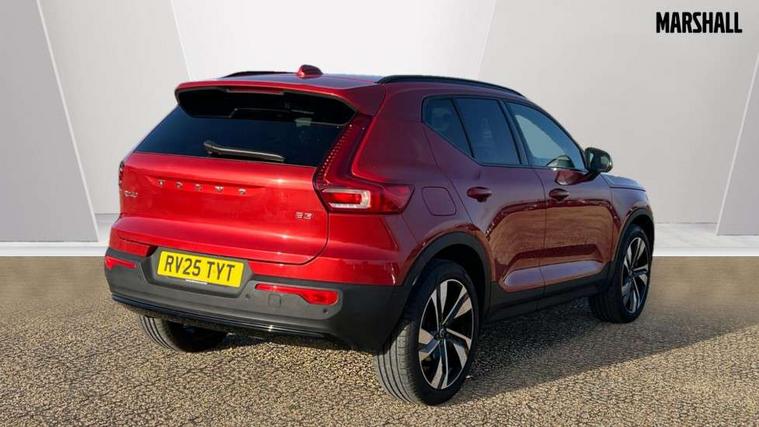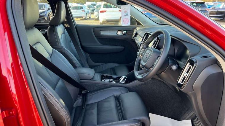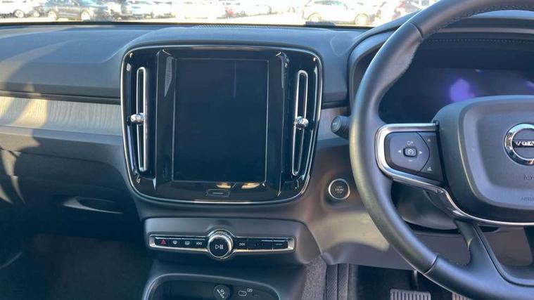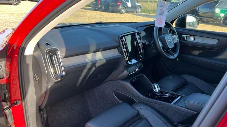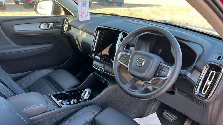 12.3" Progressive Driver Display, 360 degree surround view parking camera with side proximity sensors, 9" centre console portrait touch screen, Adjustable steering wheel force, Android auto (Wired), Apple carplay (wired), Bluetooth handsfree system, Driver alert control, Driver assistance (pilot assist and adaptive cruise control), Driver awareness - Blind spot information system with steer assist, cross traffic alert with autobrake and rear collision warning and mitigation, E-call, Front park assist, Google automotive services - Enabled entertainment apps, navigation with google maps, voice recognition with google assistant, Hands free power tailgate, Intelligent speed assistance, Lane keeping aid, Oncoming Lane Mitigation, Rear park assist, Speed sensitive steering, Volvo cars services with app - Driving journal, emergency and breakdown call, engine remote start, remote door locking/unlocking and vehicle dashboard, Wireless/Inductive Mobile Phone Charging, Automatic transmission with start/stop and manual change functions, Dynamic chassis, DAB Digital radio, Premium Sound by Harman Kardon, Dolby Pro Logic II Surround Sound, Dirac Unison, 12 speakers/600W and subwoofer, Steering wheel mounted remote controls, Active bending pixel LED headlights with adaptive shadow technology, Active high beam incorporating daytime running lights, Adaptive brake lights with high level LED brake lights, Auto dimming feature for exterior door mirrors, Auto dimming interior mirror, Automatic headlamp levelling, Dark tinted windows - rear side windows and rear screen, Front aluminium tread plates, Front and rear electric windows, Headlight cleaning system, High gloss black front and rear skid plate, High gloss black front bumper deco, High gloss black mesh front grille with high gloss black surround, High gloss black window trim, Home safe and approach lighting, Integrated roof rails in high gloss black, LED front fog lights with cornering function, Power glass tilt and slide panoramic sunroof with sun curtain, Puddle lights, Rain sensor with automatic windscreen wiper activation, Rear side wing doors, Rear wiper, Roof antenna, Roof spoiler, Visible VIN plate, 12V socket in front tunnel console and luggage compartment, 2-Zone electronic climate control with CleanZone air quality system and pollen filter, 3 seat bench in 2nd row, 3 Spoke tailored steering wheel with chrome trim, 60/40 versatile split folding rear seat, Centre console cupholders and storage, Flexible load floor and grocery bag holder, Floor mats, Front cabin courtesy lights, Front door pocket, front cupholder, ambient front door, rear reading, rear courtesy, instrument panel and tailgate lighting, Front footwell illumination, Front headrests, Front reading lights, Front seat cushion extensions, Front side step illumination (under door), Glovebox bag hook, Heated front seats, Height/reach adjustable steering column, High gloss centre tunnel deco, Illuminated glovebox, Illuminated luggage compartment, Illuminated vanity mirrors + ticket holder, Integrated waste bin, Isofix attachments on outer rear seats, Load cover, Load protection net, Multi directional lumbar support for driver and passenger seat, Power driver seat with memory + exterior mirrors memory, Power folding rear headrests, Power passenger seat, Rear armrest with cupholders, Single front passenger seat, Underfloor cargo storage, Climate pack without heated front seats - XC40, 3x3 point rear seatbelts, City safety with steering support with Pedestrian + cyclist + front collision warning with full auto brake and rear auto brake, Driver and passenger airbags, Drivers knee airbag, Electronic parking brake with auto hold, First aid kit, Front and outer rear seatbelt reminder and pretensioners, Front seats SIPS airbags, Hill descent control, Hill start assist, Inflatable curtain, Passenger airbag cut-off device, Power child locks on rear doors, Road sign information display, Run off Road Protection, SIPS (Side Impact Protection System), Slippery road and hazard light alert, Stability and Traction Control with Spin control, Engine Drag Control and Corner Traction Control, Tyre pressure monitoring system, Vehicle deceleration control with Anti-lock Brake System, Electronic Brake Distribution and Emergency Brake Assist, Warning triangle, WHIPS whiplash protection system - front, 2 x Key integrated remote control central locking including with deadlocking system and auto open/close windows and sunroof, Anti-theft alarm including immobiliser/volume sensor + level sensor, Keyless drive includes keyless entry and keyless start, Locking wheel nuts,