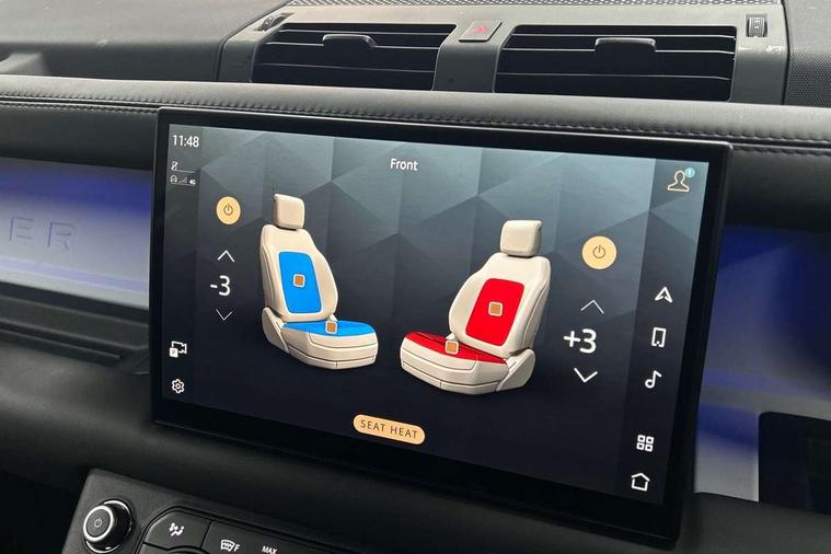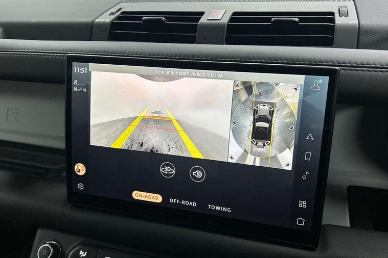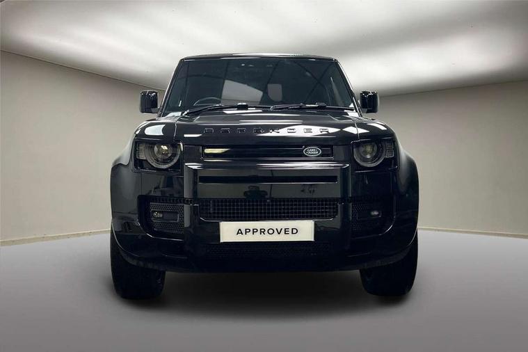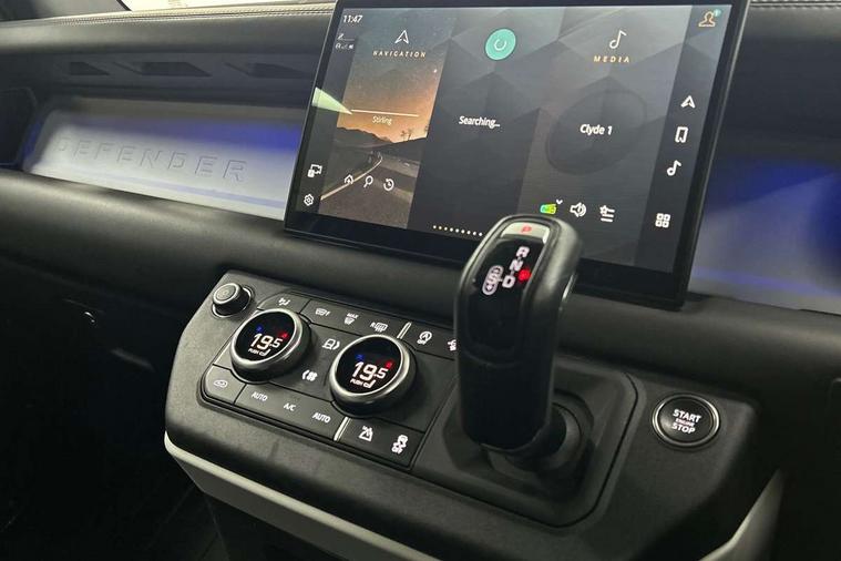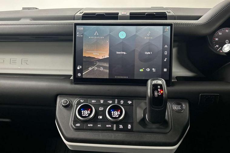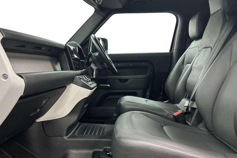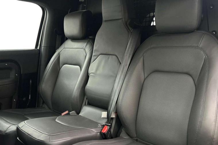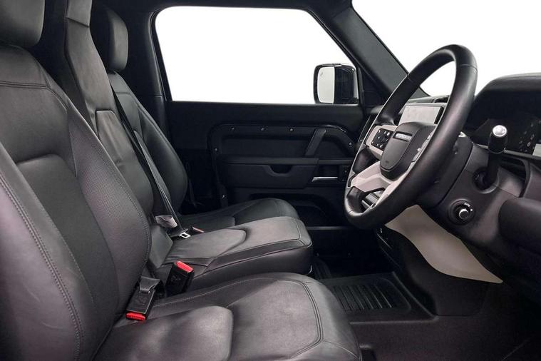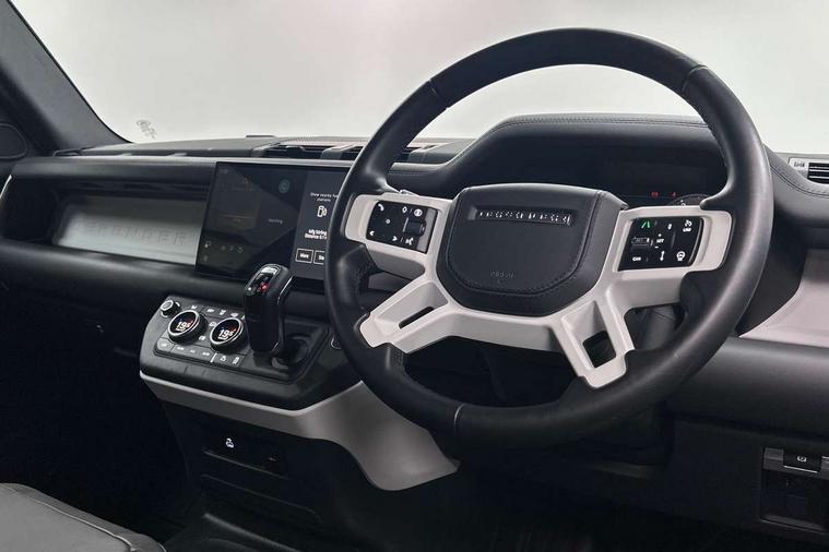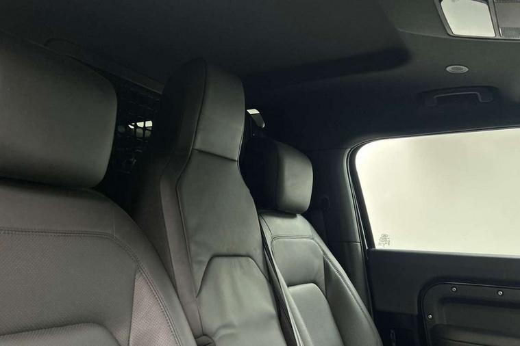 Customer Configurable Autolock, 11.4" touchscreen, 360 parking aid, 3D Surround Camera with 360 View, 180 Rear View, Front Traffic Detection, Forward Vehicle Guidance, Tow Hitch Assist and clear sight Ground View, Adaptive cruise control, Blind spot assist, Brake Hold, Driver condition monitor, Electric power assisted steering (EPAS), Interactive Driver display, Lane keep assist, Low traction launch, Pivi pro connected, Rear collision monitor, Rear traffic monitor, Traffic sign recognition adaptive speed limiter, Trip computer, Tyre pressure monitor, Android Auto, Apple CarPlay, DAB Radio (Digital Audio Broadcasting), Meridian 280W sound audio system with 7 speakers with subwoofer, Alpine lights, Assisted tailgate, Automatic headlight levelling, Automatic headlights and rain sensitive front wipers, Body coloured bonnet, Body coloured exterior Utility Panel, Centre high mounted stop light, Electric heated/power fold door mirrors with approach lights and auto dimming driver side, Electric windows with one touch open/close and anti-trap, Follow me home lighting, Front fog lights, Heated rear window with timer, Heated windscreen, LED tail light, Matrix LED headlights with signature DRL, Privacy glass, Puddle lights, Rear fog lights, Rear wash wiper, Side-hinged tailgate, Soft close tail door, Standard roof, Standard tail door, Standard tread plates, Additional lashing points, Black exposed rear recovery eyes, Configurable cabin lighting, Dual zone climate control, Durable rubber cabin flooring, Electric adjustable steering column, Footwell lights, Front jump seat and folding front centre armrest, Full height bulkhead behind row 1 seats, Glovebox storage, Heated steering wheel, High sided rubber mats, Leather steering wheel, Loadspace cover, Loadspace hooks, Loadspace rubber mat, Overhead stowage for sunglasses, Rear centre headrest, Rear reading light, Sunvisors with illuminated vanity mirrors, Upgraded loadspace LED lighting, Online pack - Defender with data plan, Brake pad wear indicator, Electronic traction control, Emergency braking, Front airbags, with passenger seat occupant detector, Power operated child locks, Remote for (e-Call, Optimised assistance call, InControl app, Climate, beep and flash and door), Seat belt reminder, Intrusion sensor, Keyless entry system, Locking wheel nuts, Spare wheel lock, 8 speed automatic transmission, ABS and EBA, All wheel drive, CBC - (Cornering brake control), Dynamic stability control, Electronic brake force distribution, Electronic park brake, Gradient acceleration control, Hill Descent Control, Hill start assist, Particulate filter (DPF), Push button start, Roll stability control, Trailer stability assist, Twin speed transfer box (high/low range), Extended leather upgrade,