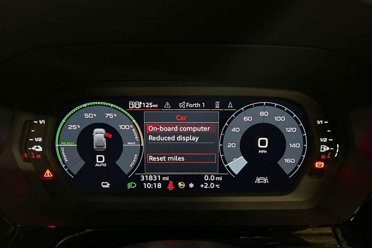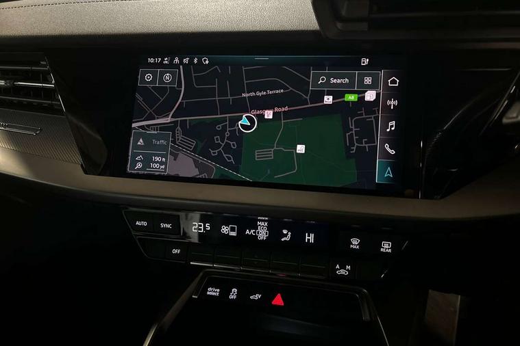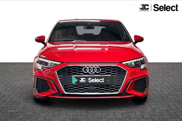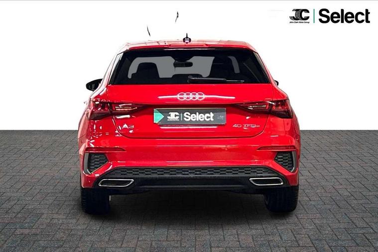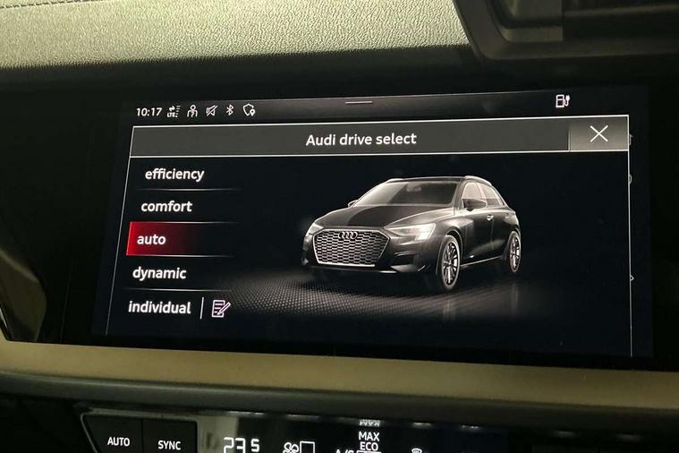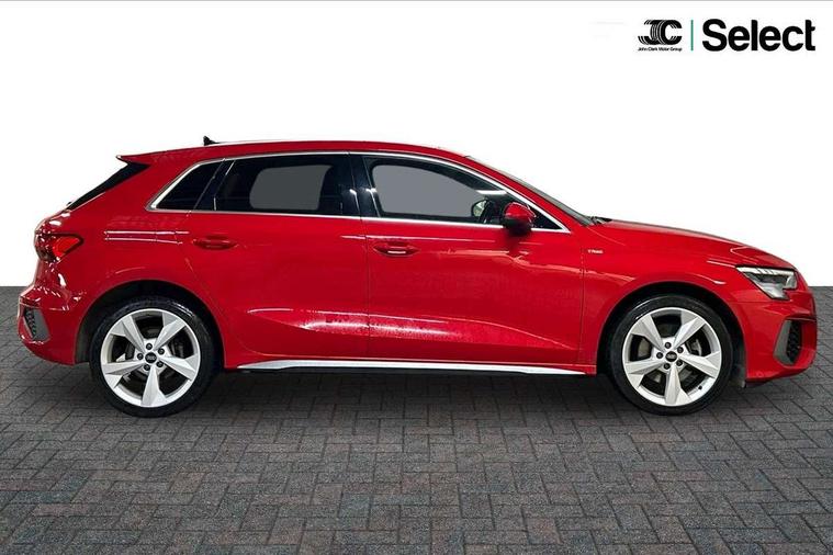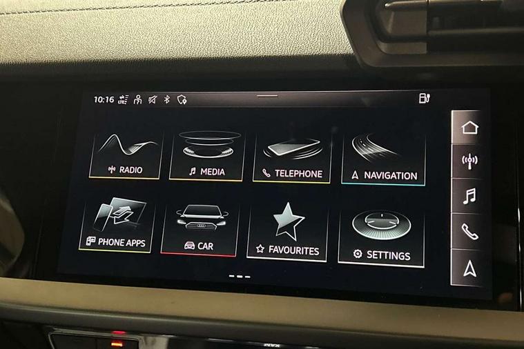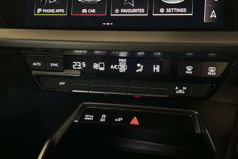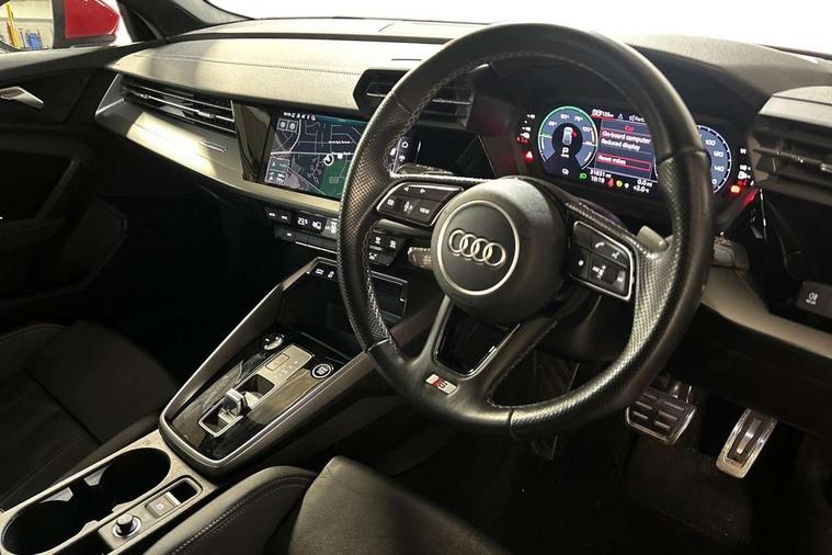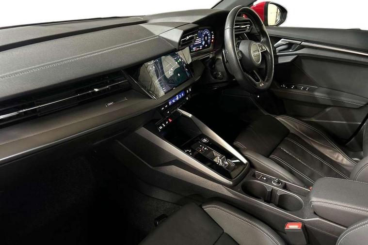 Audi drive select (Auto, Comfort, Dynamic, Efficiency and Individual), Audi smartphone interface, Audi Virtual Cockpit - 10.25" digital and colour instrument cluster, Automatic start/stop system with recuperation, Bluetooth interface, Collision avoidance assistant, e-Call (emergency call), Electromechanical power speed sensitive steering, Lane departure warning system, MMI Navigation Plus with high resolution 10.1" colour touch screen display, Service indicator, Trip computer, Voice control system with natural language interaction, 3 pin 10 amp domestic charging cable, 3.6 kw On-board charger, Standard suspension, Type 2 mode 3 32 amp charging cable, Type 2 socket for AC charging, 2xUSB-C connection with data and charging functions, 6 passive loudspeakers, DAB Digital radio, 3rd brake light, Acoustic glass windscreen, Aluminium window trim, Auto dimming frameless rear view mirror, Electrically adjustable/heated/folding/auto dimming door mirrors with integrated LED indications + kerb view function for passenger side, Front electric windows, Illuminated aluminium inserts front door sills with S logo, LED daytime running lights, LED headlights with LED rear lights and dynamic rear indicators, Light and rain sensors, Privacy glass - dark tinted rear window, rear door and side windows, Rear electric windows, Rear side air outlets in grained matt black, Rear side wing doors, Rear wiper, S line bumpers, S roof spoiler, 12V socket and storage compartment in front centre console, 3 seat bench in 2nd row, 40/20/40 split folding rear seat bench with cupholder, Black cloth headlining, Dual zone electronic climate control, Front and rear centre armrest in leather, Front and rear headrests, Front/rear floor mats, Height and reach adjustable steering wheel, Illuminated vanity mirror, Interior lighting - glove compartment light and right hand side, Luggage compartment floor covering, Manual boot compartment lid, Manually adjustable front seats, Seat side bolsters, Single front passenger seat, Stainless steel pedals and front footrest in black, Twin leather upholstery with front sports seats S embossed logo, Aluminium interior elements pack - A3 Sportback, S line styling pack - A3 Sportback, 3x3 point rear seat belts, Audi pre sense front, Driver and front passenger airbag with passenger airbag deactivation, Electronic Stabilisation Control (ESC) including ABS, ASR and EDL, First aid kit with warning triangle and 2 safety vests, Front side airbags with head airbags and interaction airbag, Pre-sense front with pedestrian and cyclist detection, Seatbelt monitoring, Tyre pressure loss indicator, Anti theft alarm, Anti-theft wheel bolts, Immobiliser, Manual child locks, Remote control central locking, Accent surfaces in the dashboard and centre console in platinum grey silk effect paint finish, Dark spectrum aluminium inlays, Tool kit, Tyre repair kit,