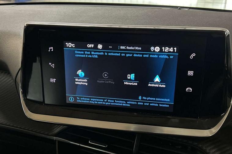Bluetooth telephone facility, Driver attention warning, Emergency call service, Exterior temperature indicator with ice warning, Lane keep assist, Mirror screen with mirror link, apple carplay and android auto, Multi function trip computer, PEUGEOT i-Cockpit with 3.5" instrument panel display, PEUGEOT i-Cockpit with compact steering wheel, Programmable cruise control and speed limiter, Push button start, Rear parking sensors, Smart phone docking station, Speed limit recognition and recommendation, Start/stop system, 1x USB socket in front, 6 speakers radio with mp3 compatible, DAB Digital radio, Voice recognition for radio, navigation and telephony features, 2 X Rear number plate lights, Automatic hazard light activation upon heavy brake application, Automatic lights, Automatic windscreen wipers, Body coloured exterior door handles, Dark tinted rear side and tailgate windows, Diamond black rear spoiler (roof), Eco LED headlights, Electric front windows + one touch + anti-pinch, Electric rear windows with one touch/anti-pinch, Electrically adjustable, heated and power folding door mirrors, Electrochrome rear view mirror, Follow me home headlights, Gloss black rear cluster connecting strip, Headlights left on audible warning, LED daytime running lights with distinctive tooth design, LED third brake light, Model designation badges front and rear, Nera black door mirror shells, Radiator grille chrome chequered, Rear reversing lights, Rear side wing doors, Rear windscreen wiper triggered automatically in reverse gear, Roof mounted aerial, Roof spoiler, Single exhaust tailpipe, Tailgate with heated rear windscreen and wiper blade, Variable front intermittent wipers, 1/3 to 2/3 split folding rear seats, 12V socket, 3 seat bench in 2nd row, Automatic air conditioning, Driver and front passenger comfort seats, Driver and front passenger seat manual adjustment in longitudinal and back rest angle, Driver seat mechanical height adjustment, Electric power steering with reach and rake adjustable steering column, Front interior light with 2 reading spotlights, Gear shift indicator, Leather steering wheel, Low centre console, Map pockets on the backs of the front seats, Piano keys gloss black plated toggle switches to access main functions of the vehicle, Rear centre headrest, Roof lining - light grey, Seatbelt unfastened on the move audible and visual alert for front and rear seats, Single front passenger seat, Tri material cloth upholstery, 2x Isofix child seat fitting on outer rear seats, 3 rear 3 point seatbelts, ABS (Anti-lock Braking System) with EBD (Electronic Brakeforce Distribution) and EBA (Emergency Braking Assistance), Adaptive driver and front passenger airbags with passenger airbag deactivation function, Child locking functionality on rear doors, Driver/front passenger side airbags, ESP with Hill Assist, Front and rear curtain airbags, Front and rear disc brakes, Front optimised safety headrests and 3 x rear retractable headrests with height adjustable, Front three point retractable seatbelts with force limiters, Manual parking brake, Pedestrians active safety brake, Tyre pressure sensor, Acoustic vehicle alert system (AVAS), Automatic door locking when moving off, Deadlock, Electronic code immobiliser, Remote central locking, Thatcham cat. 1 alarm with anti lift sensor, Carbon effect Dashboard, front and rear door panel finish, 16" Soho diamond cut alloy wheels,