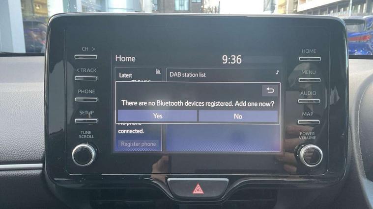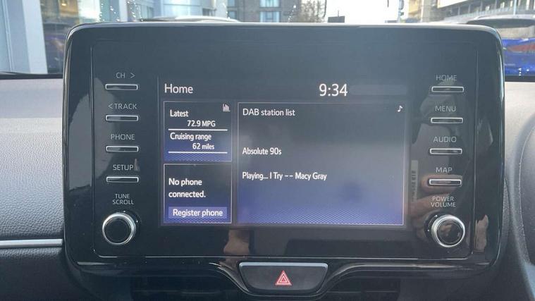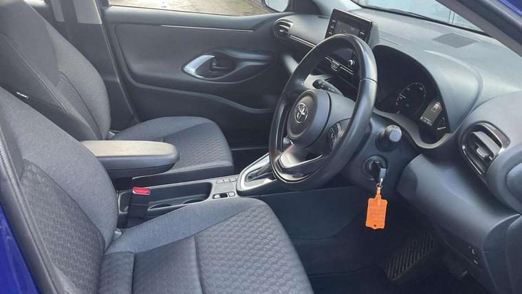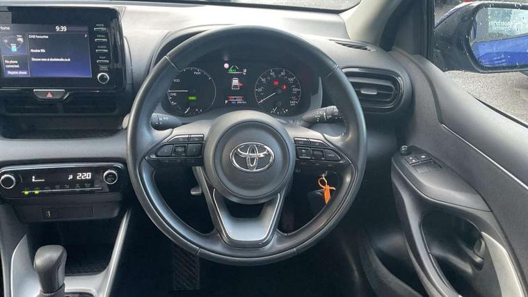 4.2" coloured TFT multi information display with analogue speedometer, Adaptive cruise control, Adjustable speed limit with speed warning, Bluetooth connectivity, E-call, Electric power steering, Hybrid energy display, Multi information display switches on steering wheel, Reversing camera, Smartphone integration with Apple CarPlay and Android auto, Tailgate, Voice recognition, Vehicle Stability Control (VSC), 4 speakers, 7" Multimedia display touch screen, Toyota Touch 2 with DAB, USB connection, Acoustic windscreen glass, Auto windscreen wipers, Automatic headlights, Body coloured door mirrors, Bulb indicators, Chequered front grille, Daytime running lights, Electric adjustable heated door mirrors, Follow me home headlights, Front auto power windows with anti jam protection, Halogen projector headlights, LED High mounted stop lamp, Manual headlight levelling, Rain sensor, Rear side wing doors, Rear spoiler, Rear wiper, Shark fin antenna, Turning signal integrated indicators in door mirrors, Variable front intermittent wipers, 3 adjustable rear headrests, 3 seat bench in 2nd row, 3 spoke leather steering wheel, 60/40 split folding rear seat, Active headrests, Adjustable boot height, Auto air conditioning, Coat hooks in rear grab handles, Cup holders (2 front & door), Data Communication Module (DCM) connected services, Fabric upholstery, Front armrest, Glovebox, Grey roof lining, Height adjustable driver's seat, Isofix seat fixing, Leather gearshift, Pollen filter, Shopping bag hooks, Single front passenger seat, Tilt/telescopic steering column, 3 point seatbelts on all rear seats, ABS+EBD+Brake assist, Electronic parking brake, Emergency brake light system (EBS), Front passenger airbag on/off switch, Front seatbelt reminder, Hill start assist control (HAC), Rear child proof door locks, Rear seat belt reminder, Supplemental Restraint System (SRS) 8 airbags: Driver & passenger's airbags, dual side curtain airbags, side impact airbags, front centre airbag, Toyota Safety Sense 2, Precollison + Night time Pedestrian & Cyclist Detection, Lane Trace Assist, Auto High Beam, Intelligent ACC & Road Sign Assist, Tyre pressure warning system, 2x Master key, Alarm/immobiliser, Remote powered central double locking doors, Soft touch instrument panel, Space saver spare wheel,