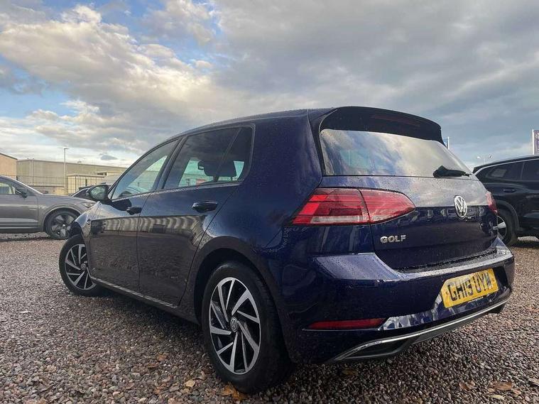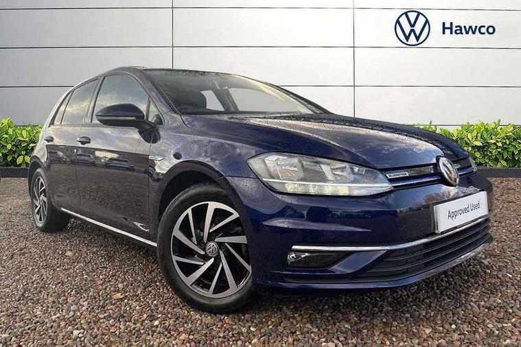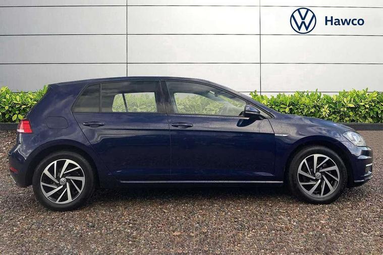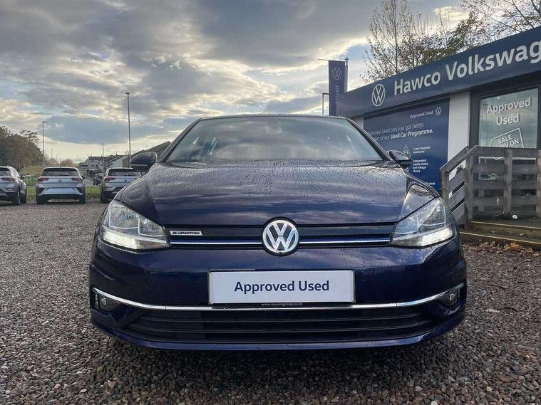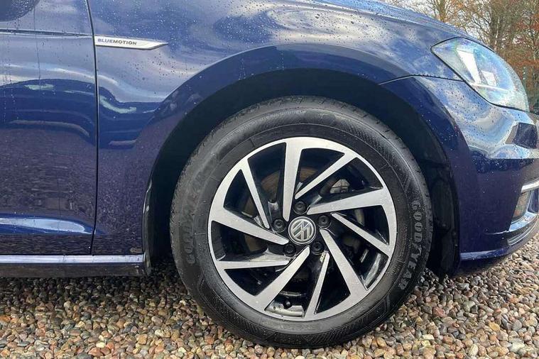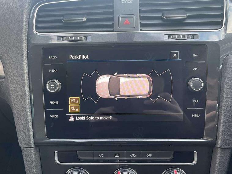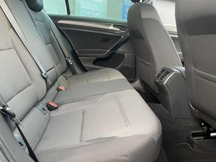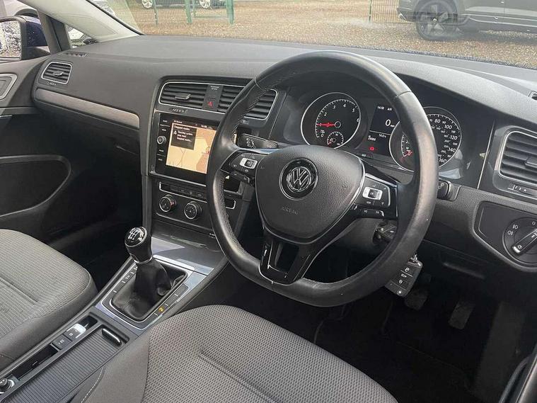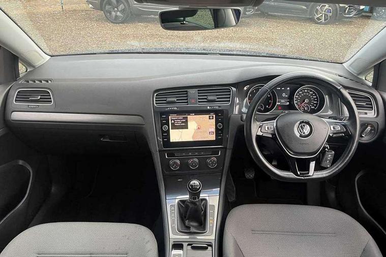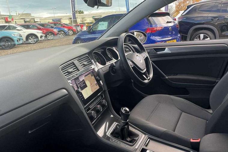 'Lights On' Reminder warning buzzer, ACC - Adaptive cruise control with front assist, forward collision warning, distance monitoring, city emergency brake and speed limiter, Bluetooth telephone and audio connection for compatible devices, Brake pad wear indicator warning light, Driver alert system, Driving Mode Selection with four preset modes - Eco, normal, sport or individual modes, Instrument cluster in white, Multifunction computer with visual gear change recommendation for fuel consumption, Power assisted speed sensitive electro-mechanical steering, Push tank flap, Speed limit display, Speedo, rev counter, electronic odometer, trip, service interval display, exterior temperature and fuel gauge, Stop/start system, Think blue trainer driver tips and journey analysis, Warning buzzer and light for front seatbelts unfastened, We Connect Go Dongle, Battery regeneration during braking, Standard suspension, XDS electronic differential lock, Composition media system, DAB Digital radio receiver, Driver Personalisation profile selection, MP3/WMA compatability, Multi device interface (MDI) with USB connection, Personalisation 1.1 profile for media, Premium USB cable in choice of either Apple or Android smartphone compatibility, SMS Functionality, Title and cover art display, 4 X 20W output, USB connection and socket, USB and SD card connectivity, Aerodynamic black radiator grille with chrome trimmed insert, Auto dimming rear view mirror, Black rear diffuser, Body colour bumpers, Body colour door handles, Body colour door mirrors with integrated indicators, Dusk sensor + automatic driving lights, Electric front windows, Electric rear windows, Electrically adjustable and heated door mirrors, Fully galvanised body, Heated rear windscreen, Hidden exhaust pipe, High level 3rd brake light incorporating LED Technology, LED front fog lights with static cornering light function, Range adjustable headlights via infotainment system with LED daytime running lights, Rear fog lamp, Rear number plate lights incorporating LED technology, Rear tinted glass 65% light absorbing from B pillar backwards, Rear window aerial, Rear window wash/wipe with intermittent wipe, Reflectors in all doors, Remote electrically foldable door mirrors, door mirror puddle lights and reverse activated kerb-view adjustment on passengers door mirror, Tailgate with integrated rear roof spoiler, Windscreen wipers/ intermittent wipe + 4 position delay, 12V socket in luggage compartment, 3 rear headrests, 4 load lashing points in luggage compartment, 60/40 split folding rear seat backrest, Auto fold down lever in rear seat backrest, Bag hook in luggage compartment x 2, Cooled glovebox, Cover for storage compartment in centre, Cupholder cover, Dust/pollen filter, Front and rear reading lights X 2, Front centre armrest with storage compartment and two rear air vents, Front seat back storage pockets, Grab handles front x 2, rear x 2 with integrated coat hooks, Height and reach adjustable steering wheel, Illuminated vanity mirrors, Instrument lighting white adjustable panel illumination, Interior light delay, Isofix preparation for 2 rear child seats, Load through provision with rear centre armrest and cupholders x2, Luggage compartment lighting, Overhead storage box, Passenger underseat drawer, Pearl grey headlining, Storage box in luggage compartment, Storage compartment in roof console with cover, Storage compartments in centre console, Storage compartments in front doors, Storage compartments in rear doors, Stowable luggage compartment cover, Sun visors, Variable boot floor, height adjustable and removable, Convenience Pack - Golf, Light and Sight pack - Golf, Mirror pack - Golf, 3 rear three point seatbelts, Airbags - Driver's and front passenger's, curtain airbag, Driver's knee, front side impact and passenger's airbag deactivation switch, Anti-lock Braking System (ABS) with Hydraulic Brake Assist (HBA), Automatic post collision braking system, Child locks on rear doors, Driver/Passenger optimised head restraints, Electronic parking brake with auto hold, Electronic stability control (ESC) including Electronic differential lock (EDL) and ASR (Traction control) with deactivation via infotainment system, Front ventilated disc brakes and rear disc brakes, Pre crash preventive occupant protection, Three point height adjustable front seatbelts with tensioners, Tyre pressure loss indicator, Alarm with interior protection and deactivation via infotainment system, Electronic engine immobiliser, Brushed dark silver decorative inserts in dash and door panels, Chrome plated air vent surround, Chrome-plated light switch surround, Polar night black decorative inserts in centre console, Steel space saver spare wheel,