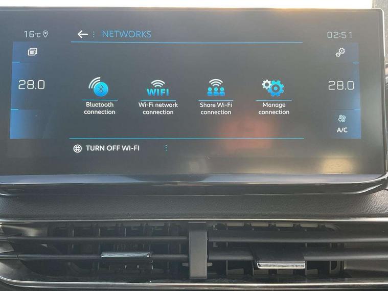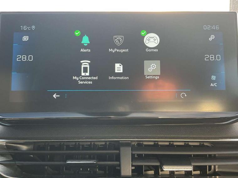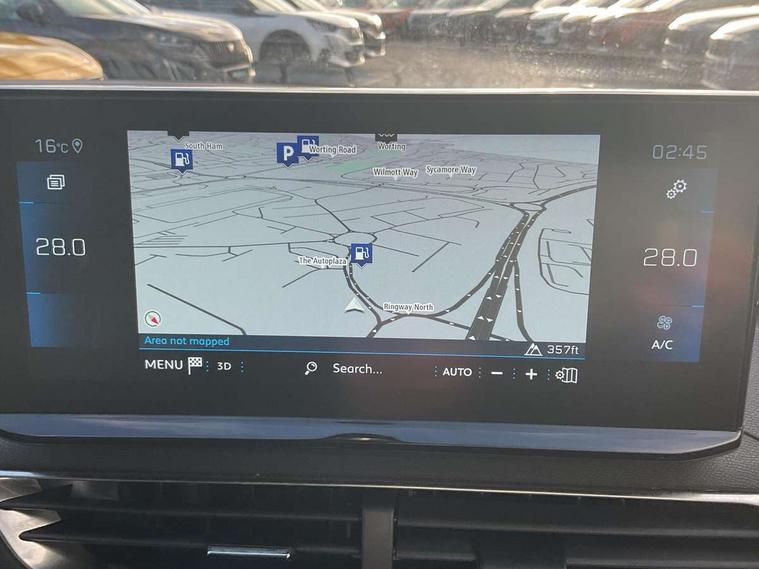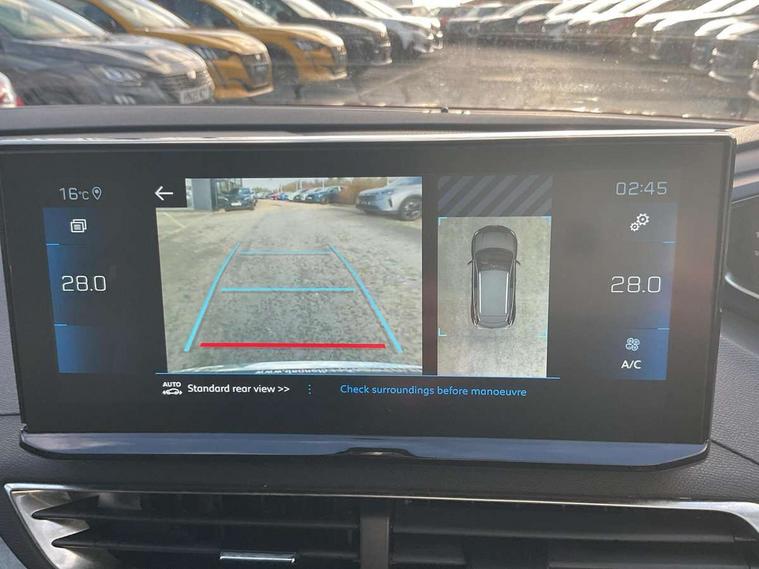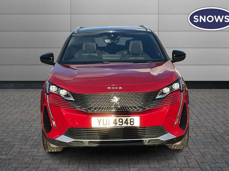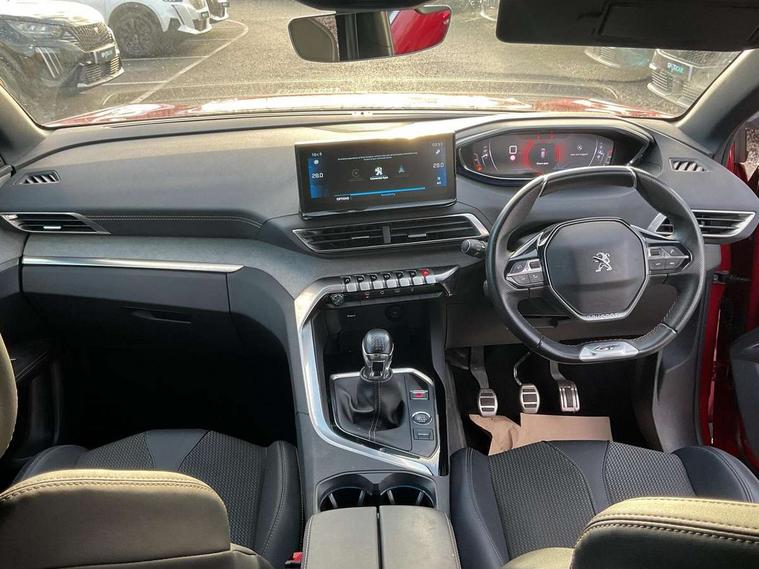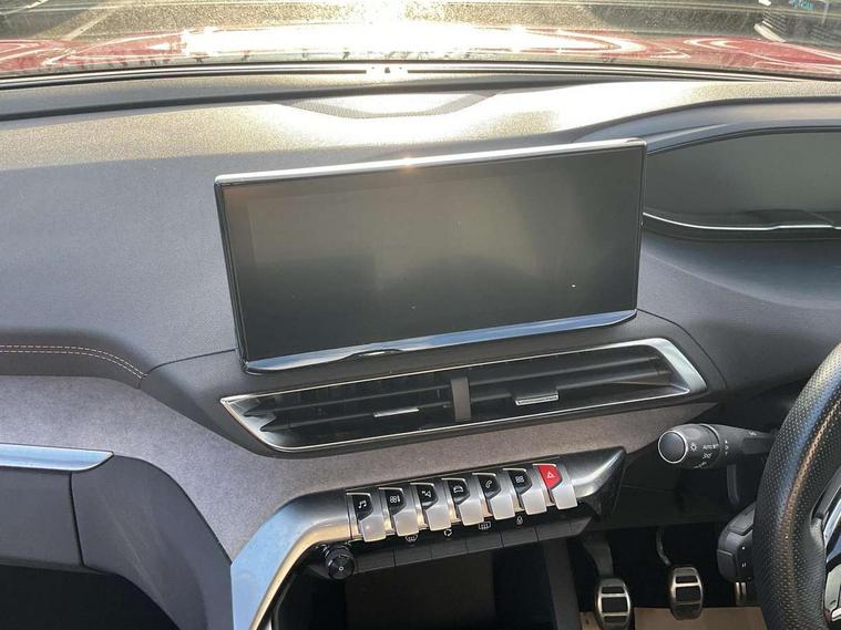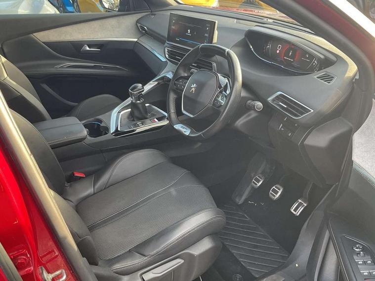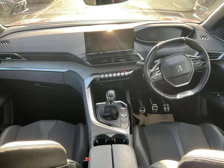 180 degree colour reversing camera, 3D connected navigation with 10" HD touchscreen, Bluetooth telephone facility, Drive modes select (Eco, normal and sport), Driving Time Warning (DAA1), Emergency services call system, Extended traffic sign recognition, Exterior temperature indicator with ice warning, Mirror screen with mirror link, apple carplay and android auto, Multi function trip computer, PEUGEOT i-Cockpit with 10" high definition capacitive touchscreen, Peugeot i-cockpit with compact multi-function sports steering wheel, PEUGEOT i-Cockpit with configurable 12.3" Head-up digital instrument panel, PEUGEOT SOS and assistance, Rear passenger USB charging sockets (x2) (type A), Speed limit recognition and recommendation, Voice recognition, Dynamic stability control and electronic anti-skid system, Stop/start function, DAB Digital radio, USB socket, Auto self levelling headlights, Automatic hazard light activation upon heavy brake application, Automatic triggered rear windscreen wiper in reverse gear, Black with chrome detailed front wing trim, Body colour door handles, Body colour rear roof spoiler with stainless steel edging trim, Body protectors (bottom of front and rear bumpers + wheel arches + protection at bottom of doors) in black, Dark tinted rear side windows + tailgate window, Diamond Black door mirror shells, Door mirror mounted LED courtesy floor lighting, Electric folding door mirrors with exterior courtesy LED lighting, Electric operated/heated door mirrors, Fog Mode, Front windscreen wiper with magic wash cleaning system, Full LED headlights with LED fog lights with static cornering function, Gloss black B and C pillar and aerodynamic deflector trim, Gloss black front bumper air scoops, Gloss black rear cluster connecting strip, Gloss black windscreen trim, GT emblem in satin copper (front wings and tailgate), Headlights left on audible warning, Heated rear windscreen with integrated antenna, LED daytime running lights, LED front indicator, LED rear number plate lighting, LED side indicator lights integrated into door mirrors, LED third brake light, One touch electric front/rear windows with pinch protection, Rear LED Peugeot signature 'Claw Effect' lights, Rear side wing doors, Stainless steel roof arches, Twin exhaust tailpipe, 1/3 to 2/3 split folding rear seats, 12V Sockets in dashboard, rear cabin and load area, 2 cupholders in front centre console, 2 cupholders in rear armrest, 2 x Rear reading spotlights, 2x Rear coat hooks, 3x Isofix child seat fittings in the front passenger and outer rear seats, 4 Grab handles retractable and damped, Aikinite stitching in armrest, gear lever and dashboard facia, Aluminium pedals, Blue ambient lighting for connecting zone, Blue ambient lighting to front door panels, central storage and cupholders, Blue ambient lighting to headup instrument panel, Centre front armrest with butterfly wing opening and illuminated storage compartment, Driver seat manual adjustment (longitudinal and back rest angle), Dual zone automatic climate control, Electric power steering with reach and rake adjustable steering column, Flocked front door pocket interior with blue ambient lighting, Flocked glovebox interior, Foldable front passenger seat with picnic table, Footwell illumination, Front interior light with 2 reading spotlights and rear interior light with timer, Front passenger seat manual adjustment (longitudinal and back rest angle), Front seat back map pockets, Gear shift indicator, Illuminated glovebox, Individual left and right controls in boot for seat folding, LED interior lighting in storage spaces and load area, LED roof interior lighting, Mistral floor mats with Aikinite contrast stitching, Mistral full grain perforated leather steering wheel with aikinite stitch detail and satin chrome 'GT' emblem, Rear bench seat with central armrest and ski hatch, Rear centre console ventilation system, Roof lining - Mistral black, Satin chrome dashboard trim, Satin chrome digital instrument panel and touchscreen trim, Satin chrome front door panel recess trim, Satin chrome interior door handles, Satin chrome scorpion's tail and toggle switch trim, Seatbelt not fastened audible and visual alert for front seats, Seatbelt unfastened on the move audible and visual alert for front and rear seats, Sunvisors with illuminated vanity mirrors, Two position boot floor, Drive assist pack - 3008, Driver sport pack - 3008, Safety plus pack with high beam assist - 3008, Visibility pack - 3008, 3x Rear three-point retractable seatbelts with force limiters in the outer rear seats, ABS (Anti-lock Braking System) with EBD (Electronic Brakeforce Distribution) and EBA (Emergency Braking Assistance), Adaptive driver and front passenger airbags with passenger airbag deactivation function, Driver and front passenger side airbags, Electric child locking functionality on rear windows and doors, Electric parking brake, Front and rear curtain airbags, Front optimised safety headrests and 3 x rear retractable headrests with height adjustable, Front three point retractable seatbelts with pre tensioners and force limiters, Front ventilated disc brakes and rear disc brakes, Hill start assist, Two tone horn, Automatic door locking when moving off, Electronic immobiliser, key operated exterior door lock from the left hand door, Perimetric and volumetric alarm with lift and tilt sensor, Peugeot Open and Go System, Remote control central locking with two plip keys, Puncture repair kit including compressor, sealant cartridge and towing eye,