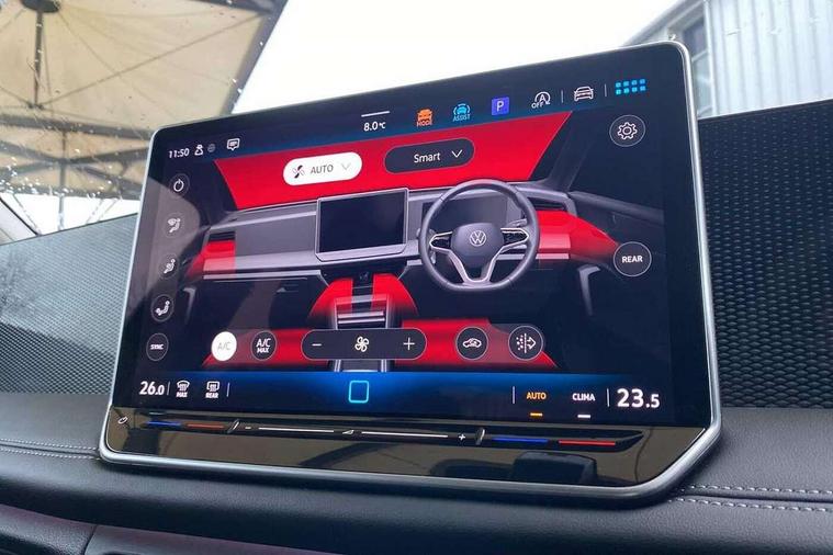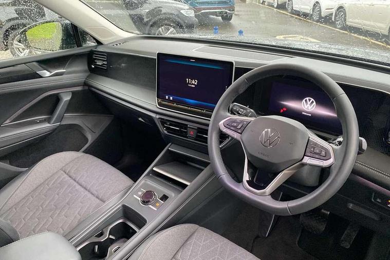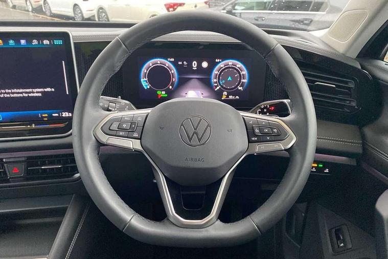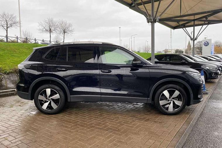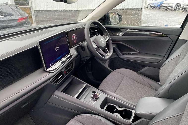 Adaptive cruise control (ACC), Advanced driver attention and drowsiness monitor, Bluetooth mobile phone interface, Car2X technology, Digital Cockpit Pro - 10.25" high resolution dash display screen with customisable menus and information, Dynamic road sign display, E-Sim card for online connectivity, eCall emergency call service, Front Assist - Autonomous emergency braking with pedestrian and cyclist monitoring, Lane change system, Side assist, Rear traffic alert and Exit warning system, Lane keeping system Lane Assist, Multifunction front facing camera, Oncoming vehicle braking when turning including swerve support, Park assistance plus with front and rear parking sensors, Power assisted steering with speed sensitive, Start/stop system with regenerative braking, Warning signal and warning light for front and rear seatbelts not fastened, Wireless App-Connect, Front wheel drive, Digital radio reception (DAB), Diversity antenna for FM reception, Ambient lighting with logo projection, Auto dimming interior rear view mirror, Automatic headlight control system, Body coloured bumpers and air intake with chrome trim, Body coloured door handles, Body-coloured exterior mirror housings, Coming/leaving home lighting function, Heat insulating glass in side and rear windows, Heat insulating windshield, Heated rear window, High level 3rd brake light, Illuminated door handle recesses, Illuminated lightline between headlamps, Rain sensor windscreen wipers, Rear fog light on one side, reversing light on both sides, Rear side wing doors, Rear wiper, 12V outlet in center console rear and in luggage compartment, 12V socket in centre console, 3 bench rear seats in 2nd row, Air care climatronic 3 zone air conditioning system with rear air conditioning control panel, Carpet mats, front and rear, Centre console with illuminated storage compartment with sliding cover and two drinks holders, Ceramique headlining, Door and side trim panel in foam film and woven fabric, Front centre armrest, ISOFIX anchors for child seats on outer rear seats and front passenger seat compatible with i-Size, Mechanical rear seat release, Power adjustable lumbar support in front, Rear bench seat, split folding, longitudinally movable and folding with load-through hatch and centre armrest, Safety optimised front head restraints, Single front passenger seat, Sun visors with illuminated vanity mirrors, Three rear head restraints, Variable luggage compartment floor, Comfort package with park assist plus and Safelock - Tiguan, Design package - Tiguan, 3 point seat belt for centre rear seats, 3 Point seat belts in front with pretensioners, 3 point seatbelts in outer rear with ECE label, Driver and front passenger airbag with front passenger airbag deactivation, Electronic parking brake with auto hold, Front and rear curtain airbags, Front and rear side airbags, Front centre airbag, Front disc brakes, Manual child proof rear door locks, Rear disc brakes, Two tone horn, Warning triangle, Anti theft wheel bolts, Soul instrument panel,