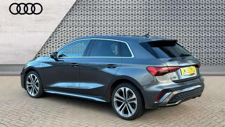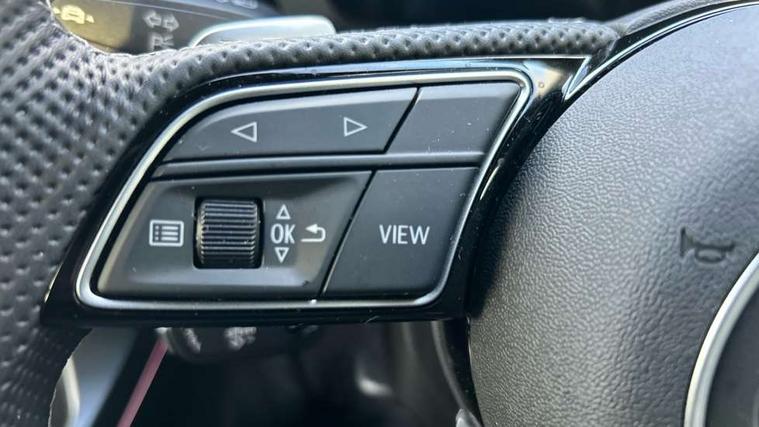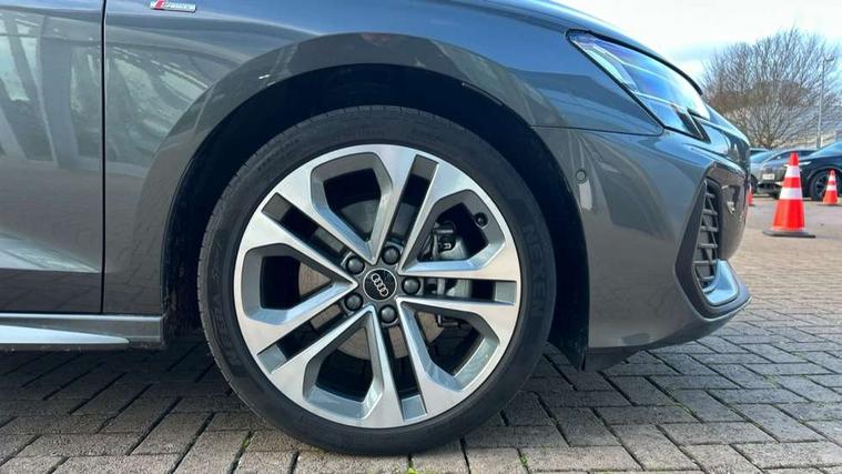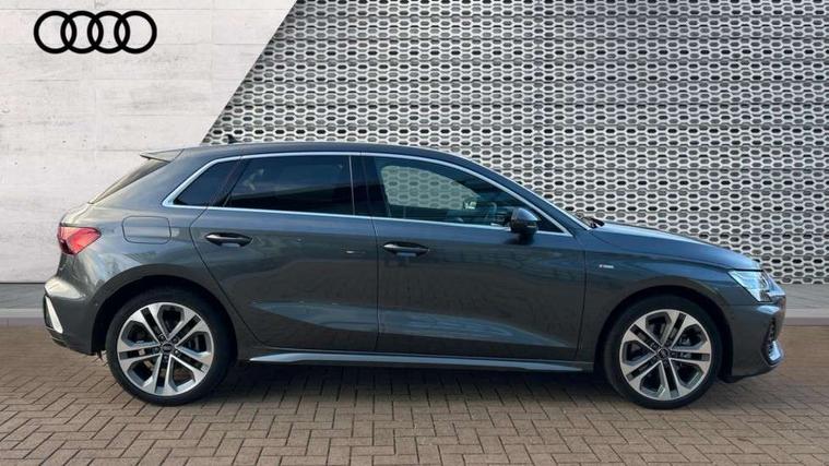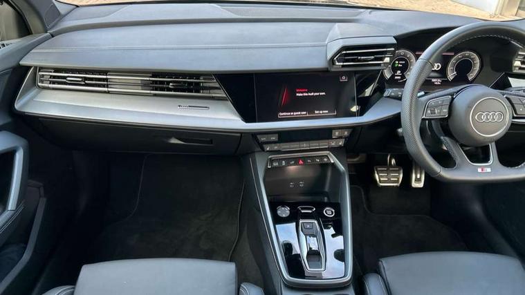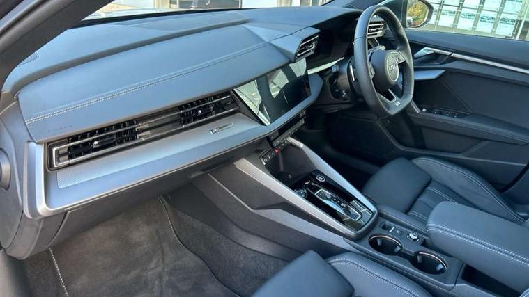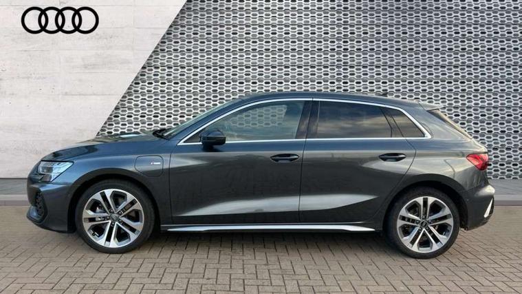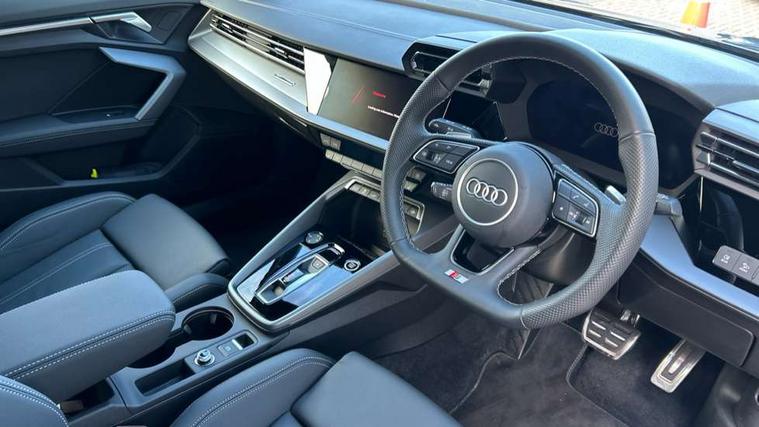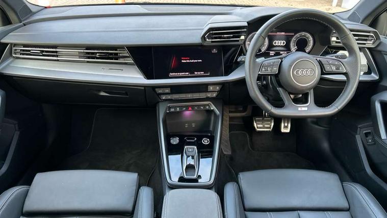 Adjustable speed limiter, Audi drive select, Audi smartphone interface with app store includes wireless Apple carplay, Android auto and Amazon alexa integration, Audi virtual cockpit plus - 12.3" full HD resolution dynamic digital instrument cluster, Automatic start/stop system with recuperation, Bluetooth interface, Camera based traffic sign recognition, Collision avoidance assistant, Cruise control, Distraction and Fatigue warning, e-Call (emergency call), Electromechanical power speed sensitive steering, Emergency assist, Lane departure warning system, MMI Navigation Plus with high resolution 10.1" colour touch screen display, Park Assist with parking system Plus, Service indicator, Trip computer, Voice control system with natural language interaction, 3 pin 10 amp domestic charging cable, CCS socket for DC charging, Charging cable for public charging, mode 3 (type 2), 32 A, Compact charging system, Industrial connector CEE 32 A, 230 V, length 1.6 m, Standard suspension, Type 2 socket for AC charging, Audi Phonebox light with wireless charging, Audi sound system - 10 loudspeakers including centre loudspeaker and subwoofer, DAB Digital radio, USB ports with charging function in the rear, Acoustic glass windscreen, All weather light, Aluminium window trim, Auto dimming frameless rear view mirror, Automatic dynamic range control, Body colour exterior mirrors, Chrome exhaust tailpipes, Dipped beam, main beam, position light and turning light, Electrically adjustable/heated/folding/auto dimming door mirrors with integrated LED indications + kerb view function for passenger side, Exterior model badging, Front and rear side air inlets in grained matt black with dark liquid chrome frame, Front electric windows, Front radiator grill in high gloss dark chrome, Heat insulating glass windscreen, Illuminated door sills with aluminium inserts at the front with S logo, Intersection light, LED 3rd brake light, LED brake lights, LED daytime running x3, LED headlights with LED rear lights and dynamic rear indicators, LED rear number plate lights, LED reverse light, LED tail lights, Light and rain sensors, Manoeuvring light, Motorway light, Privacy glass - dark tinted rear window, rear door and side windows, Rear diffuser and grill in grained matt black with inlay in dark liquid chrome, Rear electric windows, Rear side wing doors, Rear wiper, S line bumpers, S roof spoiler, Side S line emblems on front wings, Side sill trim in dark liquid chrome, Static Cornering lights, 12V socket and storage compartment in front centre console, 3 seat bench in 2nd row, 3 spoke flat bottomed leather multifunction sport steering wheel with gear shift paddles, 3-zone deluxe automatic air conditioning, 4 way electrically adjustable lumbar support for driver and front passenger, 40/20/40 split folding rear seat bench, Black cloth headlining, Black front and rear floor mats, Convenience auxiliary air conditioning, Front and rear centre armrest in artificial leather with contrasting stitching on armrests and instrument panel, Front and rear headrests, Heated front seats, Height and reach adjustable steering wheel, Manual boot compartment lid, Manually adjustable front seats, Rear centre armrest with cupholder, S badging on the steering wheel, Seat side bolsters, Single front passenger seat, Stainless steel pedals and front footrest in black, Twin leather upholstery with front sports seats S embossed logo, Aluminium interior elements pack - A3, Multi-coloured LED interior lighting package with Multi-coloured contour lighting of instrument panel - A3, 3x3 point rear seat belts, Acoustic vehicle alerting system, Driver and front passenger airbag with passenger airbag deactivation, Electronic Stabilisation Control (ESC) including ABS, ASR and EDL, First aid kit with warning triangle and 2 safety vests, Front side airbags with head airbags and interaction airbag, Hill hold assist, Pre-sense front with pedestrian and cyclist detection, Seatbelt monitoring, Tyre pressure loss indicator, Anti theft alarm, Anti-theft wheel bolts, Electronically operated child locks, Immobiliser, Remote central locking with safelock, Black dashboard, Inlay in dark aluminium spectrum, Tyre repair kit,