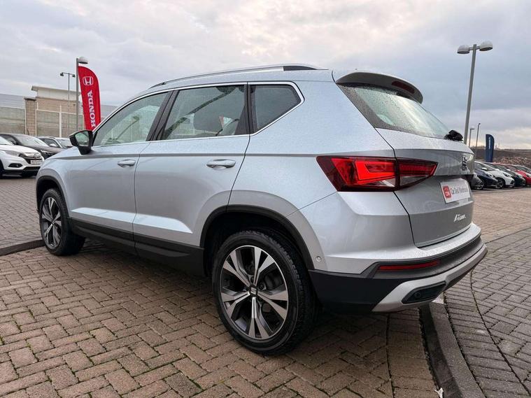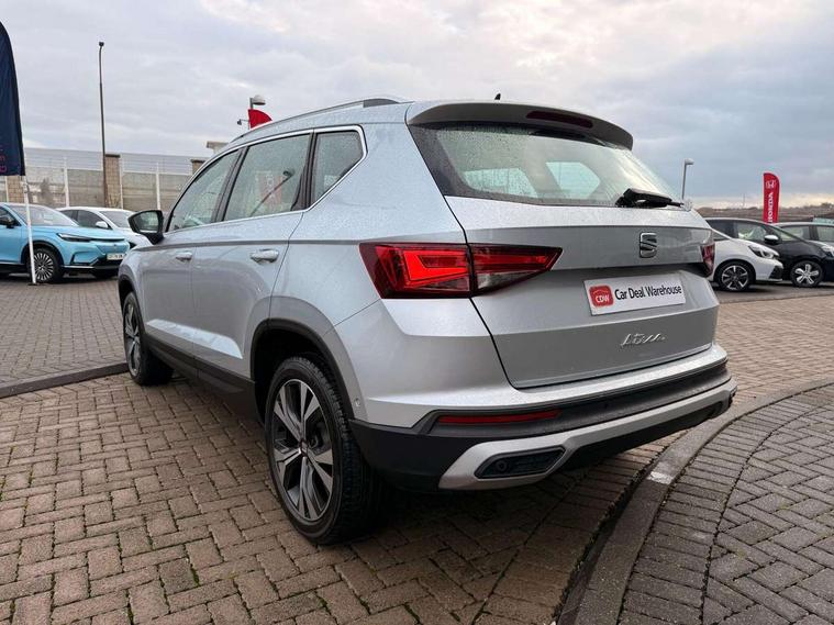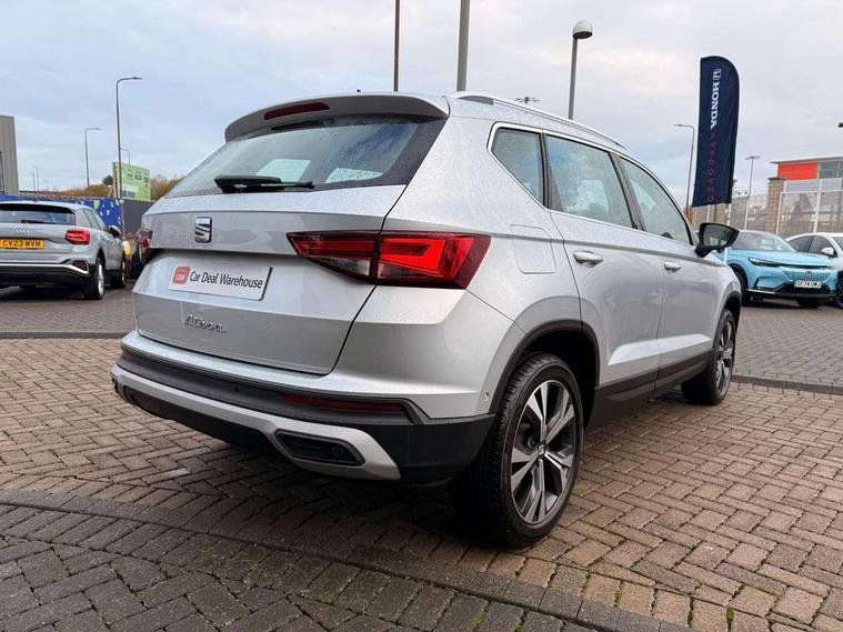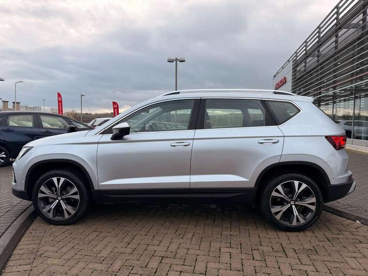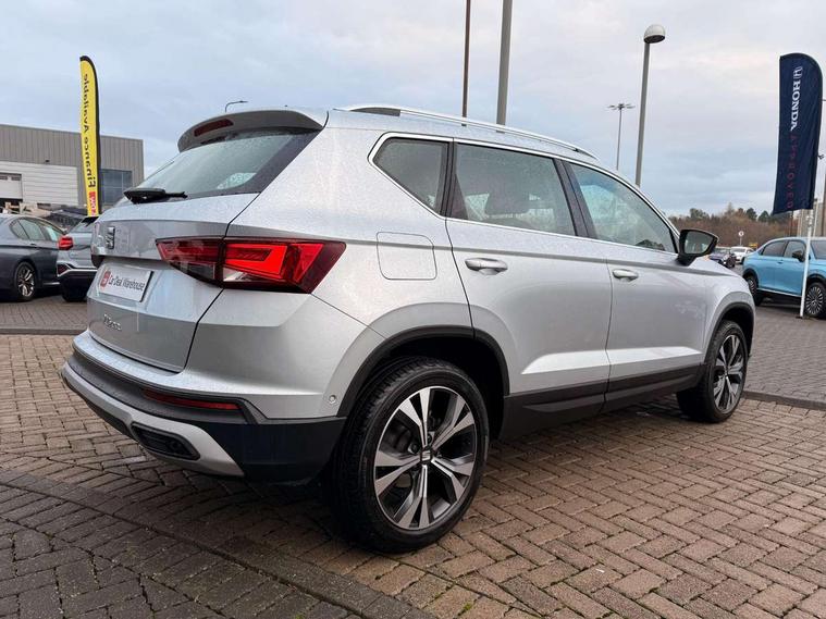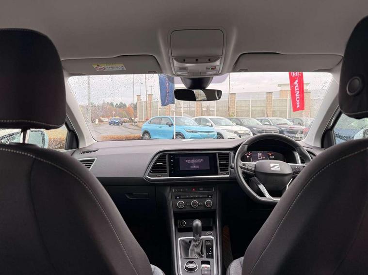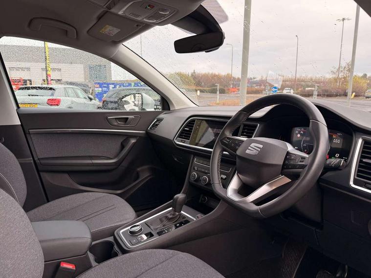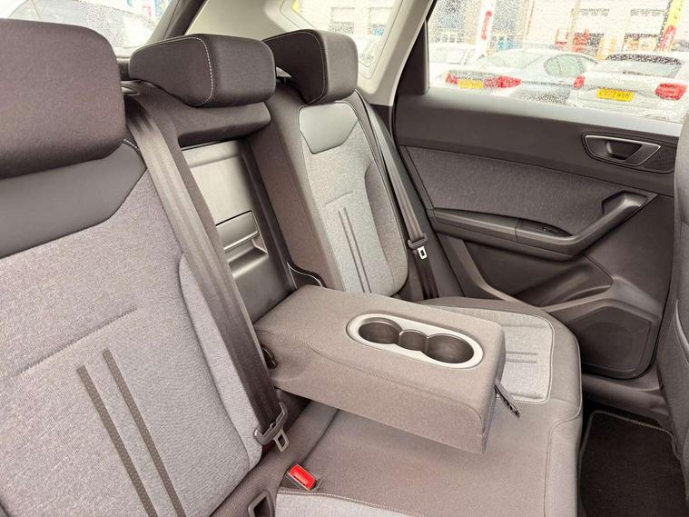 8" Digital cockpit, Colour multi-function on board computer display, Cruise control system with speed limiter, E-call, Outside temperature gauge, PAS, SEAT drive profile with driving experience button - Normal, Sport, Eco and Individual mode, gearshift, steering and throttle response, Self parking functionality (includes front and rear parking sensors), Start/stop system, Tailgate, Trip computer, wired and wireless full link smartphone integration, Wireless phone charger, Steering wheel mounted audio/phone controls, Black wheel arch surrounds, Body colour bumpers, Chrome front grille frame, Chrome roof rails, Chrome side window trim, Daytime running lights, Door mirrors with welcome light silhouette, Dynamic headlight range control with self adjusting whilst driving, Electric adjustable/heated/folding door mirrors, Front and rear electric windows, Full LED headlamps with lens and LED front fog lamps with cornering function, LED 3rd brake light, LED rear tail lights, Rear exhaust tailpipe, Rear fog lights, Rear side wing doors, Rear wash/wipe, Variable front intermittent wipers, 12V socket in front, 3 seat bench in 2nd row, 60/40 split folding rear seat, Cloth upholstery with front comfort seats, Drawer under right front seat, Dual zone climate control, Front and rear head restraints, Front centre armrest, Front seat back storage pockets, Height adjustable driver and passenger seat with lumbar adjustment, ISOFIX points in outer rear seats with top tether anchorage points, Leather sports steering wheel and gear knob, Rear armrest and easy back seat release mechanism from boot, Single front passenger seat, Steering wheel mounted gearshift paddles, Convenience pack - Ateca, Interior lighting pack - Ateca, Navigation system pack with DAB - Ateca, Safety and driving pack with attention and drowsiness assist - Ateca, 3x3 point rear seatbelts, ABS, Traction control system (TCS), Electronic stability control (ESC) and Electronic differential lock system (XDS), Airbags - Driver and front passenger airbag with deactivation, front side, two curtain and driver's knee airbags, Electric parking brake with auto hold function, Front and rear seatbelt reminder, Front assist with autonomous emergency braking, Hill hold control, Manual rear child locks, Single tone horn, Tiredness recognition system, Tyre pressure monitoring system, Alarm, Keyless entry, Locking wheel bolts, Remote central locking, Chrome interior detailing, 18" Performance machined alloy wheels 36/2 in nuclear grey,