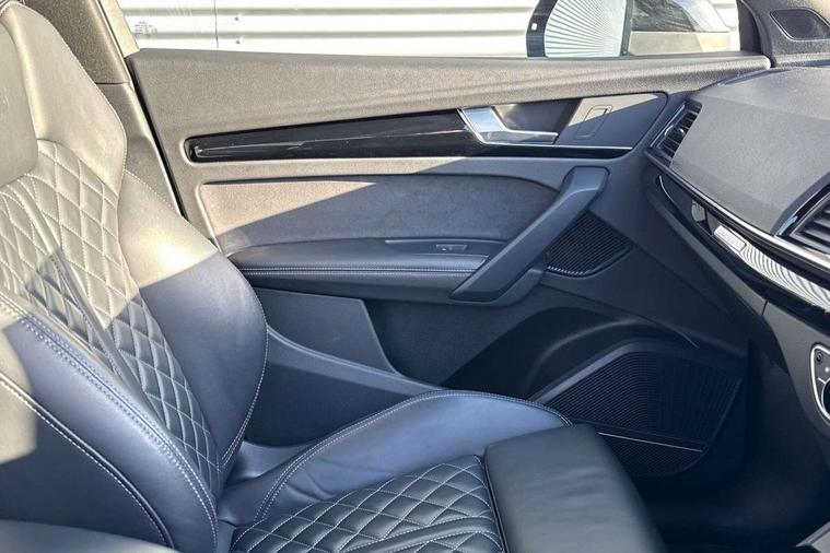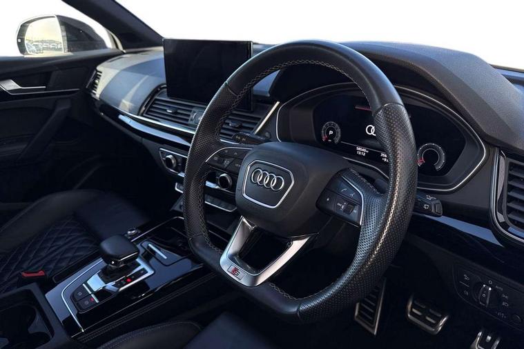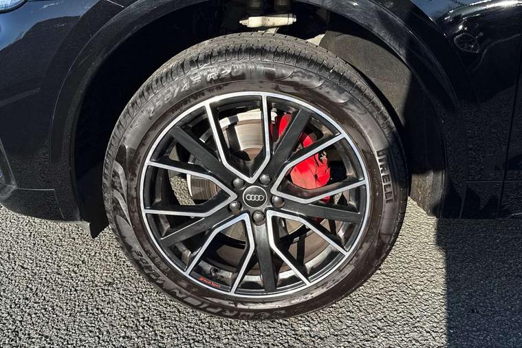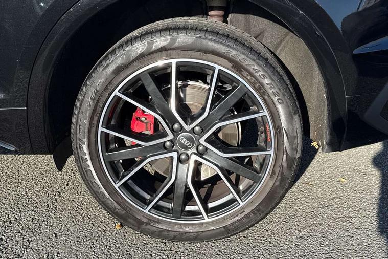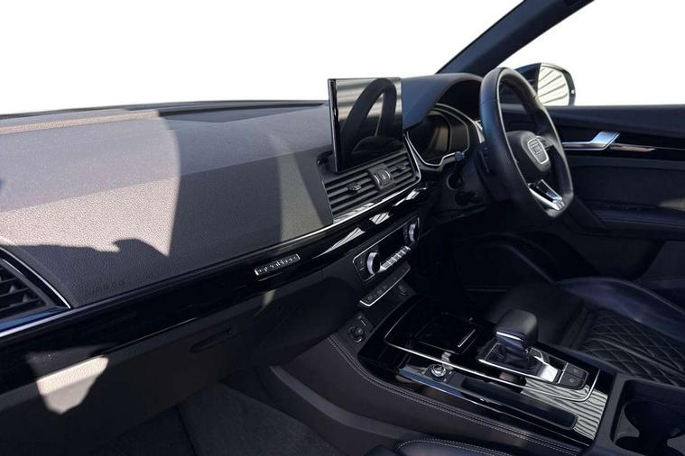 Audi connect safety and service (e-call), Audi connect with Amazon Alexa Integration, Audi drive select, Audi virtual cockpit plus with 12.3" screen and three different layout designs, Audi wireless smartphone interface, Automatic start-stop system with coasting functionality and efficiency programme, Bluetooth interface, Electro - mechanical power assisted steering, MMI navigation plus with 10.1" touch screen, Power tailgate, Reversing camera, Service interval indicator, Voice control system with Audi hotword activation "Hey Audi", 70 litre fuel tank, Quattro on demand, S line sports suspension, DAB Digital radio, Acoustic windscreen, Audi beam with Audi rings logo, Audi matrix LED headlights with dynamic front and rear indicators, Audi rings at front and rear in black, Audi rings decal on rear doors, Auto dimming door mirrors, Auto dimming rear view mirror, Automatic headlights and windscreen wipers, Black door mirrors, Black roof rails, Body colour underbody protection, Chrome plated exhaust trims, Daytime running lights, Door sills in Selenite silver, Electric adjustable/heated/folding door mirrors, Front air inlet surrounds in aluminium, Front and rear electric windows, Headlight washers, High gloss black B pillar trims and triangular rear door trim, High level LED brake light, Rear chrome trim strip below lights, Rear privacy glass and rear side windows, Rear side wing doors, Rear spoiler, Rear wiper, Roof bars, Without model and engine badging at rear, 2 x USB charging port with aux input socket, 3 rear headrests, 4 way electric lumbar support for driver and front passenger, 40:20:40 split folding 3 rear bench seat in 2nd row with rear centre armrest, Black cloth headlining, Comfort front centre armrest, Contrast stitching on seats, steering wheel and gear lever gaiter, Deluxe 3 zone electronic climate control, Electrically adjustable front seats, Fine Nappa leather upholstery with diamond pattern contrast stitching + front sport seats with S embossed logo, Front head restraints, Front/rear floor mats, Gear lever in black leather, Heated front seats, Height/reach adjustable steering column, Illuminated door sill trims with S logo, ISOFIX child seat mounting and top tether, Rear seat bench plus, Removable luggage compartment floor, Single front passenger seat, Stainless steel pedals, Sunvisors with vanity mirrors, Trunk roller cover, Artificial leather pack - Q5, Black styling package - Q5 Edition 1, Extended LED Interior multi coloured Lighting Pack - Q5, 3 point seatbelts on all seats, 6 airbags - Driver, front passenger, curtain and side airbags, Electrically operated child locks on rear doors, Electromechanical parking brake, Electronic stabilisation control including ABS, ASR and EDL, Front and rear brake calipers painted in red, Front passenger airbag deactivation, Hill descent control, Hill hold assist, Multi collision brake assist, Pop-up bonnet for pedestrian protection, Pre sense city, Seat belt force limiter, Seatbelt monitoring, Tyre pressure warning, Warning triangle and first aid kit, Anti theft alarm, Anti-theft wheel bolts, Keyless Go access/ignition system, Remote central locking, Piano black finish inlay,