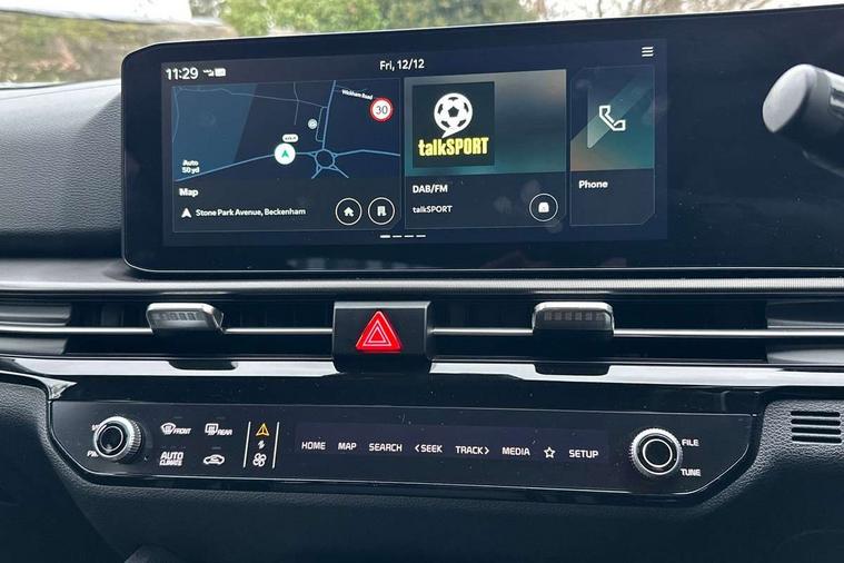 12.3" Touchscreen navigation system, 4.2" driver display screen, Bluetooth connection, Drive mode selector, Driver attention warning, E-call, Emergency stop signalling system, Forward collision avoidance assist (FCA) - city/pedestrian/cyclist/junction covering, Front and rear parking sensors, Highway Driving Assist (HDA), Intelligent speed limit assist, Kia Connect (UVO), Lane Following Assist (LFA), Lane keep assist, Low washer fluid warning, Motor driven power steering, Over the air (OTA) functionality, Reversing camera, Smart cruise control with stop and go functionality, Speed limiter, Tailgate, Trip computer, Windscreen washer level indicator, Wireless apple car play/android Auto, 6 speaker audio system, DAB Radio with MP3, Front passenger 1x USB-C port, Rear passenger 2x USB-C port, Steering wheel mounted audio controls, USB-C port for connection of a media device, Auto dimming rear view mirror, Automatic defog system, Automatic headlight control system, Black and body coloured bumpers, Body colour exterior door handles, Body colour radiator upper garnish and door garnish, Electric front and rear windows with front one touch function, Electrically adjustable/heated/folding door mirrors with LED indicators, Front and rear body colour skid plates, Gloss black door mirrors, Gloss black radiator grille, Gloss black wheel arches, Glossy black roof rails, GT-Line exterior styling, Heated rear window, High beam assist, LED daytime running lights, LED front fog lamps, LED Headlights, LED High mounted stop light, LED rear lights, Privacy glass in rear windows and tailgate, Rain sensing wipers, Rear fog lamp, Rear roof spoiler, Rear side wing doors, Rear wiper, Satin finished beltline, Silver window surround, Trailer stability assist, 12V power socket in front and luggage compartment, 2nd row personal lamps, 3 seat bench in 2nd row, 3 x passenger assist grips, 40/20/40 split folding rear seat, All-round height adjustable headrests, Alloy pedals, Automatic air conditioning, Black headlining, Centre console storage box, Cupholders in rear armrest, Door courtesy lamps, Driver and front passenger sunvisors with illuminated vanity mirrors, Driver's seat manual height adjust, Drivers seat power lumbar support, Front and rear door storage, Front cabin, rear & luggage compartment lights, Front passenger's seat manual height adjustment, Front seat and rear pockets, Gear shift indicator, Glovebox, GT-Line Interior Styling, Heated front seats, Heated steering wheel, ISOFIX Child seat top tethers and anchor fixings outer rear seats, Leather steering wheel, Leather/suede upholstery, LED lighting in overhead console, Luggage area load cover, Luggage area parcel shelf, Luggage board, Luggage compartment under floor storage, Luggage net hooks, Manual adjust steering wheel, Metal paint interior door handles, Paddle shift controls, Rear air conditioning, Rear cabin light, Rear coat hooks, Single front passenger seat, Ventilation ducts to rear compartment, Active front headrests, All round 3-point seatbelts, Anti-lock braking system (ABS), Dual front side airbags, Dual horn, Dynamic brake control, Electronic parking brake with auto hold function, Electronic stability control with downhill brake control, Front passenger airbag cut-off switch, Front seatbelt pretensioners + load limiters, Height adjustable front seatbelts, Hill start assist control (HAC), Impact sensing auto door unlocking, Multi collision brake assist, Rear airbags, Rear door child safety locks, Rear seat alert system, Seatbelt reminder warning, Traction control, Twin curtain airbags, Twin front airbags, Tyre pressure monitoring system, Vehicle stability management, Customisable automatic door locking, Customisable automatic door unlocking, Door deadlocks, Engine Start/Stop Button with Smart Entry System, Locking wheel nuts, Smart key with motion sensor, Speed sensitive auto door locking, Thatcham category 2 security alarm and immobiliser, Visible vehicle identification number, 18" GT-Line alloy wheels, Tyre mobility kit,