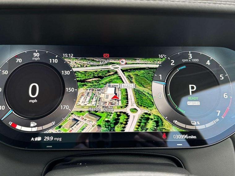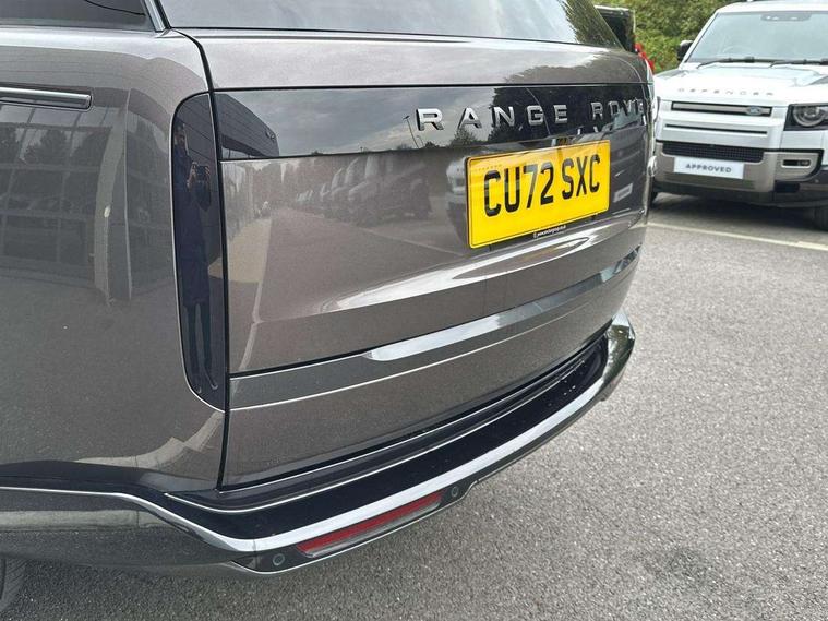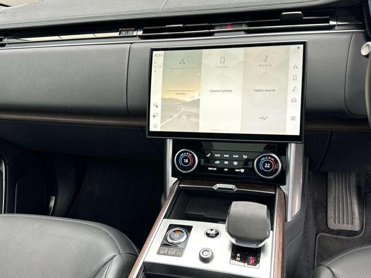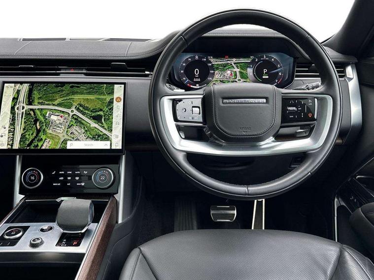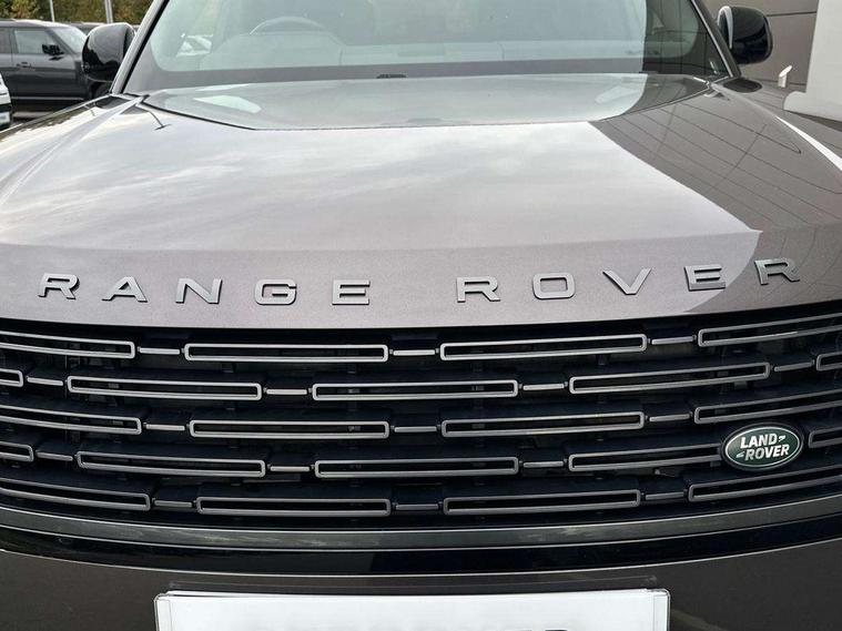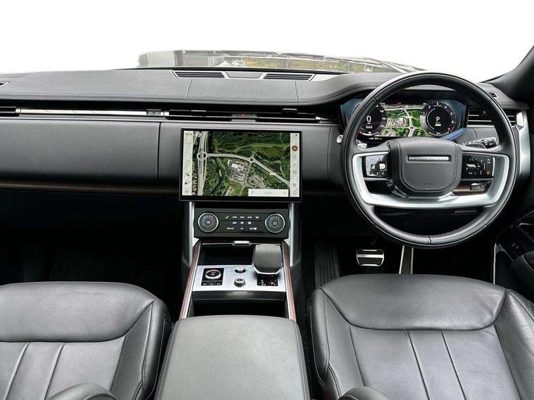 13.1" Touchscreen, 3D surround camera inc frwd traffic detection, vehicle clearance guidance, 3D view, clearsight ground view, manoevure light, 360 parking aid, wade sensing, Adaptive cruise control with steering assist, All Terrain Info Centre, All wheel steering, Android Auto, Apple car play, Blind spot assist, Bluetooth connectivity streaming, Driver condition response, Eco mode, Electric power assisted steering (EPAS), Emergency call service, Front and rear parking aid, Interactive driver display, Lane keep assist, Powered gesture tailgate/boot lid, Rear collision monitor, Rear traffic monitor, Remote, Traffic sign recognition with adaptive speed limiter, Wi-Fi Enabled with data plan, Wireless device charging with phone signal booster, 7 kW onboard charger, 8 speed automatic transmission, Active damper technology system, Adaptive dynamics, All terrain progress control, All Wheel Drive (AWD), Automatic access height, Home charging cable 5m Mode 2 including plugs, Public charging cable 5m Mode 2 including plugs, Terrain Response 2 Auto, Twin speed transfer box, Digital Audio Broadcast radio-DAB, Pivi pro including smart settings, Connected navigation pro, nuance speech, USB socket, Acoustic laminated windscreen, Animated directional indicators, Automatic headlights, Automatic levelling headlights, Centre high mounted stop light, Electric windows with one touch open/close and anti trap, Flush deployable exterior door handles, Front and rear recovery eyes, Front fog lights, Headlamp power wash, Heated rear window, Heated washer jets, LED tail lights, Power fold, auto-dimming, heated door mirrors with approach lights, Rain sensing windscreen wipers, Range rover badge, Rear boot, Rear fog lights, Rear side wing doors, Rear wash/wipe, Side repeater indicators in mirror, Trailer stability assist, Winter wiper park position, 12V power sockets, 3 seat bench in 2nd row, Air quality sensor, Bright metal pedals, Cabin lighting, Customer configurable single point entry, Driver and passenger front seat armrests, Easy boot loading, Ebony Carpet, Front and rear cupholders, Front and rear grab handles, Front head restraints, Gearshift paddles, Heated steering wheel, Hook in load space, Loadspace light, Luggage tie down in loadspace, Multifunction steering wheel, Rear centre armrest, Rear head restraints, Rear ISOFIX, Single front passenger seat, Twin blade sunvisors with Illuminated vanity mirrors, Upper and lower glovebox, Online pack with data plan - Range Rover, 3x3 point rear seat belts, Anti-lock braking system (ABS), Brake hold function, Cornering brake control (CBC), Customer configurable autolock, DSC - Dynamic Stability Control, Electronic brake force distribution, Electronic parking brake, Electronic traction control, Emergency brake assist, Emergency braking, Front airbags with passenger seat occupant detector, Front side airbags, Hill descent control, Hill launch assist, Low traction launch, Occupant protection assist, Power operated child locks, Roll stability control, Tyre pressure monitoring system (TPMS), Immobiliser, Intrusion sensor and alarm, Keyless entry, Locking wheel nuts, Remote central locking, Noble chrome controls,