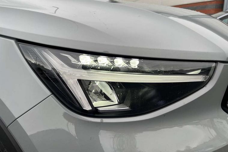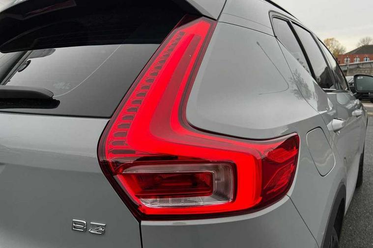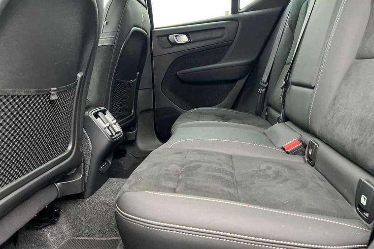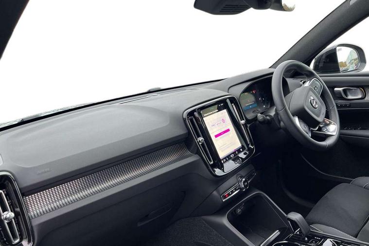 12.3" Progressive Driver Display, 9" centre console portrait touch screen, Adjustable steering wheel force, Apple carplay (wired), Bluetooth handsfree system, Cruise control, Driver alert control, Driver awareness - Blind spot information system with steer assist, cross traffic alert with autobrake and rear collision warning and mitigation, E-call, Front park assist, Google automotive services - Enabled entertainment apps, navigation with google maps, voice recognition with google assistant, Hands free power tailgate, Intelligent speed assistance, Lane keeping aid, Oncoming Lane Mitigation, Rear park assist, Rear park assist camera, Speed sensitive steering, Volvo cars services with app - Driving journal, emergency and breakdown call, engine remote start, remote door locking/unlocking and vehicle dashboard, Wireless/Inductive Mobile Phone Charging, Automatic transmission with start/stop and manual change functions, Dynamic chassis, DAB Digital radio, High performance sound, 8 speakers/250W, 2 front type C and 2 rear type C USB, Steering wheel mounted remote controls, Adaptive brake lights with high level LED brake lights, Auto dimming feature for exterior door mirrors, Auto dimming interior mirror, Automatic headlamp levelling, Automatic LED Headlights + Active high beam incorporating daytime running lights, Front aluminium tread plates, Front and rear electric windows, High gloss black front and rear skid plate, High gloss black front bumper deco, High gloss black mesh front grille with high gloss black surround, High gloss black window trim, Home safe and approach lighting, Integrated roof rails in high gloss black, LED front fog lights, Puddle lights, Rain sensor with automatic windscreen wiper activation, Rear side wing doors, Rear wiper, Roof antenna, Roof spoiler, Visible VIN plate, 12V socket in front tunnel console and luggage compartment, 2-Zone electronic climate control with CleanZone air quality system and pollen filter, 3 seat bench in 2nd row, 3 Spoke tailored steering wheel with chrome trim, 60/40 versatile split folding rear seat, A-pillar parking ticket holder, Centre console cupholders and storage, Charcoal headlining, Connect textile/microtech upholstery, Flexible load floor and grocery bag holder, Floor mats, Front cabin courtesy lights, Front door pocket, front cupholder, ambient front door, rear reading, rear courtesy, instrument panel and tailgate lighting, Front footwell illumination, Front headrests, Front reading lights, Front seat cushion extensions, Front side step illumination (under door), Glovebox bag hook, Heated front seats, Height adjustable passenger seat, Height/reach adjustable steering column, High gloss centre tunnel deco, Illuminated glovebox, Illuminated luggage compartment, Illuminated vanity mirrors + ticket holder, Integrated waste bin, Isofix attachments on outer rear seats, Load cover, Load protection net, Multi directional lumbar support for driver and passenger seat, Power driver seat with memory + exterior mirrors memory, Rear armrest with cupholders, Rear headrests, Single front passenger seat, Underfloor cargo storage, Climate pack without heated front seats - XC40, 3x3 point rear seatbelts, City safety with steering support with Pedestrian + cyclist + front collision warning with full auto brake and rear auto brake, Driver and passenger airbags, Drivers knee airbag, Electronic parking brake with auto hold, First aid kit, Front and outer rear seatbelt reminder and pretensioners, Front seats SIPS airbags, Hill descent control, Hill start assist, Inflatable curtain, Passenger airbag cut-off device, Power child locks on rear doors, Road sign information display, Run off Road Protection, SIPS (Side Impact Protection System), Slippery road and hazard light alert, Stability and Traction Control with Spin control, Engine Drag Control and Corner Traction Control, Tyre pressure monitoring system, Vehicle deceleration control with Anti-lock Brake System, Electronic Brake Distribution and Emergency Brake Assist, Warning triangle, WHIPS whiplash protection system - front, 2 x Key integrated remote control central locking including with deadlocking system and auto open/close windows, Anti-theft alarm including immobiliser/volume sensor + level sensor, Keyless drive includes keyless entry and keyless start, Locking wheel nuts,