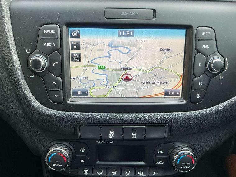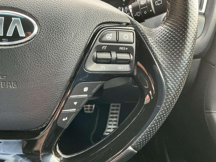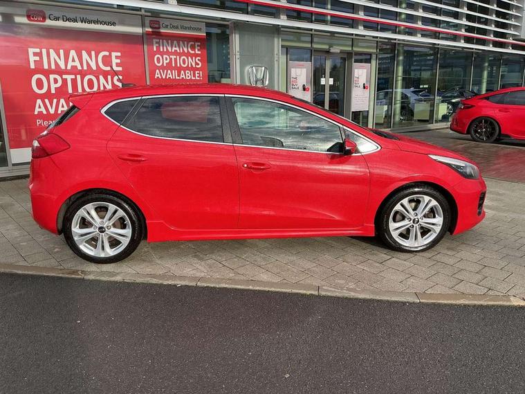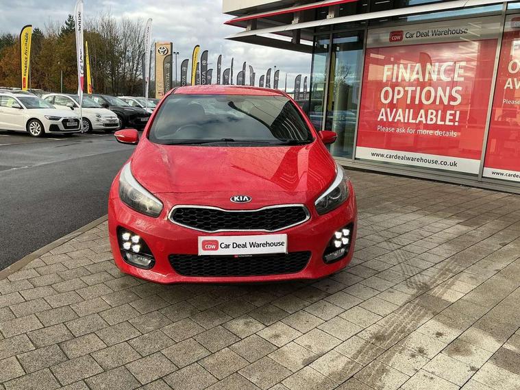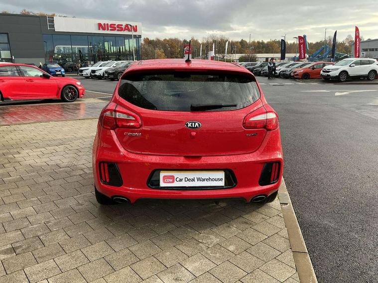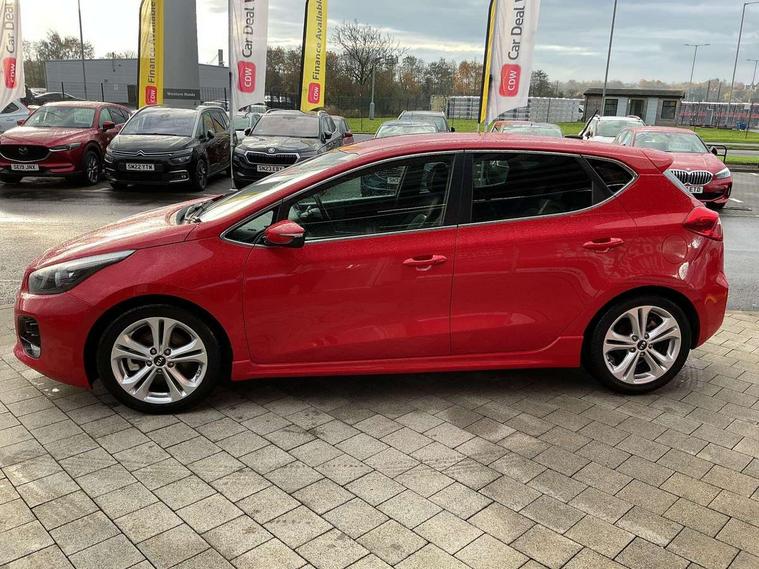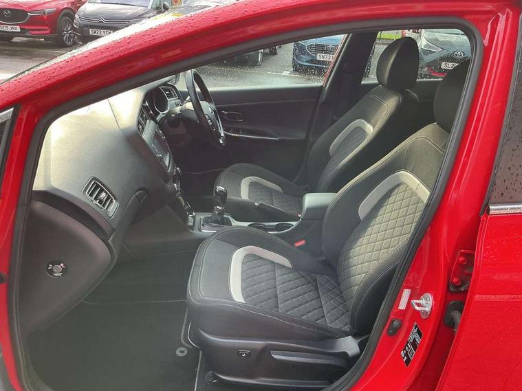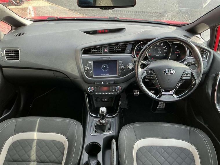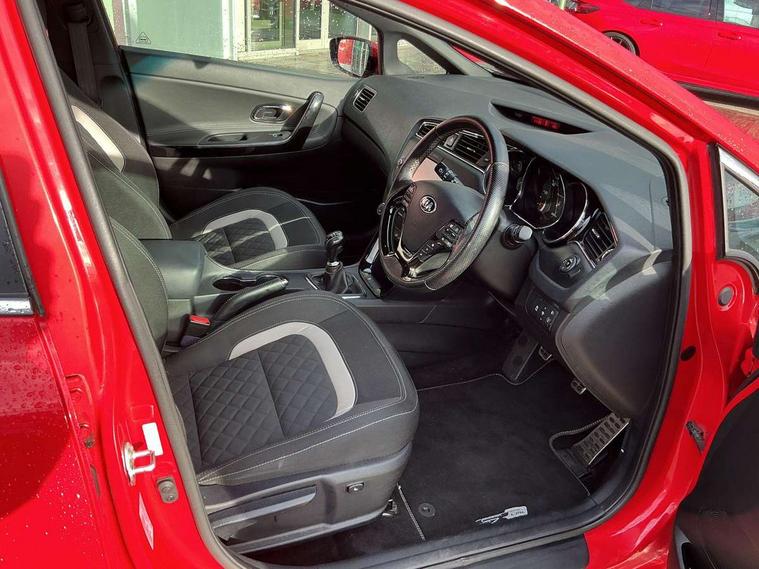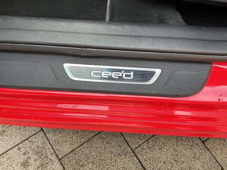 7" touchscreen full map navigation system with TomTom Connected Services, Cruise control + speed limiter, Digital clock with date indicator, Electric power steering, Emergency stop signalling system, Flex Steer variable steering settings, Instrument cluster in chrome, Internal fuel flap release, Kick down switch, Low screen washer fluid warning, Multi function display colour screen, Outside temperature gauge, Rear parking sensor, Rear view camera, Service interval indicator, Start/stop button with aluminium finish, Trip computer, Diesel particulate filter, Intelligent Stop and Go, 6 speakers, Bluetooth audio streaming, DAB Radio/CD + MP3, Steering wheel mounted audio controls, USB and auxiliary socket, Auto dimming rear view mirror, Automatic defog system, Automatic headlights, Body colour bumpers, Body colour door handles, Body colour door mirrors, Chrome window surround, Cornering light, Dual projection headlights, Electric adjustable/heated/folding door mirrors, Electric front/rear windows/one touch facility, Follow me home headlights, Front fog lights, Headlamp levelling, Heated rear window with timer, Illuminated front door handles, LED indicators in door mirrors, LED rear lights, Privacy glass, Puddle lights, Rain sensing front wipers, Rear spoiler, Rear wash/wipe, Tinted glass, Wide angle door mirrors, Windscreen wiper de-icer, 12V power socket in front console (x2), 12V socket in luggage compartment, 3 passenger grab handles, 5 height adjustable headrests, 60/40 split folding rear seat, Black headlining, Centre console storage box, Centre console storage box/armrest, Chrome interior door handles, Cupholders in centre console, Driver + front passenger electric lumbar support, Driver and passenger illuminated vanity mirror, Driver's sunvisor with ticket holder/vanity mirror, Driver/front passenger seat height adjustment, Dual zone automatic air conditioning, Front map light with sunglasses case, Front seat and rear pockets, Gear shift indicator, Illuminated air conditioned glovebox, Illuminated front centre console tray, ISOFIX top tethers and lower anchor points, Leather handbrake, Load area cover, Luggage area lamp, Luggage area underfloor compartment, Luggage net, Rear centre armrest with cupholders, Rear coat hooks, Rheostat dimmer switch, Stainless steel pedals, Stainless Steel Scuff Plates, Storage bins on all doors, Tilt/telescopic adjustable steering wheel, Exterior styling pack - Cee'd GT Line/GT Line S, Interior styling pack - Cee'd GT Line/GT Line S, 3 point seatbelts on all seats, ABS/EBD, Automatic unlocking of doors in case of impact, Curtain airbags, Dual horn, ESC + BAS + VSM + HAC, Fasten seatbelt reminder, Front passenger airbag deactivation, Height adjustable front seatbelts, Rear door child safety locks, Traction control, Twin front and side airbags, Tyre pressure monitoring system, Alarm system, Deadlocks, Immobiliser, Locking wheel nuts, Smart keyless entry, Speed sensitive auto door locking, Black high gloss front console tray garnish & door trim, Black nano centre fascia, Chrome air vent surrounds, Faux leather front door trim, 17" Alloy wheels, Temporary spare wheel,