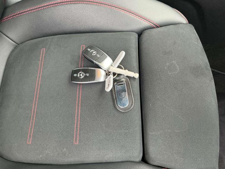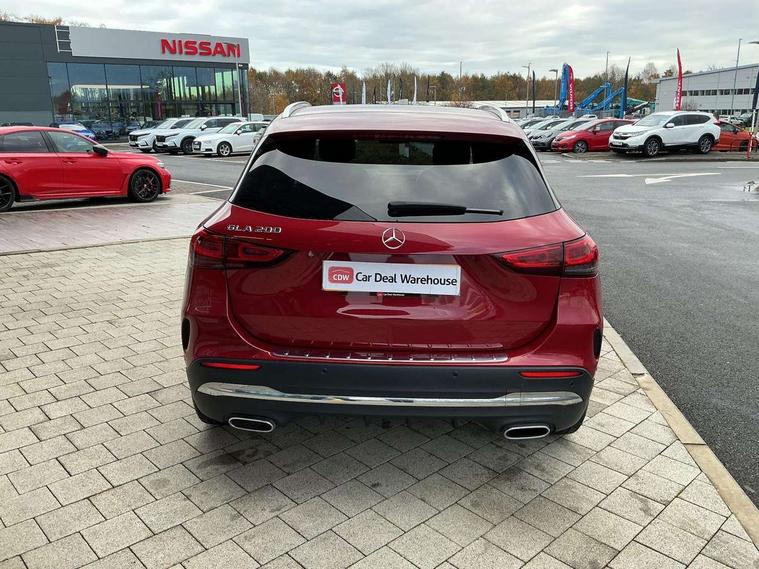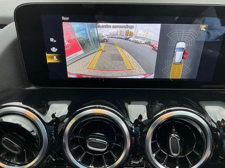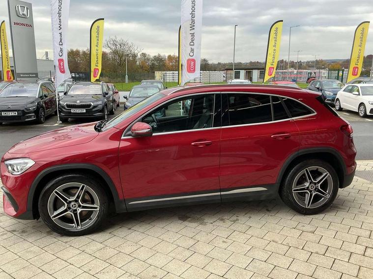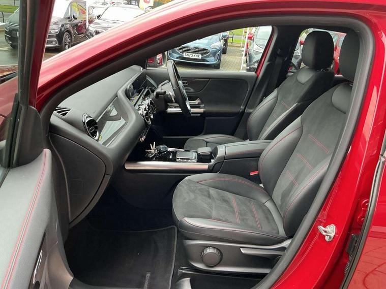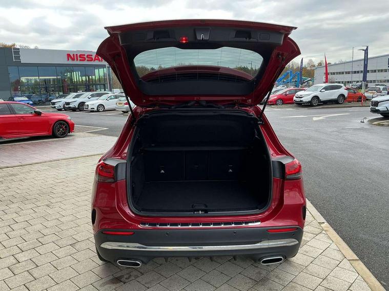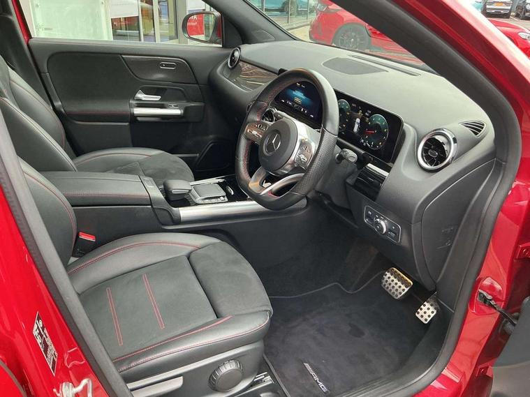 10.25 inch touchscreen central media display, 10.25" Digital instrument cluster display screen, Active lane keeping assist, Attention assist, Cruise control + speed limiter, Direct steering, DYNAMIC SELECT with a choice of driving modes (ECO, Comfort, Sport and Individual), ECO start/stop function, Fluid level warning indicator for fuel, oil, coolant and washer fluid, Hard-disk navigation, Hey Mercedes Voice activation, Lamp failure indicator, Mercedes me connect including emergency call system, accident recovery, breakdown and maintenance management, Mercedes me remote services, Multi function trip computer, Outside temperature gauge, Owners manual and service booklet in English, Pre-installation of private car share, Radio aerial integrated into front and rear windshields, Service indicator (ASSYST), Smartphone integration with Apple CarPlay and Android auto, Speed limit assist, Status display for rear seat belts in instrument cluster, Lowered comfort suspension, Rear axle multi-link, 2 USB ports (type C) in rear stowage compartment and one in front of center console, Bluetooth connectivity including audio streaming, DAB Digital radio, MBUX multimedia system, Media interface, Mercedes-Benz sound system - 100W, Adaptive brake lights, Aerial for GPS, Aluminium roof rails, AMG front and rear apron, AMG specific/dual flow exhaust pipes in chrome (non-functional), Automatic headlamp activation, Beltline strips and weather strip in chrome, Black grained claddings with chrome parts, Body colour bumpers, Body colour door handles, Body colour door mirrors, Car wash function, Dark privacy glass from B-pillar backwards, Electric front windows, Electric rear windows, Electrically adjustable and heated door mirrors with integrated LED indicators, Front bumper with underride guard in high gloss chrome, Heated glass rear windscreen + timer control, Heated windscreen wash system, Interior mirror with black reading lamps and frameless, LED high performance headlamps with integrated LED daytime running lights, LED tail lights in two piece design, LED third brake light, Matt titanium grey front and rear apron trim, Rain sensor windscreen wipers, Rear fog lights, Rear side wing doors, Rear wiper, Roof spoiler, Single lamella raditor grille with chrome dotted diamond grille and inlay, 12V power socket in centre console, 3 seat bench in 2nd row, 3 spoke multifunction sports steering wheel in nappa leather with flattened bottom and perforated grip area, 40:20:40 split folding rear seat backrests, Adjustable head restraints, Air conditioning - Two zone thermotronic luxury automatic climate control with display, Ambient lighting in front headrests, AMG floor mats in black with AMG lettering in front, Artico man-made leather/Microfibre Dinamica upholstery with red contrast stitching, Auto Mercedes-Benz child seat recognition sensor, Black roof lining, Brushed door pulls in silver chrome, Courtesy light in boot, Front centre armrest with stowage, Galvanished gear shift paddles on steering wheel, Heated front seats, illuminated door sills with changeable cover, Illuminated glovebox, Interior lighting - 64 colour Ambient lighting, Leather trimmed gearknob, Luggage net on driver/front passenger seat backrest, Manually height and reach adjustable steering column, Multi-gesture touchpad control on center console, Single front passenger seat, Sports pedals in brushed stainless steel with black rubber studs, Sports seats, Stowage compartment in centre console, Stowage compartment with retractable cover, Sunvisors with illuminated vanity mirrors, Twin front cup holders, Two outer rear seat isofix and top tether child seat fixing points, AMG body styling pack - GLA, Comfort seat pack - GLA Class, Interior lighting with light and sight pack - GLA, Load compartment pack - GLA, Mirror pack - GLA Class, Parking pack - GLA, 3 rear 3 point seatbelts, ABS with Brake Assist, Active bonnet pedestrain safety measure which detects an impact and raises bonnet by 65mm, Active brake assist includes forward collision warning system with autonomous braking, Adaptive brake assist with hold function and hill start assist, Bonnet with power domes, Brake pad wear warning indicator, Childproof locks manually operated for rear doors and electrically operated for rear power windows, Crash responsive emergency lighting, Driver and passenger head and side airbags, Drivers knee airbag, Dual stage driver/passenger airbags, Electronic parking brake, ESP curve dynamic assist, ESP with ASR, Front and rear seatbelt reminder, Front brake callipers with Mercedes Benz logo lettering on front, Front brake discs internally ventilated and perforated, Front passenger seat occupancy sensor, Sports braking system, Tyre pressure monitoring system, Warning triangle and first aid kit, Window airbags, Alarm system with immobiliser and interior protection -Thatcham category 1, Keyless Go starting function, Remote central locking and crash sensor with emergency opening function, Urban guard vehicle protection, Vehicle key with decorative surround in chrome, Carbon structure trim, Chrome air vent surrounds, 19" AMG 5 twin spoke light alloy wheels painted in high gloss black with high sheen finish, Summer tyres, Tirefit tyre sealant kit,