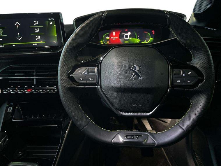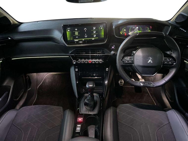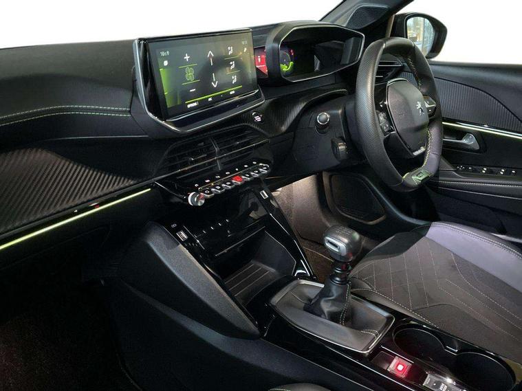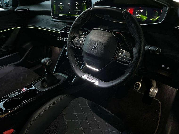 10" Capacitive colour touchscreen with connected 3D navigation, Blind spot monitoring, Bluetooth telephone facility, Driver attention warning, Exterior temperature indicator with ice warning, Lane keep assist, Mirror screen with mirror link, apple carplay and android auto, Multi function trip computer, PEUGEOT i-Cockpit with compact steering wheel, PEUGEOT i-Cockpit with configurable 3D headup instrument panel, PEUGEOT SOS and assistance, Push button start, Smart phone docking station, Speed limit recognition and recommendation, Start/stop system, Visio park assist 180 with colour reversing camera + front and rear parking sensor, 2 front USB socket with USB-C, 2x USB sockets in rear, 6 speakers radio with mp3 compatible, DAB Digital radio, Voice recognition for radio, navigation and telephony features, 2 X Rear number plate lights, Automatic hazard light activation upon heavy brake application, Automatic lights, Automatic windscreen wipers, Body coloured exterior door handles, Dark tinted rear side and tailgate windows, Diamond black rear spoiler (roof), Diamond Black roof, Electric front windows + one touch + anti-pinch, Electric rear windows with one touch/anti-pinch, Electrically adjustable, heated and power folding door mirrors, Follow me home headlights, Frameless electrochrome interior rear view mirror, Full LED headlights with smartbeam assist, Gloss black finish on B pillar, Gloss black rear cluster connecting strip, Gloss black wheel arch extensions, Gloss black window surround, GT model designation badging on C pillar, GT model designation badging on tailgate, Headlights left on audible warning, LED daytime running lights with 3 claw headlight with distinctive tooth design, LED side indicator lights integrated into door mirrors, LED third brake light, Model designation badges front and rear, Nera black door mirror shells, Peugeot scuff plates, Radiator grille - Dark chrome chequered and gloss black edge trim, Rear bumper with gloss black finish, Rear full LED 3D peugeot signature claw effect lights with daylight function, Rear lower bumper diffuser effect trim in gloss black, Rear reversing lights, Rear side wing doors, Rear windscreen wiper triggered automatically in reverse gear, Roof mounted aerial with fin design, Roof spoiler, Single exhaust tailpipe, Tailgate with heated rear windscreen and wiper blade, Variable front intermittent wipers, 1/3 to 2/3 split folding rear seats, 12V socket, 3 seat bench in 2nd row, 8 Colour personalisable ambient lighting, Aluminium pedals and foot rest, Automatic air conditioning, Driver and front passenger seat manual adjustment in longitudinal and back rest angle, Driver and front passenger seat mechanical height adjustment, Driver and front passenger sport seats, Electric power steering with reach and rake adjustable steering column, Front and rear carpet mats in black with lime green stitch detail, Front centre armrest with storage compartment, Front LED interior light with 2 reading spotlights and rear interior light with timer, Gear shift indicator, High centre console with 2 cup holders, ISOFIX child seat mounting points on passenger seat, Lime green contrast stitching to armrest, front centre console, door panels and dashboard facia, Map pockets on the backs of the front seats, Mistral full grain perforated leather steering wheel with aikinite stitch detail and satin chrome 'GT' emblem, Piano keys gloss black plated toggle switches to access main functions of the vehicle, Piano keys gloss black plated toggle switches to access touchscreen functions, Rear centre headrest, Roof lining - Mistral black, Satin chrome gear lever, Seatbelt unfastened on the move audible and visual alert for front and rear seats, Single front passenger seat, Drive assist pack - 208, 3 rear 3 point seatbelts, ABS (Anti-lock Braking System) with EBD (Electronic Brakeforce Distribution) and EBA (Emergency Braking Assistance), Active safety brake with night function/cyclists/pedestrians, Adaptive driver and front passenger airbags with passenger airbag deactivation function, Child locking functionality on rear doors, Driver/front passenger side airbags, Electric parking brake, ESP with Hill Assist, Front and rear curtain airbags, Front and rear disc brakes, Front optimised safety headrests and 3 x rear retractable headrests with height adjustable, Front three point retractable seatbelts with force limiters, Tyre pressure sensor, Acoustic vehicle alert system (AVAS), Automatic door locking when moving off, Deadlock, Electronic code immobiliser, Peugeot Open and Go System, Remote central locking, Thatcham cat. 1 alarm with anti lift sensor, Carbon effect Dashboard, front and rear door panel finish, 17" Bronx two-tone alloy wheels, Space saver spare wheel,