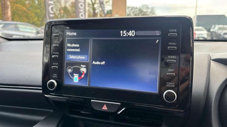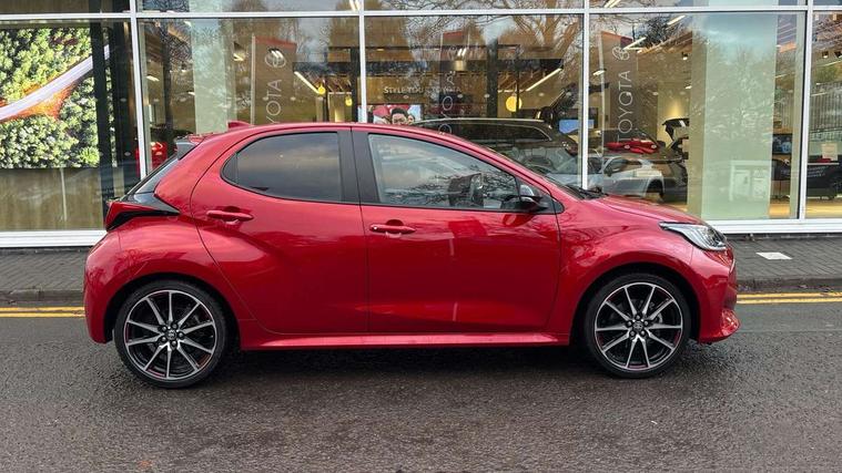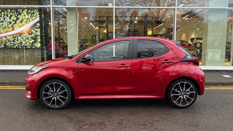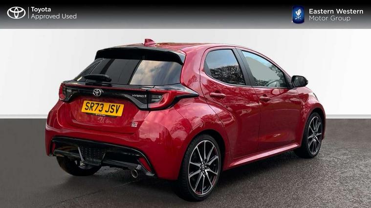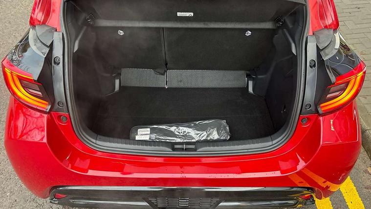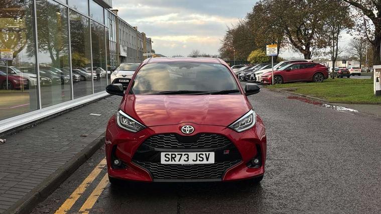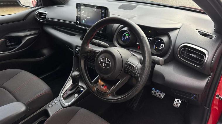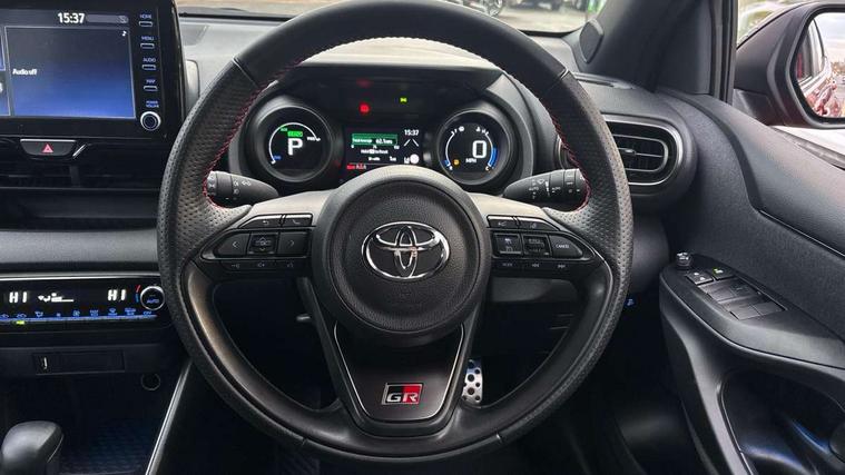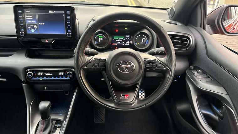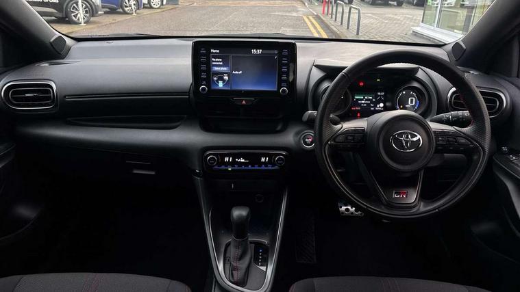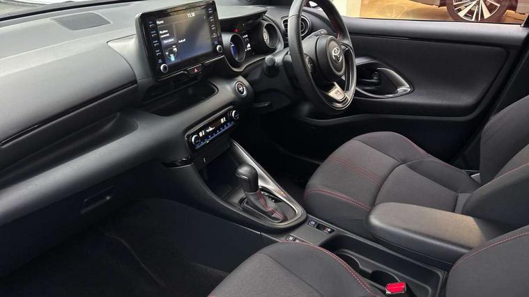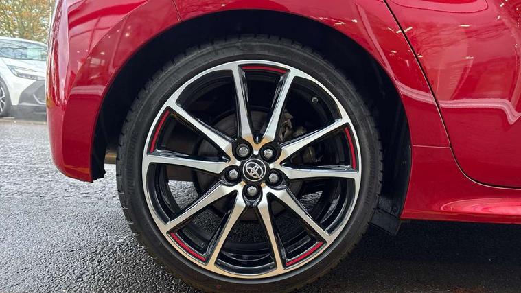 Adaptive cruise control, Adjustable speed limit with speed warning, Bluetooth connectivity, Colour binocular inspired displays with digital speedometer, E-call, Electric power steering, Hybrid energy display, Multi information display switches on steering wheel, Reversing camera, Smartphone integration with Apple CarPlay and Android auto, Tailgate, Voice recognition, Vehicle Stability Control (VSC), 6 speakers, 8" Multimedia display touch screen, Toyota Touch 2 with DAB, USB connection, Acoustic windscreen glass, Auto windscreen wipers, Automatic headlights, Body coloured door mirrors, Dark chrome lower front grille, Electric adjustable heated door mirrors, Follow me home headlights, Front auto power windows with anti jam protection, Full LED rear lights, LED daytime running lights, LED front fog lights, LED front light guide, LED Headlights, LED High mounted stop lamp, LED Indicators, LED rear light guide, Manual headlight levelling, Painted chequered front grille with hot stamp in mesh design, Rain sensor, Rear auto power windows with anti jam protection, Rear privacy glass, Rear side wing doors, Rear spoiler, Rear wiper, Shark fin antenna, Turning signal integrated indicators in door mirrors, Variable front intermittent wipers, 3 adjustable rear headrests, 3 seat bench in 2nd row, 3 spoke leather steering wheel, 60/40 split folding rear seat, Active headrests, Adjustable boot height, Black roof lining, Coat hooks in rear grab handles, Cup holders (2 front & door), Data Communication Module (DCM) connected services, Dual zone automatic air conditioning, Fabric upholstery with red stitching, Front armrest, Front sport seats, Glovebox, Height adjustable driver's seat, Height adjustable passenger seat, Isofix seat fixing, Leather gearshift, Map pockets on the backs of the front seats, Pollen filter, Shopping bag hooks, Single front passenger seat, Tilt/telescopic steering column, 3 point seatbelts on all rear seats, ABS+EBD+Brake assist, Electronic parking brake, Emergency brake light system (EBS), Front passenger airbag on/off switch, Front seatbelt reminder, Hill start assist control (HAC), Rear child proof door locks, Rear seat belt reminder, Supplemental Restraint System (SRS) 8 airbags: Driver & passenger's airbags, dual side curtain airbags, side impact airbags, front centre airbag, Toyota Safety Sense 2, Precollison + Night time Pedestrian & Cyclist Detection, Lane Trace Assist, Auto High Beam, Intelligent ACC & Road Sign Assist, Tyre pressure warning system, 2x Master key, Alarm/immobiliser, Keyless smart entry with push button start, Remote AC via MyT, Remote locking via MyT, Remote powered central double locking doors, GR Sport interior styling with accents and exterior styling, Piano black interior trim, Soft touch instrument panel, 18" machined face alloy wheels with GR Sport red deco lines, Space saver spare wheel,