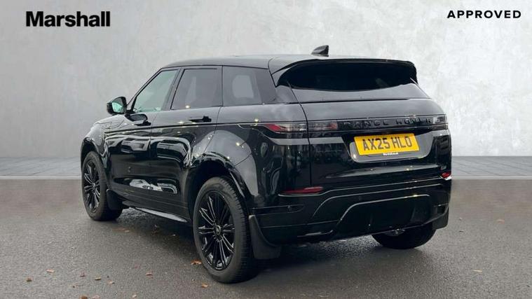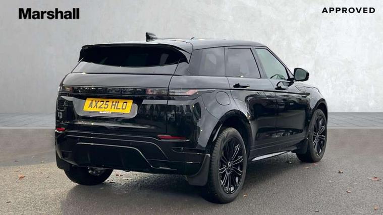 11.4" touch screen, 3D 360 degree surround camera with wade sensing, Adaptive cruise control, Android Auto, Apple car play, Blind spot assist, Bluetooth connectivity, Brake pad wear indicator warning light, Driver condition monitor, eCall emergency system, Eco mode, Electronic power assisted steering (EPAS), Front and rear parking sensors with auto brake, InControl remote, Interactive driver display, Land Rover InControl apps, Lane keep assist, Pivi pro connected includes diamond pivi variant, smart settings, connected navigation pro, nuance speech licence, Powered tailgate/boot lid, Rear collision monitor, Rear traffic monitor, Tailgate, Traffic sign recognition with adaptive speed limiter, Voice control system, Wireless device charging, All terrain progress control, Diesel exhaust fluid (DEF) large tank, Efficient Driveline, Large fuel tank, Terrain Response 2, Digital Audio Broadcast radio-DAB, Meridian surround sound system with 650W subwoofer and 14 speakers, Steering wheel mounted controls, Acoustic laminated windscreen, Auto headlights, Automatic headlight levelling, ClearSight interior rear view mirror, Electric windows with one touch open/close and anti trap, Flush deployable exterior door handles, Front and rear recovery eyes, Heated rear window with timer, Heated washer jets, Heated windscreen, Pixel LED headlights with signature DRL and LED tail Lights, Power fold, auto-dimming, heated door mirrors with approach lights and auto dimming driver side, Rain sensing windscreen wipers, Rear animated directional indicators, Rear fog lights, Rear side wing doors, Rear wiper, Side repeater indicators in mirror, Sliding panoramic roof with powered sunblind, Tailgate spoiler, Third brake light, Winter wiper park position, 14 way driver memory electric front seats with 2 way manual headrests + 4 way lumbar support, bolsters, 40:20:40 split folding rear seats with centre headrest and armrest, Ambient interior lighting, Bright metal pedals, Carpet mats, Customer configurable single point entry, Electrically adjustable steering column with memory function and easy entry/exit, Front and rear cupholders, Heated steering wheel, Isofix system on outer rear seats, Overhead lighting console, Overhead stowage for sunglasses, Passive front head restraints, Rear air vents, Rear head restraints, Satin chrome gearshift paddles, Single passenger seat, Sunvisors with illuminated vanity mirrors, Twin sliding front centre armrest, Power socket pack 2 - Evoque, 3 rear 3 point seatbelts, Anti-lock braking system (ABS), Brake hold function, Customer configurable autolock, DSC - Dynamic Stability Control, Electronic brake force distribution, Electronic parking brake, Electronic traction control, Emergency braking, Front and rear seatbelt reminder, Hill descent control, Hill launch assist, Low traction launch, Occupant protection assist, Passenger seat occupant detector, Power operated child locks, Roll stability control, Six airbags - Driver and passenger airbags/driver knee airbag/front side airbag and curtain airbags, Torque vectoring brake, Tyre pressure monitoring system, Alarm, Immobiliser, Intrusion sensor, Keyless entry, Locking wheel nuts, All season tyres,