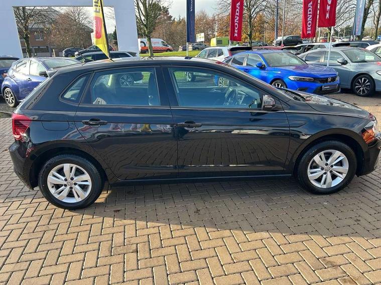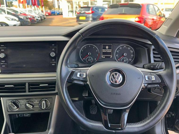App-Connect, Bluetooth Telephone preparation, Discover navigation + European map data, Driver alert system, Multifunction colour display, PAS - speed related, Service interval indicator, Start/stop system, Trip computer, Warning buzzer and light for front seatbelts unfastened, Battery regeneration during braking, 6 speakers, Composition media system with radio, glovebox mounted CD, colour touch screen, SD card, aux-in, USB, multimedia interface, DAB Digital radio, Black grille with chrome surround, Black radiator grille with chrome insert, Body colour bumpers, Body colour door handles, Body colour rear spoiler, Body coloured side sills, Electric front windows, Front wash/wipe with interval delay, Fully galvanised body, Heat insulating tinted glass, Heated rear window with auto timer, High level 3rd brake light, LED daytime running lights, LED rear number plate lights, Rear electric windows, Rear windscreen washer and wiper with interval delay, 12V power socket in centre console, 2 bag hooks in luggage compartment, 2 cupholders, 3 rear head restraints, 3 spoke steering wheel, 4 grab handles, 60/40 split folding rear seat, Centre console storage, Chrome interior door handles, Chrome plated light switch, Driver/front passenger seat height adjustment + underseat drawers, Driver/passenger sunvisors with illuminated vanity mirrors, Dust/pollen filter, Front door pockets, Front seat backrest storage nets, Front/rear reading lights, Gear lever gaiter in high glass black trim surround, Glovebox, Handbrake grip button in chrome effect, Height/reach adjustable steering column, Instrument lighting, white adjustable panel illumination, Interior light with delay, Isofix Preparation 2 Rear child seats, Jack and tool kit, Luggage compartment cover, removable, Luggage compartment lighting, Multifunction leather steering wheel with leather gear knob/handbrake grip, Storage compartment in front doors, Storage compartment in rear doors, Storage compartment under front seats, Sunglasses holder, Variable boot floor, Variable Luggage compartment, Light and sight pack - Polo, 3 point height adj front seatbelts + pretensioners, 3x3 point rear seatbelts, ABS, Automatic post collision braking, Driver/front passenger airbag, Driver/Passenger whiplash optimised head restraints, ESP with EDL + ASR, Front and rear passengers curtain airbag system including front side airbags, Front disc brakes and rear drum brakes, Front passenger airbag deactivation, Hill hold control, Hydraulic Brake Assist (HBA), Two tone horn, Tyre pressure monitoring system, Alarm with remote central locking and interior protection, Electronic engine immobiliser, Air vents in High gloss black, Black high gloss trim, Full size spare wheel,