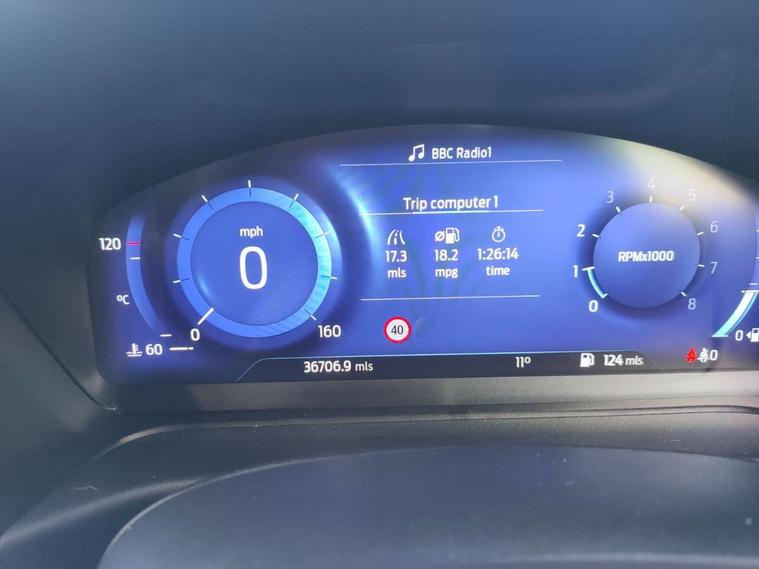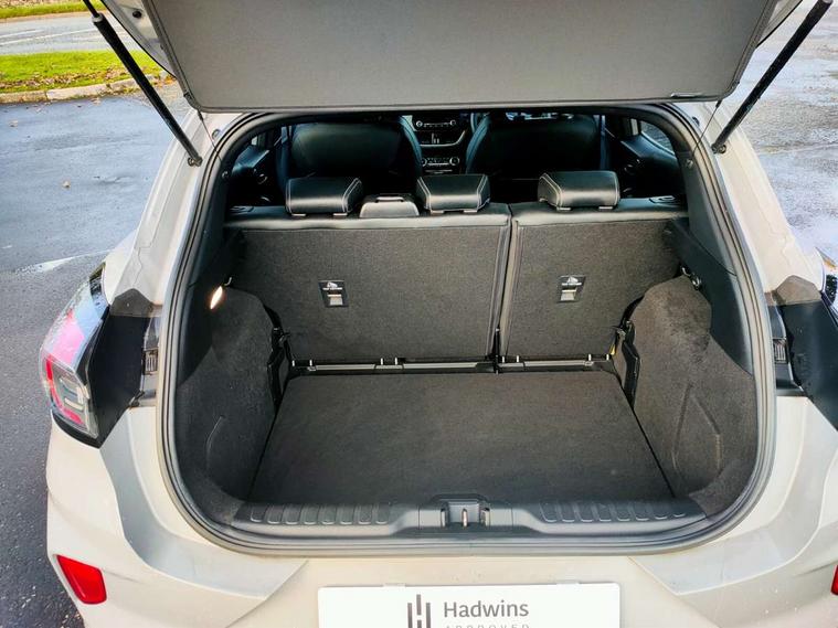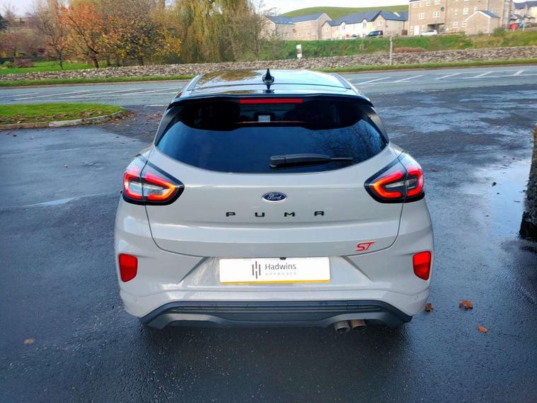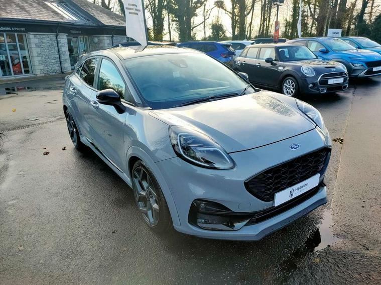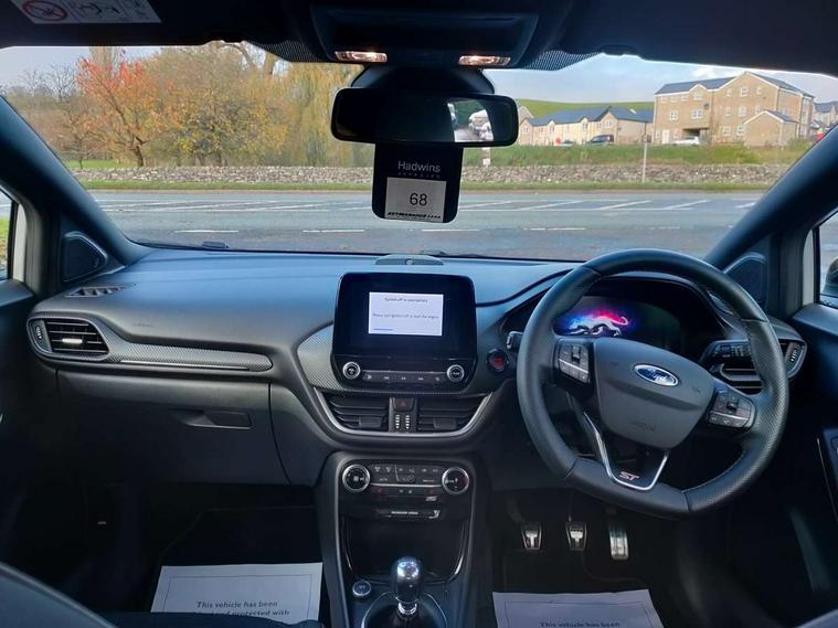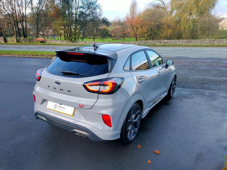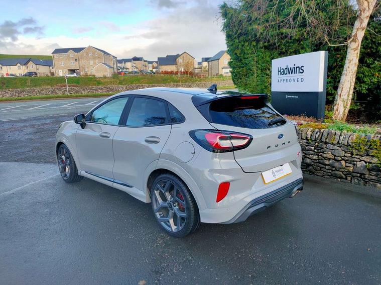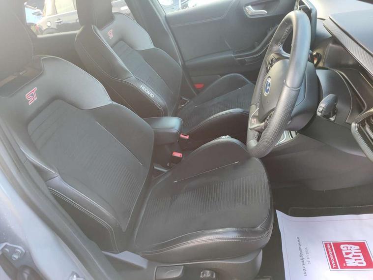 Cruise control, Ford easy fuel, Front parking sensor, Full digital 12.3" instrument cluster, Lane keeping aid with lane departure warning, Power assist steering, Power start button, Rear parking sensor, Selectable drive modes (normal, sport, eco, track), Wireless charging pad, Engine sound enhancer, ST suspension, Automatic headlights with rain sensing wipers and auto high beam, Black door mirrors, Dual chrome exhaust, Fixed LED headlamps, Front fog lights with cornering lights and LED rear lamps, Gloss black with chrome elements on front and rear bumpers, High chrome waistline, LED daytime running lights, Power foldable heated door mirrors with puddle lamps, Privacy glass to side rear windows and tailgate glass, Quickclear heated windscreen, Rear wiper, ST scuff plates, Unique ST elements to front and rear body styling kit including Ford Performance embossed splitter, Alloy sports pedals, Centre console with armrest and stowage, Ford megabox extended bootspace, Front and rear floor mats, Front and rear head restraints, Heated front seats, Heated steering wheel, Lumbar massage for driver and passenger, Manual air conditioning, Premium sensico wrapped instrument cluster, Recaro sport seats partial leather upholstery, ST flat bottomed steering wheel with metal grey stitching, ST logo projection, Unique ST gear shift knob, Wireless charging pad with electronic air temperature control (EATC), B&O Premium Audio system + Ford SYNC 3 navigation pack - Puma, 3 rear seatbelts, Electronic stability control (ESC) and hill start assist, Pre-collision assist with autonomous emergency braking, pedestrian/cyclist detection & post-collision braking, Red brake calipers, Tyre pressure monitoring system (TPMS), Thatcham alarm, Carbon look interior deco spears, Tyre inflation kit,