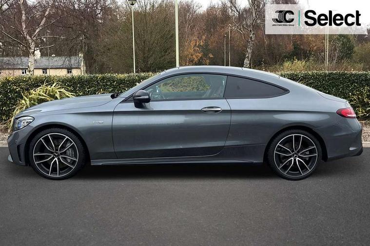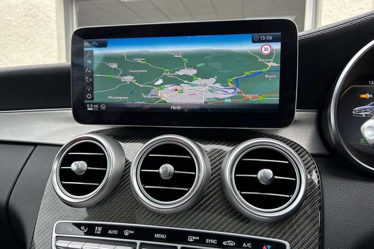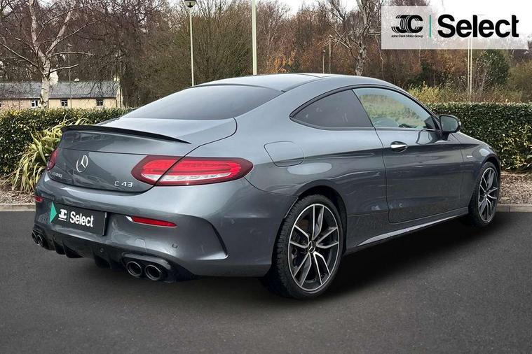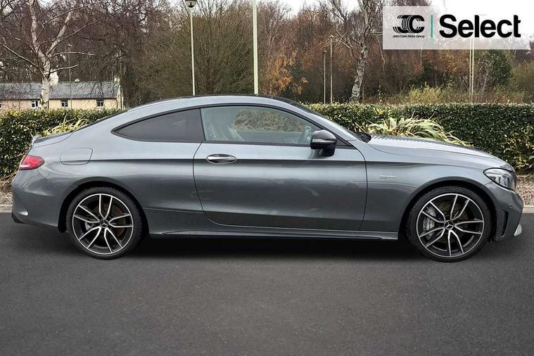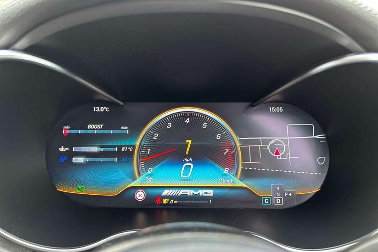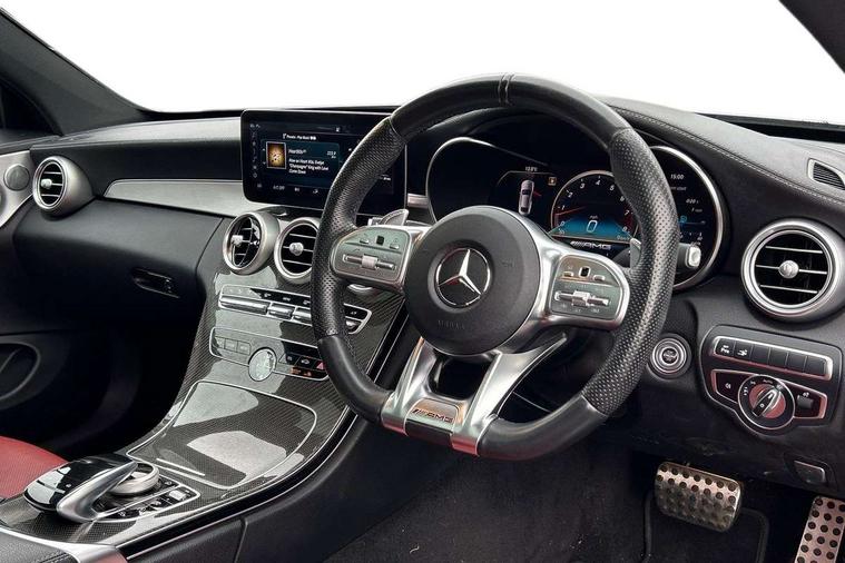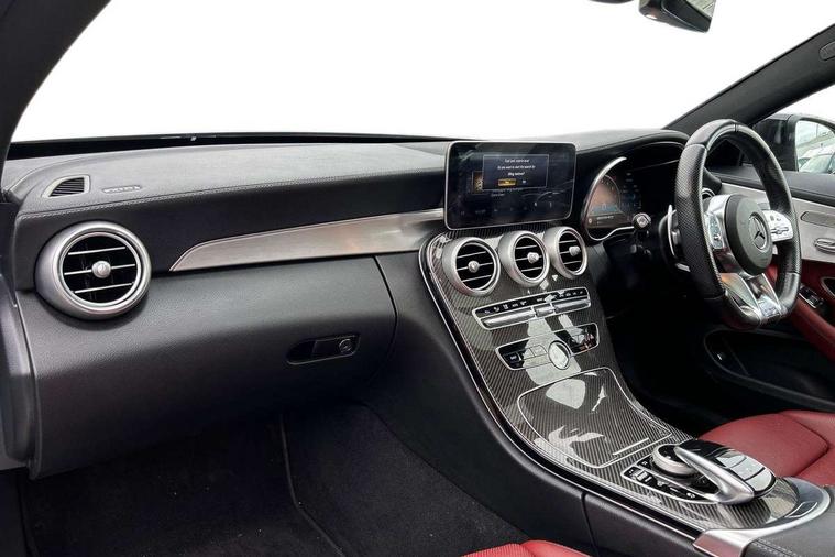 12.3" digital instrument cluster display, 2 stage speed sensitive sport steering, Active park assist with parktronic system, AMG boot logo in central screen, Attention assist, Bluetooth interface for hands free telephone, Collision prevention assist plus, Comand Online HDD Nav with media interface, radio/CD/DVD/MP3, 10.25 screen, linguatronic voice control, DYNAMIC SELECT with a choice of driving modes (ECO, Comfort, Sport, Sport+ and Individual), ECO start/stop function, High resolution 10.25" multimedia colour display, Instrument cluster with 5.5-inch TFT multi-function display, Mercedes me connect including emergency call system, accident recovery, breakdown and maintenance management, Multi function trip computer, Outside temperature display, Pre-wiring for SD navigation system, Remote boot release, Reversing camera, Service indicator (ASSYST), Status display for rear seat belts in instrument cluster, Wireless charging, 66l fuel tank with increased capacity, 9G Tronic plus 9 speed automatic, AMG performance 4MATIC with torque control distribution, AMG Ride Control sports suspension, Petrol Particulate Filter, Burmester surround sound system, DAB digital radio tuner, Frontbass loudspeakers, Mid-range sound system, SD card slot, Two USB ports and one SD Card slot in centre console, Adaptive brake lights, AMG bodystyling - front apron with distinctive air intakes and AMG rear apron with diffuser look, AMG boot lid spoiler in body colour, AMG design radiator grille with double louvre in matt iridium silver with AMG lettering, AMG performance exhaust system, Body coloured bumpers, Door sill panels with AMG lettering, Electric panoramic glass sunroof, Electric windows with one touch opening/closing and obstruction sensors, Exterior mirrors heated and electronically adjustable, Full LED tail lamps, Green tinted glass, LED daytime running lights, LED Indicators, LED third brake light, Multi beam LED headlights, Privacy glass (rear side windows and rear screen), Radio aerial integrated into rear window, Rain sensor windscreen wipers, Side windows surround in polished aluminium, V8 Bi-Turbo 4Matic badge on front wings, 2 cupholders in front centre console, 2 rear head restraints, 3 spoke flat bottom multi-function sports leather steering wheel in black with topstitching in red, 40:20:40 split folding rear seats, Ambient lighting, AMG sports seats, Auto Mercedes-Benz child seat recognition sensor, Black floor mats with AMG lettering, Electrical height and back adjustment front seat, Front centre armrest with storage compartment, Front head restraints, Front LED reading lights, Heated front seats, Height/reach adjustable steering column, Illuminated glove compartment stowage, Leather upholstery, Sports pedals with stainless steel surfaces and rubber studs, Steering wheel gearshift paddles, Steering wheel touch control buttons for audio and onboard settings, Sunvisors with illuminated vanity mirrors, THERMATIC 2 zone automatic climate control, AMG night package - C Class, Interior lighting package - C Class, Keyless go comfort package - C Class Coupe, Mirror package - C Class, Parking package with 360 degree camera - C Class, Seat comfort pack - C Class, Stowage space pack - C Class, 2 rear seatbelts, 3 point automatic seatbelts, Active bonnet, Adaptive brake system with hold function, hill start assist and brake drying function, Anti-lock braking system (ABS), Automatic seatbelt pretensioner for driver and front passenger, Brake calipers with AMG lettering + perforated brake discs, Dual stage airbags - driver and front passenger, front sidebags, driver kneebag, pelvis bag and windowbags for driver, front and rear passengers, Electronic parking brake, Electronic Stability Programme (ESP), ISOFIX child seat attachment points with top tether in rear, Red seat belts, Sports braking system with larger brake discs, Tyre pressure monitoring system, Warning triangle and first aid kit, Anti-theft alarm system/interior protection with tow-away protection and interior monitoring systems, Central locking with interior switch, automatic locking and crash sensor with emergency opening function, Chrome surround in electric key, Immobiliser, AMG carbon fibre trim, Artico man-made leather dashboard, Light longitudinal grain aluminium trim painted, 19" AMG 5 twin-spoke light alloy wheels with aerodynamically optimised and painted in black with a high-sheen finish, TIREFIT with tyre inflation compressor,