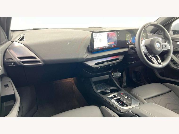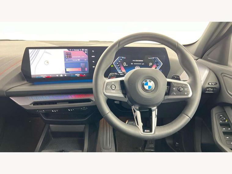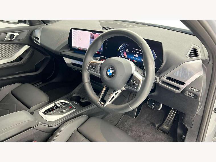 Active guard plus, Attentiveness assist, Bluetooth / WiFi interface for wireless connection of mobile terminal devices and audio streaming, BMW ConnectedDrive online services, BMW Live cockpit plus, BMW Teleservices, Check Control warning system for monitoring of lights and door/luggage compartment open warning, Eco pro mode, Electric power steering with Servotronic steering optimised at all speed ranges, Evasion assistant, Flat airvents in instrument panel with adjustable slats, Front and rear parking sensors, Front axle single joint with specific axle kinematics to minimise drive influences on steering + provide increased rigidity agile driving behaviour, Gearshift time display in manual mode, Integrated owners handbook, Left turn warning with brake function, My modes (Personal / Efficient / Sport), Oil sensor for level and grade, On board computer, Optimum shift indicator, Park assist including reversing assistant, lateral parking aid and reversing assist camera, Personal e-SIM, Personal Profile, Pull away assistant, Rigidly mounted rear subframe - Multi link construction with separate spring / damper configuration and excellent driving characteristics, Speed limit Info including no-overtaking indicator, Speed limiter, 49 litre fuel tank, Aluminium lightweight construction, Anti roll bar front and rear, Balancer shaft, Double VANOS twin scroll turbocharging system, Drive Performance Control, Electronic differential lock, Electronic selector lever, High precision injection, M Adaptive suspension, Petrol Particulate Filter, Steptronic transmission with double clutch, Twin tube gas filled shock absorbers with degressive characteristic curve, VALVETRONIC engine management, DAB Digital radio, Auto dimming rear view mirror, Automatic windscreen wipers and automatic headlight, Body colour door handles, Body colour mirror caps, Body colour roof trims, Chrome 'M' logo side designation, Chrome exhaust twin tailpipes round 90mm in left, Chrome kidney grille frame with Satin Aluminium struts, Direction indicator side lights in exterior mirrors, Electrically adjustable exterior mirror with mirror adjustment switch on drivers armrest and aspheric on driver side, convex on passenger side, Exterior M sport design elements, Fading support, Folding side mirrors with auto dimming/folding wing mirrors with auto dimming, Follow me home headlights, Front and rear bumper system with replaceable deformation elements, Front and rear electric windows with open and close fingertip control, anti trap facility and comfort closing, Front bumper panel with M specific design in vehicle colour with inserts in black high gloss, Front door sill finishers in black plastic with M designation in metallic look, Green tinted heat protection glazing, Heated rear window, High gloss black exterior mirrors, High gloss shadowline window frame, Recess cover mirror frames and B/C pillar embelisher trim, High level third brake light, Integrated front windscreen with washer jets, LED daytime running lights, LED eyebrow turn indicators, LED front fog lights, LED Headlights, Lightweight engineering, M identification on the sides, Matt black air guide grilles, Matt black wheel arch trim, Model badge on tailgate right, Nearside reverse light in rear light cluster, Preparation for high beam assistant, Rain sensor, Rear bumper panel with M-specific design in vehicle colour with inserts in black high gloss, Rear fog lights, Rear side wing doors, Rear window wiper, Shark fin antenna, Side sill covers with M specific design in body colour, Trailer stabilisation logic, Visible VIN plate, Welcome lighting, 12V power socket in front centre console with blanking plug, 3 rear seat head restraints, 3 seat bench in 2nd row, 3 spoke sports leather steering wheel with black leather and stitching, pearl chrome decorative finish, specific M Badge, Anthracite front and rear floor mats, Anthracite headlining, Black boot net with lashing eyes, Cargo function on 2nd seat row, Child seat ISOFIX attachment for two outer rear seats and front passenger seat with anchorage points, Conditioned based service, Driver and front passenger backrest net on rear, Driver and front passenger seat heating, Driver side folding compartment in instrument panel, Folding rear clothes hook, Footrest and pedals in black plastic, Four grab handles integrated in roof lining, Front and rear door pockets with bottle holders, Front and rear side armrest integrated into door trim, Front armrest with storage compartment, Gearshift paddles on steering wheel, Glove compartment, Height adjustable front head restraints, Luggage compartment for bag hooks on left and right, foldable luggage compartment liner and four lashing eyelets, Manual adjust steering wheel, Multi-function controls for steering wheel, Rear seat backrest with manual 60:40 split folding with 3 top tether clips integrated on rear of seat panels, Single front passenger seat, Storage compartment in centre console, Storage compartment in luggage compartment, Stowage of the parcel shelf in luggage compartment trim, Sun visors with vanity mirrors and insert tab, Two front centre console cupholders, Type C two USB ports in rear centre console, Upper retaining strap integrated into backrest rear panels, Connected pack professional - 1 Series, Interior lights pack - 1 Series, M Sport exterior styling aerodynamics pack - 1 Series, 2 tone horn, 3 point seatbelts on all seats, front pyrotechnic belt tensioners, stopper and belt force limiters, rear coded belt buckles, Airbags - Front driver/passenger, front and rear curtain head protection, front side, manual deactivation of front passenger airbag, Anti lock braking system (ABS) with brake assist, BMW emergency call, Brake drying, Braking readiness, Child proof locking system in rear door, Comfort modes, Cornering brake control, Crash sensor activating of airbags, Unlocking doors, hazard warning lights, interior light, safety battery terminal, Driver and front passenger seat belt sec