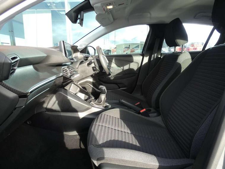 Bluetooth telephone facility, Drive mode selection(Eco/Normal), Driver attention warning, Emergency call service, Exterior temperature indicator with ice warning, Lane keep assist, Multi function trip computer, PEUGEOT i-Cockpit with 10" SD capacitive colour touchscreen, PEUGEOT i-Cockpit with 3.5" instrument panel and analogue dials, PEUGEOT i-Cockpit with compact steering wheel, PEUGEOT SOS and assistance, Programmable cruise control and speed limiter, Push button start, Rear parking sensors, Smart phone docking station, Speed limit recognition and recommendation, Start/stop system, Wireless mirror screen with apple carplay and android auto, 6 Speakers - 2 tweeters and 4 door speakers, DAB Digital radio, USB-C data and charge socket in front, Voice recognition for radio, navigation and telephony features, 2 X Rear number plate lights, Antenna - Base and removable wand, Automatic hazard light activation upon heavy brake application, Body coloured exterior door handles, Diamond black rear spoiler (roof), Eco LED headlights with electric height adjustment, Electric heated door mirrors, Gloss black door mirror shells, Gloss black rear cluster connecting strip, Grained black B pillar, Grained black front bumper grille and chrome accents, Headlights left on audible warning, LED 3 claw horizontal rear lighting signature with daylight function and LED brake lights, LED daytime running lights with distinctive 3 claw signature, LED Rear lighting with distinctive 3 claw horizontal signature with daylight function, LED third brake light, Manually adjustable rear view mirror, Model designation badges front and rear in basalt grey, One touch electric front/rear windows with pinch protection, Rear reversing lights, Rear side wing doors, Rear windscreen wiper triggered automatically in reverse gear, Roof spoiler, Tailgate with heated rear windscreen and wiper blade, Tinted windows, Variable front intermittent wipers, 1/3 to 2/3 split folding rear seats, 12V socket, 3 seat bench in 2nd row, Automatic mono zone climate control air condition, Boot lighting, Driver and front passenger comfort seats, Driver and front passenger seat manual adjustment in longitudinal and back rest angle, Driver seat mechanical height adjustment, Electric power steering with reach and rake adjustable steering column, Front interior light with 2 reading spotlights, Gear shift indicator, Low centre console, Map pockets on the backs of the front seats, Multifunction leather steering wheel, Piano keys gloss black plated toggle switches to access main functions of the vehicle, Rear centre headrest, Roof lining - light grey, Seatbelt unfastened on the move audible and visual alert for front and rear seats, Single front passenger seat, Tri material cloth upholstery, Visibility pack - 208, 2x Isofix child seat fitting on outer rear seats, 3 rear 3 point seatbelts, ABS (Anti-lock Braking System) with EBD (Electronic Brakeforce Distribution) and EBA (Emergency Braking Assistance), Child locking functionality on rear doors, Driver and front passenger airbag with passenger airbag deactivation, Driver/front passenger side airbags, ESP with Hill Assist, Front and rear curtain airbags, Front and rear disc brakes, Front optimised safety headrests and 3 x rear retractable headrests with height adjustable, Front three point retractable seatbelts with force limiters, Manual parking brake, Pedestrians active safety brake, Remote plip(x2) for locking, unlocking, includes emergency key blade, Tyre pressure monitoring system, Acoustic vehicle alert system (AVAS), Alarm - Connected, volumetric , perimetric, anti lift sensor, Automatic door locking when moving off, Deadlock, Electronic code immobiliser, Remote central locking, Carbon effect Dashboard, front and rear door panel finish, 16" Monti steel wheels, Tyre puncture repair kit,