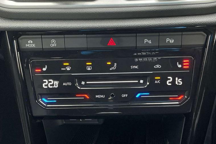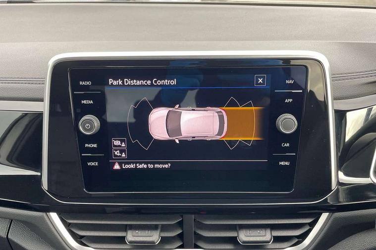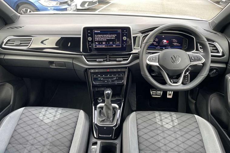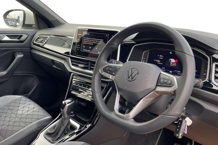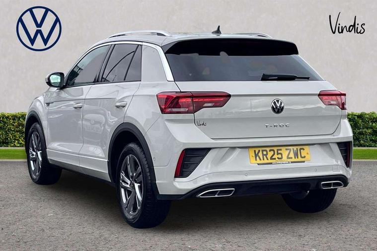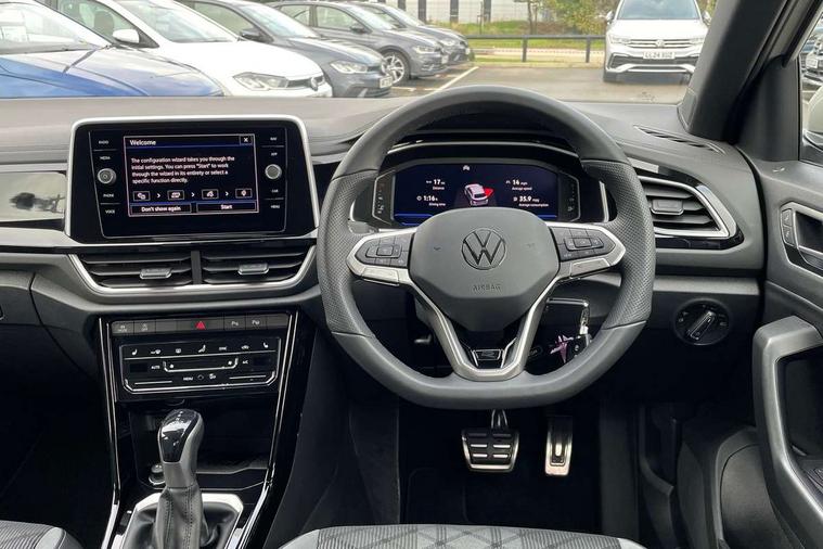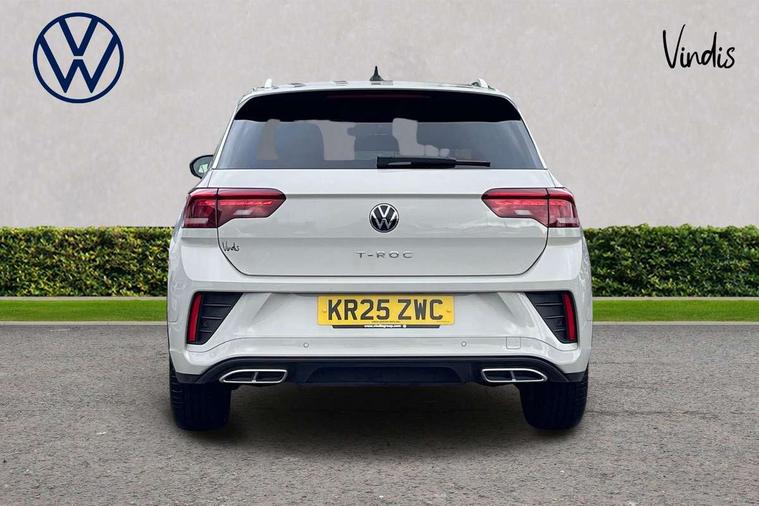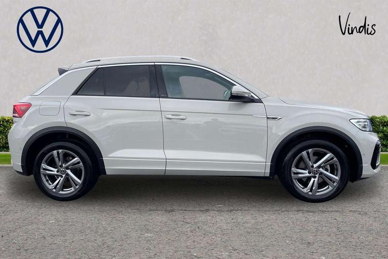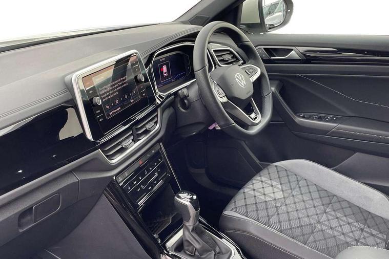 10.25" Digital cockpit pro, Advanced driver attention and drowsiness monitor, Emergency call service, Lane keeping system Lane Assist, Mobile phone interface, Modified key software - reduce switch off time for key status change to Long no motion, Online services, Park assist including front and rear parking sensors, Service interval indicator, Tailgate/trunk lid release from outside, Think blue trainer driver tips and journey analysis, Warning sound and light for front seatbelts unfastened, Wireless app connect, Battery regeneration during braking, Start/stop function with battery regeneration, DAB Digital radio, Diversity antenna for FM reception, Front and rear 6 speakers, Music playback - MP3, WMA and AAC files, Premium USB cable in choice of either Apple or Android smartphone compatibility, SD card slot, Simultaneous pairing of 2 compatible mobile devices, Title and cover art display, We Connect and We Connect Plus functionality, Auto dimming interior rear view mirror, Automatic hazard lights activation under emergency braking, Automatic headlight control with LED separate daytime running lights with coming/leaving home function, Body coloured exterior mirror housings and door handles, Electrically adjustable and heated door mirrors, Extended roof spoiler, Exterior mirrors aspherical on driver side, convex on front passenger side, External USB type C socket and charging sockets, Front windscreen wiper with intermittent wipe and 4 position delay, Heated rear window, LED 3rd brake light, LED rear combination lamps, LED rear number plate lights, Power windows with comfort operation and circuit breaker, Privacy glass for rear side windows and rear window, R-Line design body coloured bumpers, Rain sensor, Rear exhaust tailpipe, Rear fog light on one side and reversing lights on both sides, Rear side wing doors, Rear wash/wipe with intermittent wipe setting, Remote electrically foldable door mirrors, puddle lights and reverse activated passenger's door mirror, 12V power socket in centre console, 3 rear head restraints, 3 seat bench in 2nd row, 4 load lashing points in luggage compartment, Air care climatronic air conditoning system with active combination filter and 2-zone temperature control, Black roof lining, Chrome plated decorative trims, Chrome plated radiator grille inserts, air vent surrounds and light switch surrounds, Door and side trim panel with leatherette insert, Front + rear carpet mats, Front centre armrest, Front cupholders x 2, Front footwell illumination, Front reading light, Front scuff plates with R Line logo, Front seat back storage pockets, Glove compartment door with light, Instrument lighting, white adjustable panel illumination, Interior ambient lighting and surround lighting, Interior light delay, Isofix child seat preparation, Leather gearshift handle, Load-through provision with cup holder when folded down ('Unsplit rear seat bench, split folding backrest, with centre armrest), Luggage compartment lighting, Single front passenger seat, Stainless steel pedals, Storage compartment in left and right luggage area, Storage compartment in rear doors, Storage compartments in driver and front passenger doors, Sunvisors with illuminated vanity mirrors, Variable boot floor, height adjustable and removable, Driver assistance pack without proactive passenger protection - T-Roc, 3 point height adj front seatbelts + pretensioners, 3 point seatbelts in outer rear with ECE label, ABS, Child locks on rear doors, City emergency braking and pedestrian monitoring, Driver and front passenger airbag with front passenger airbag deactivation, Driver and front passenger safety-optimised head restraints, Drivers seatbelt reminder, Electronic parking brake, Electronic Stability Control (ESC) inc EDL (Electronic Differential Lock) and ASR (Traction Control), Front and rear passengers curtain airbag system including front side airbags, Hill start assist, Predictive pedestrian protection, Rear disc brakes, Two tone horn, Tyre pressure loss indicator, Volkswagen roadside assistance, Piano black decorative inserts in dashboard and front door trim panels, Trims for alloy wheels,