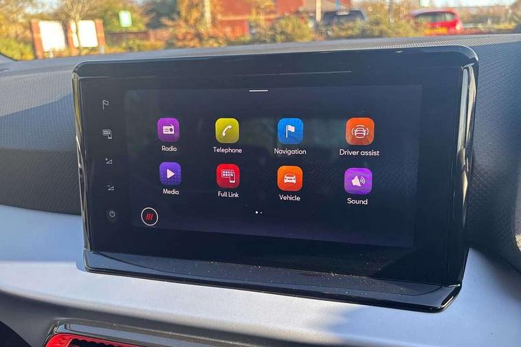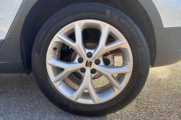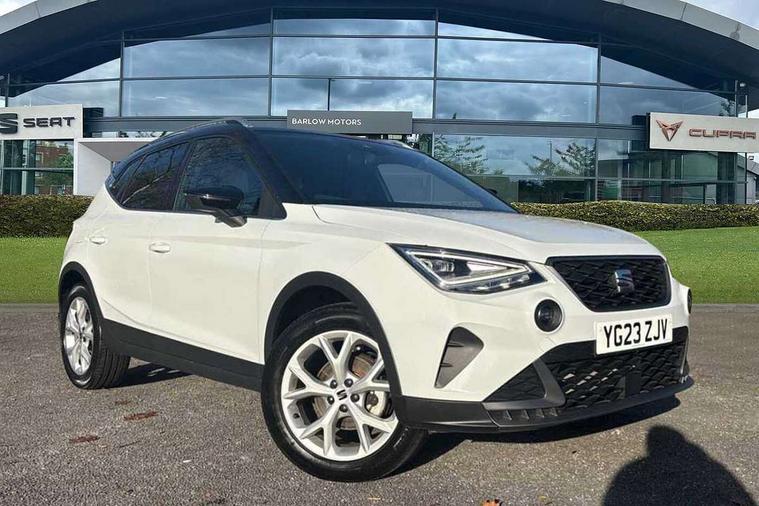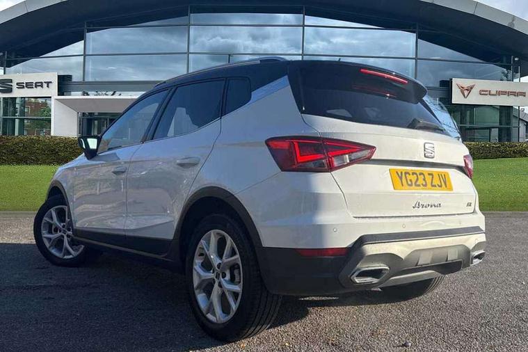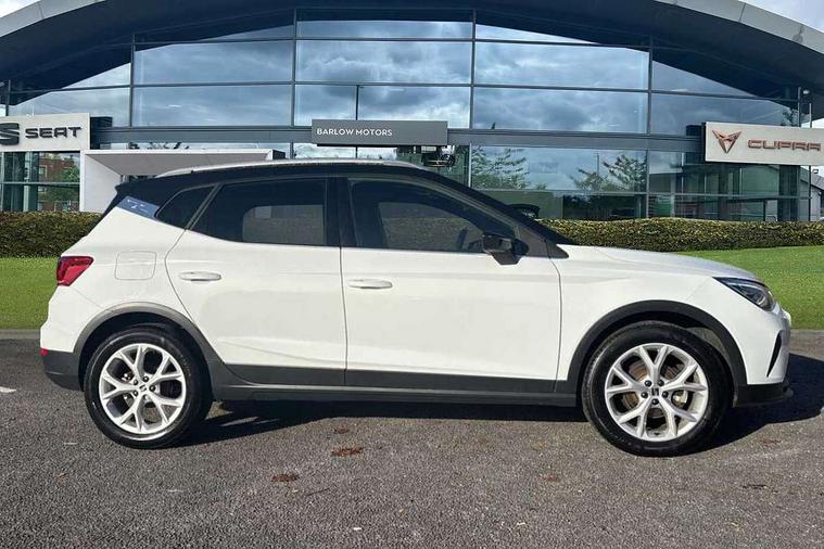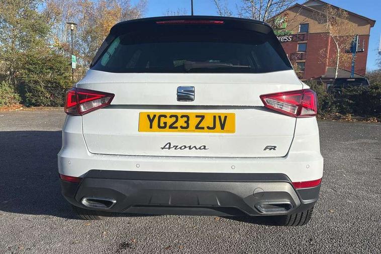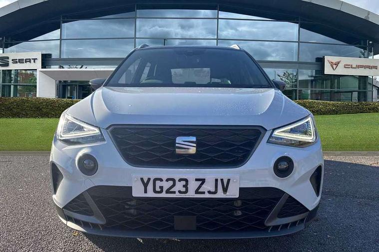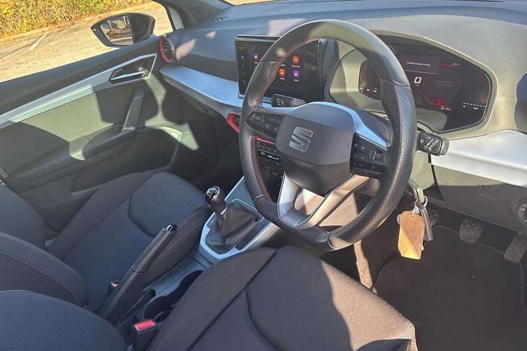 'Lights On' Reminder warning buzzer, 8" Digital cockpit, Digital clock, E-call, Electric speed sensitive power steering, Full Link Smartphone Integration with Mirror Link, Apple Car Play, Google Android Auto with USB Type C cable for Apple and Android compatibility, Lane keeping system, Low fuel warning light, Outside temperature display, Rear parking sensor, RPM counter, Seat connect with safety, service, remote and online, SEAT Drive profile - Four different models normal-sport-eco-individual, steering response, throttle response, Trip computer, Wireless phone charger, 9.2" colour touchscreen with navigation system, voice control and USB port (type c), Bluetooth interface for hands free and audio streaming, DAB digital radio and AM/FM radio, Steering wheel mounted audio controls, Anti theft roof antenna, Auto dimming interior rear view mirror, Automatic activation of hazard warning lights, Body coloured bumpers, Body coloured door handle inserts, Chrome roof rails and window surrounds, Dark tinted rear windows, Electric front/rear windows, Electrically adjustable, heated and folding door mirrors, Front fog lights with cornering function and rear fog light, FULL LED automatic headlights with dynamic headlight range control, coming and leaving home, LED daytime running lights, LED rear tail lights and licence plate lights, Protective side mouldings, Rain sensing wipers, Rear side wing doors, Rear spoiler, Rear window wash/wipe, Roof colour door mirrors, Third brake light, Twin exhaust pipe styling hidden exhaust pipe, Visible VIN plate, Windshield wiper with intermittent control and potentiometer, 2 cupholders, 3 seat bench in 2nd row, 60/40 split folding rear seat, Aircare filter, Black interior roof, Cloth upholstery, Double boot floor, Driver sunvisor with covered mirror + card holder, Dual zone climate control, Front courtesy light with 2x front and 2x rear reading lights, Front sport seats, Gear shift indicator, Height adjustable front seats, Height/reach adjustable steering column, Illuminated boot, Instrument lighting with brightness control, Interior ambient lighting, Interior light in footwell, central console and door panel, ISOFIX points in outer rear seats with top tether anchorage points, Passenger sunvisor with vanity mirror, Perforated flat bottomed leather steering wheel/gear knob/handbrake with red stitching and FR logo, Single front passenger seat, Two front and three rear height adjustable headrests, Interior chrome pack - Arona, 3 point seatbelts on all rear seats, ABS, Active front headrests, Child locks on rear doors, Driver and front passenger airbags with front passenger airbag de activation, front side and curtain airbags, Electronic stability control, Emergency Brake Assist (EBA) and front assist, Front and rear seatbelt reminder, Hill hold control, Multi-Collision braking, Tiredness recognition system, Traction control, Tyre pressure monitoring system, Alarm with back-up horn, Electronic engine immobiliser, Locking wheel bolts, Remote central locking + deadlocks, Tow away protection, Titan black dashboard, 17" Dynamic alloy wheels,