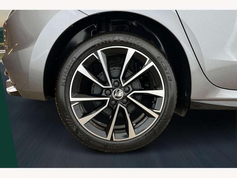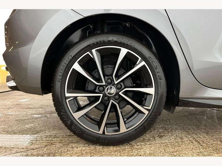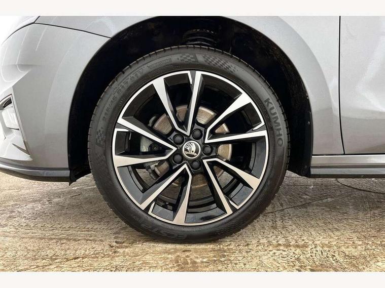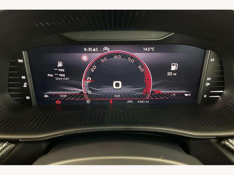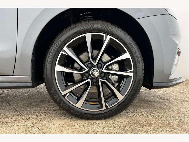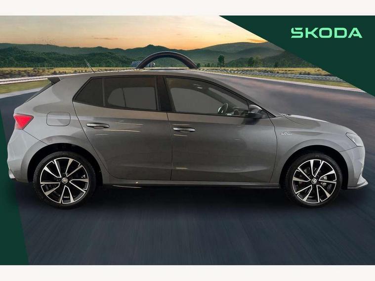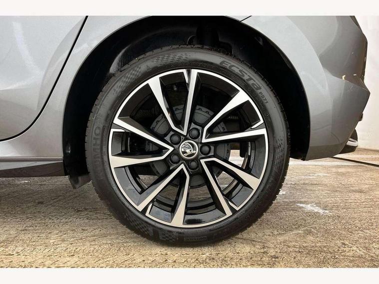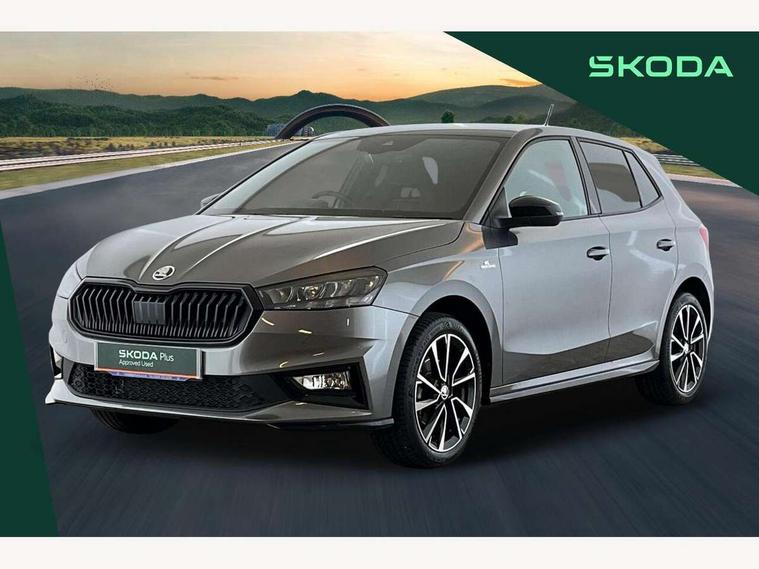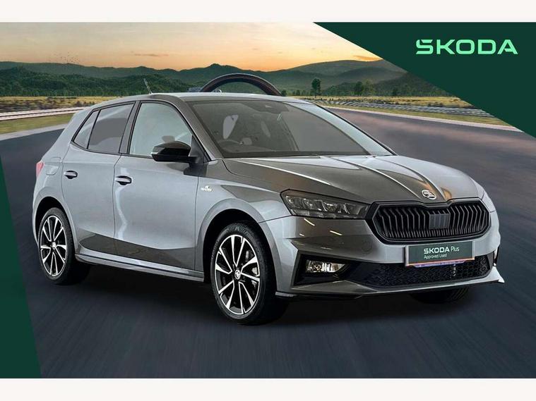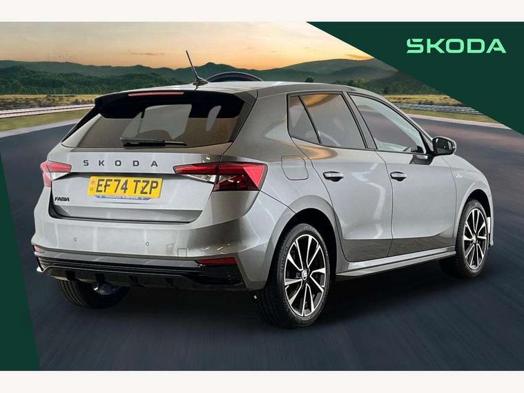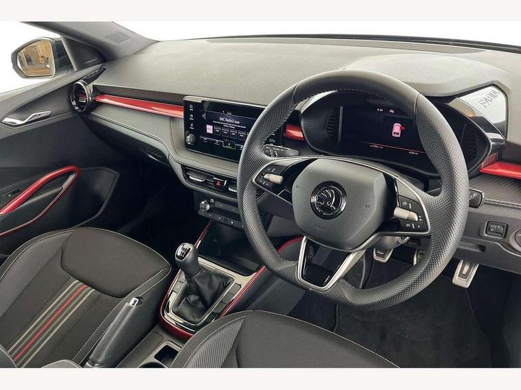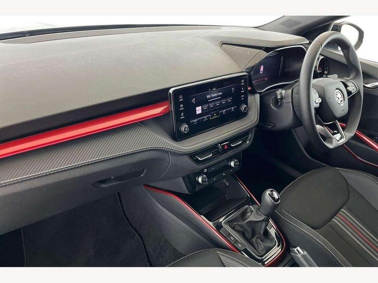 Advanced driver attention and drowsiness monitor, Bluetooth connection, Electromechanical power steering, Exterior temperature gauge, Service interval indicator, Traffic sign recognition, Virtual cockpit with 10.25" colour display, Wireless SmartLink for Apple CarPlay and Android Auto, 6 Speakers (4 in front and 2 in rear), Auxiliary socket for external MP3 player, DAB digital radio reception, Auto dimming rear view mirror, Black radiator grille, Body coloured bumpers, Door mirror integrated indicators, Front and rear electric windows, Front window wiper intermittent control, Headlight range control - Automatic, Ice scraper in fuel cap, LED daytime running lights with coming and leaving home feature, LED rear lights, Monte Carlo badging, Privacy glass, Rear LED fog light, Rear side wing doors, Rear window wiper with washing nozzles, Roof mounted spoiler, SKODA tailgate lettering in black, Sports bumpers, Third brake light, 2 reading lights in front and 2 reading lights in rear, 3 rear headrests, Aluminium pedals, Backrest split and folding, Black headlining, Central console with removable cup holder and storage box, Chrome handbrake release button, Door sills with fabia badging, Dual zone air conditioning with climatronic electronic control, Fabric/artificial leather upholstery, Front centre armrest, Front sports seats, Gearshift knob/handle in leather, Hand brake lever handle in leather, Height adjustable front headrests, Height adjustable front seats, Height adjustable steering wheel, ISOFIX and TopTether anchorage points to the outer rear seats, ISOFIX and TopTether on the front passenger seat, Luggage compartment lighting, Manually adjustable lumbar support in front seats, Metallic painted red central console cover, Metallic red interior door handles, Pollen filter, Rear seat bench unsplit, Single front passenger seat, Sun visors with mirror and airbag label on passenger side, Textile floor mats, Ticket holder, Umbrella in drivers door, 3-point height adjustable front seats belts with pretensioner and force limiter, Automatic warning lights in case of crash, Driver and passengers airbag with switch off function, e-Call+, ESC including ABS, MSR, ASR, EDS, HBA and XDS, Front and rear seat belt warning, FRONT ASSIST (AEB City and AEB Inter Urban), Front side airbags, Head airbags, One tone horn, Pedestrian protection, Three rear 3-points safety seat belts with pretensioner and force limiter including stop function for outer rear seat belts, Tyre pressure monitoring system, Anti-theft alarm system including immobiliser, interior monitoring, backup horn, and towing protection, Central locking with radio remote control, interior controls, SAFE function and 2 foldable keys, Carbon effect door and side trim panels, Carbon effect lower decorative trim with white stitching, Monte carlo air vents, Red metallic upper decorative trim, Anti-theft wheel bolts protection, Super-low rolling resistance tyres,